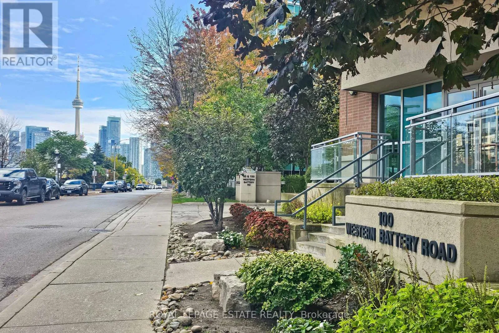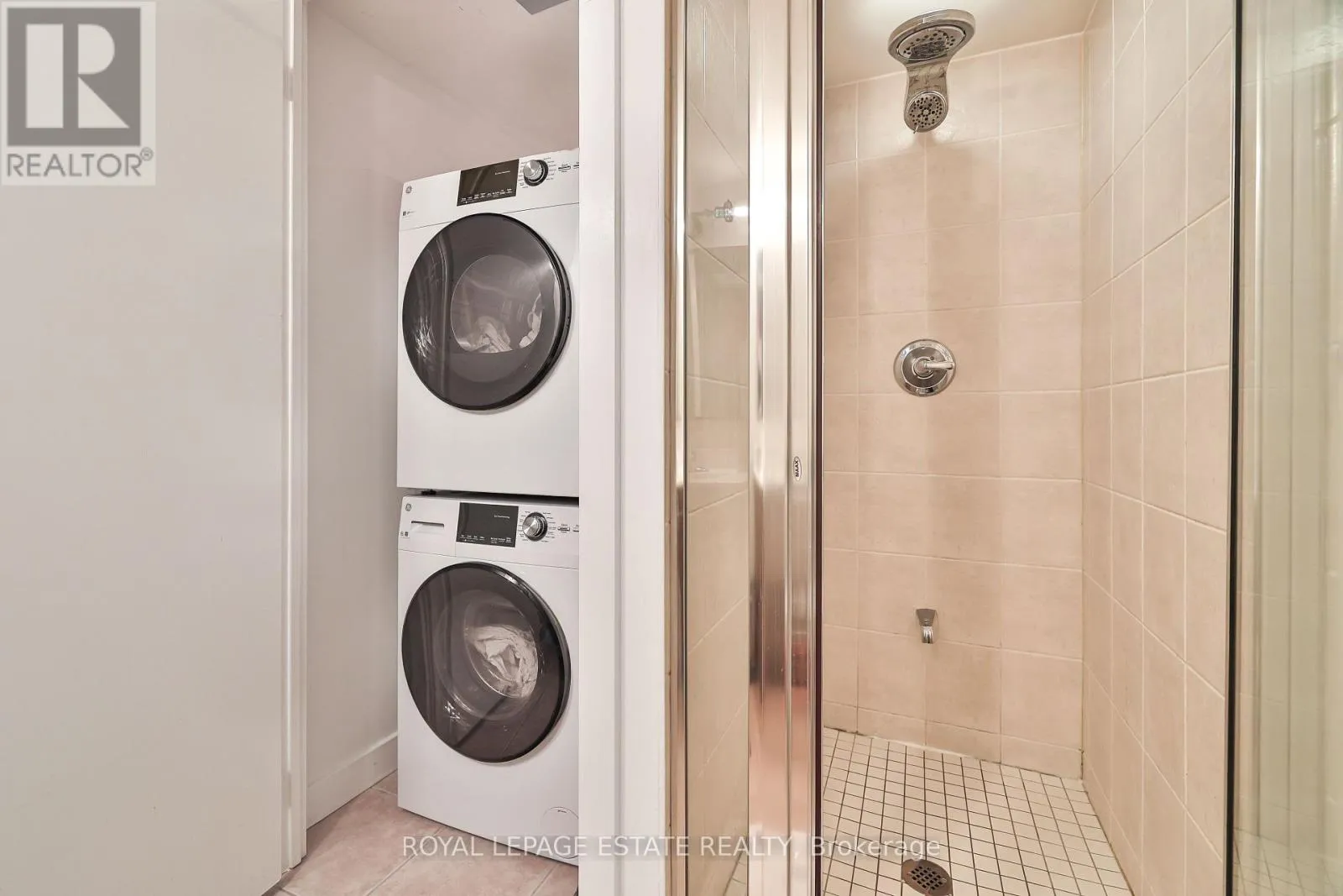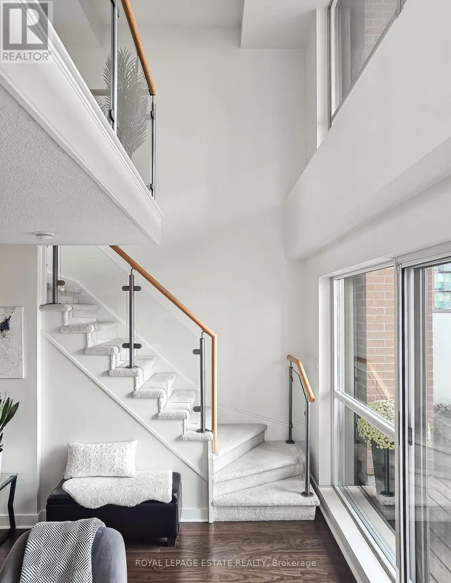 King St W & Strachan Ave Bright and modern 1-bed, 2-bath loft in Liberty Village. The west-facing 2-storey loft boasts abundant natural light and clear sunset views. The open-concept main floor includes a kitchen, living and dining area, 2-pc powder room and walk-out to the terrace. The bedroom is on the upper level and has a 3-pc ensuite bathroom, new stacked washer and dryer, and a walk-in closet. The large private, covered terrace is ideal for entertaining. It features a wooden patio and string lights, creating a great atmosphere for entertaining or unwinding. One owned underground parking space and one owned storage locker are included. Building amenities include an indoor pool, gyms, media and game rooms, 24 hr security and affordable guest suites. Liberty Village has everything you need at your door, including restaurants, services, and transportation within walking distance. (id:27476)