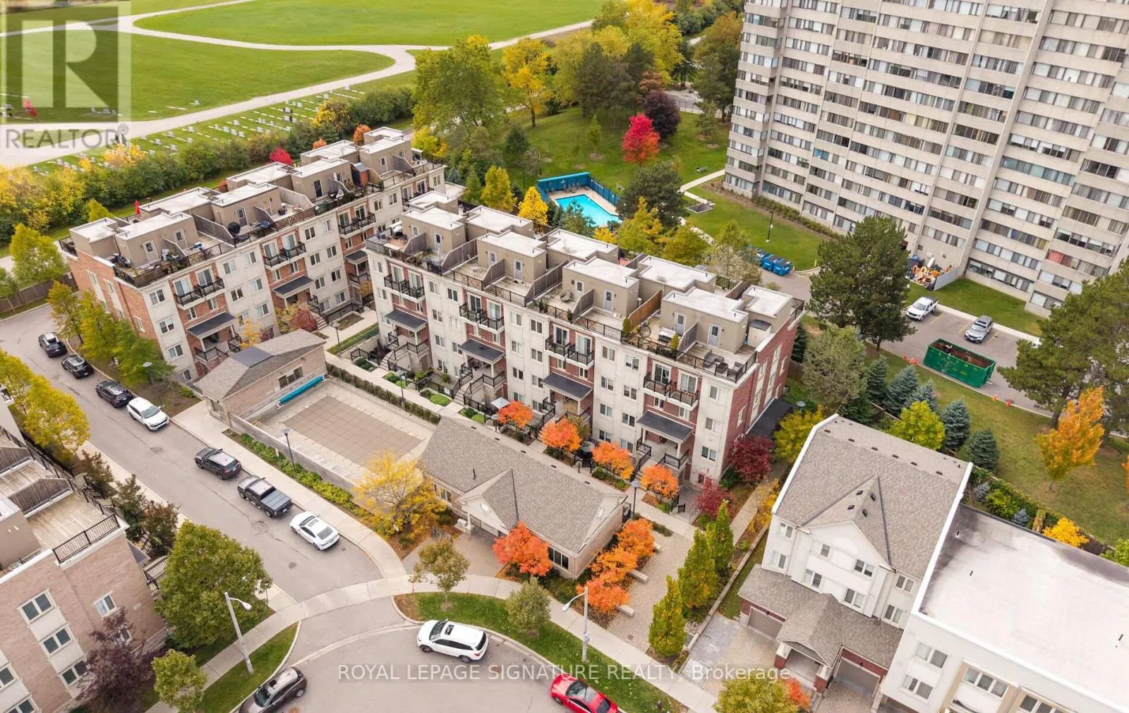 Bathurst/Finch Welcome to this beautifully updated 2+1 bedroom townhome with rooftop terrace, ideally situated in a highly sought-after North York community. This multi-level condo offers the comfort and feel of a traditional home with modern upgrades throughout - move-in ready and meticulously maintained. From the moment you enter, you'll appreciate the bright, open-concept living and dining area that flows seamlessly to your private upper terrace - perfect for entertaining, lounging, or enjoying your morning coffee. The updated kitchen features upgraded cabinetry, stylish finishes, and a brand-new dishwasher (installed late 2024). Hardwood stairs, new flooring, and refreshed bathrooms with new vanities and tiles create a cohesive, contemporary aesthetic from top to bottom. The versatile den provides the perfect work-from-home setup or reading nook, while the upper-level bedrooms offer privacy and comfort away from the main living space. With underground parking, you'll appreciate the convenience of staying snow-free in the winter months. Residents enjoy access to an outdoor pool located right outside your front door, and all exterior maintenance, landscaping, and common elements are included in the condo fees-making life simpler and more enjoyable. The location is unmatched: Just minutes to Antibes Community Centre, offering a variety of free city-run programs - including swimming lessons, summer camps, and dance classes. You're also only steps to G. Ross Lord Park, where you'll find trails, a playground, and a splash pad. Commuters will love the easy access to TTC transit, Finch Station, and major highways, as well as proximity to schools, grocery stores, and great local restaurants. This home combines convenience, comfort, and community - a rare opportunity to enjoy urban living surrounded by green space. Just move in and enjoy! (id:27476)