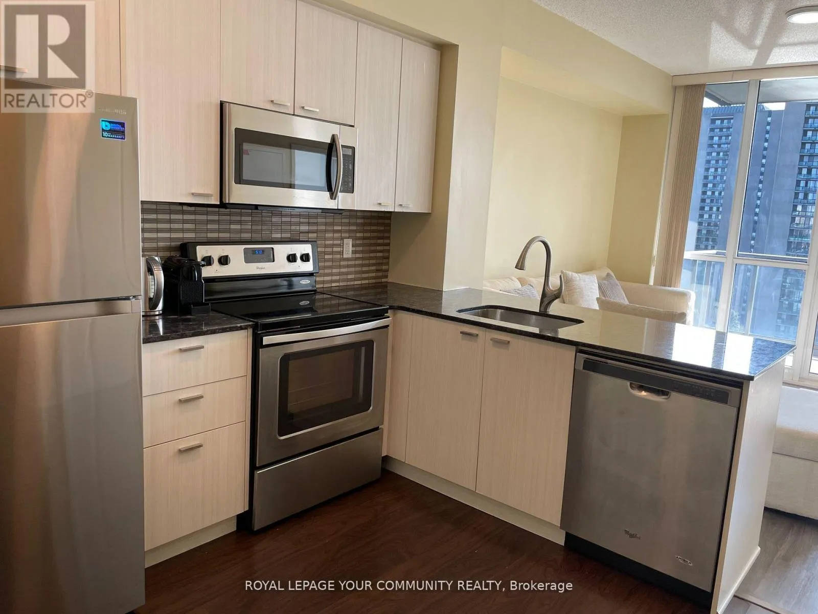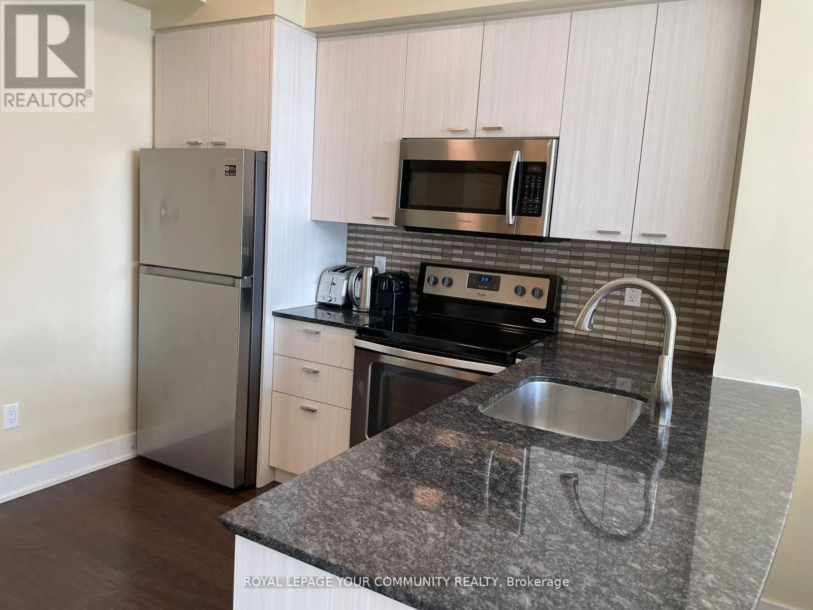 Yonge/Sheppard Location! Location! Location! A luxury condo "Minto 88" in the heart of North York. Very bright 1+1 with 9' ceiling facing west view. Laminated flooring throughout, open concept kitchen with granite counter top, living area of 608 sq.ft balcony. Prime location: steps to transit, subway, restaurant, shops, grocery stores, HWY & entertainment. Great amenities includes water garden, party/meeting rm, exercise rm, 24 hr concierge & more. (id:27476)