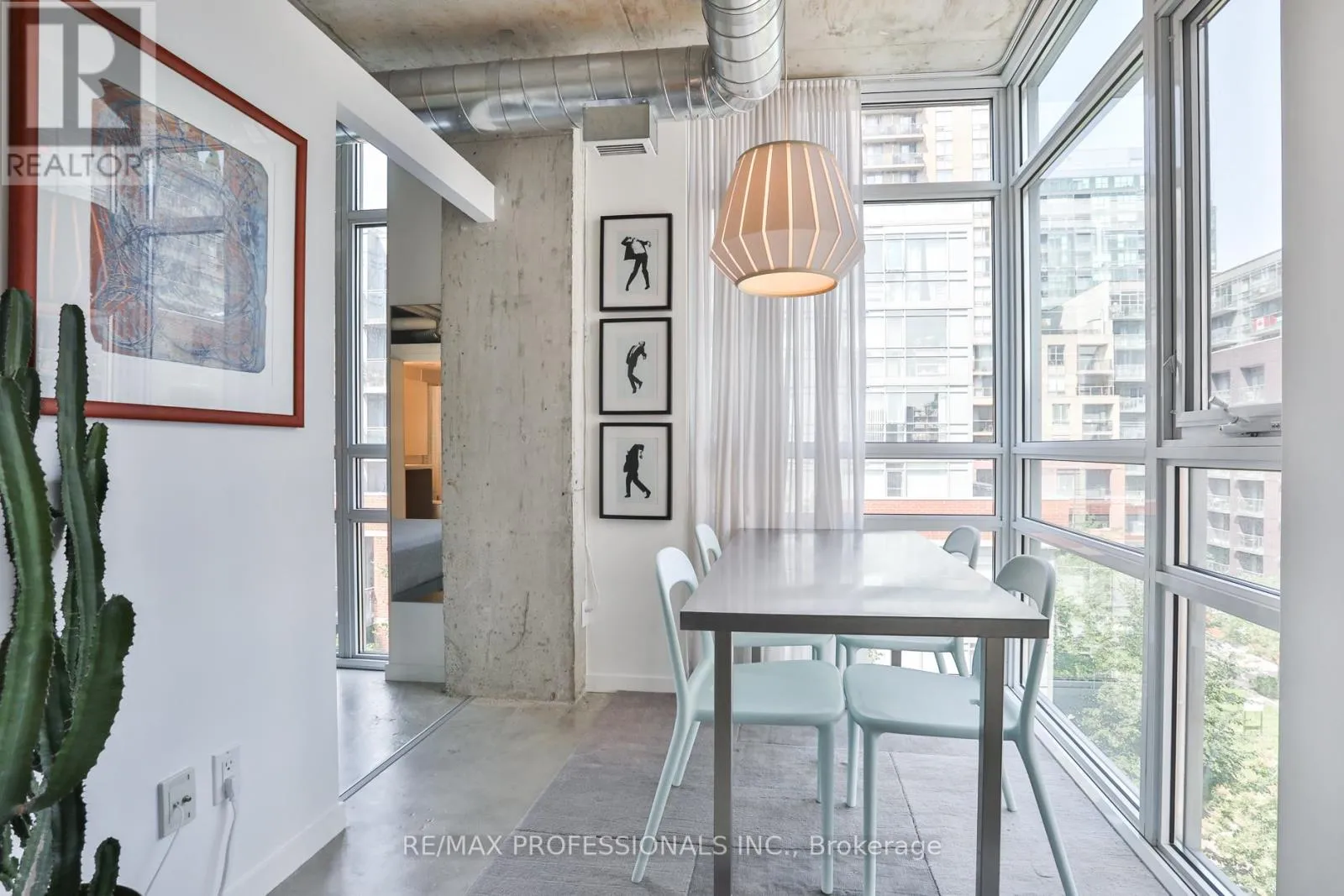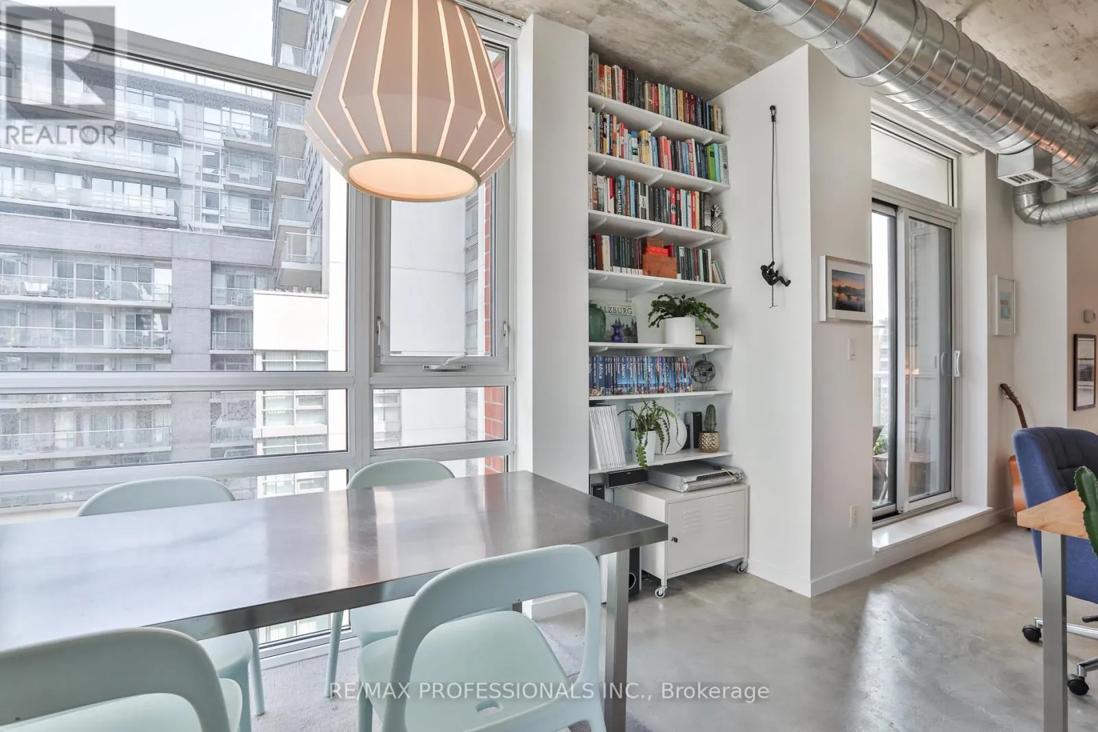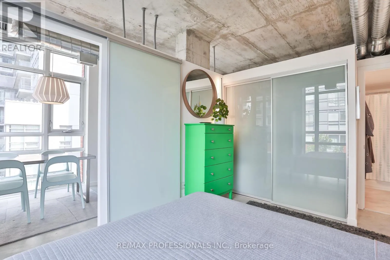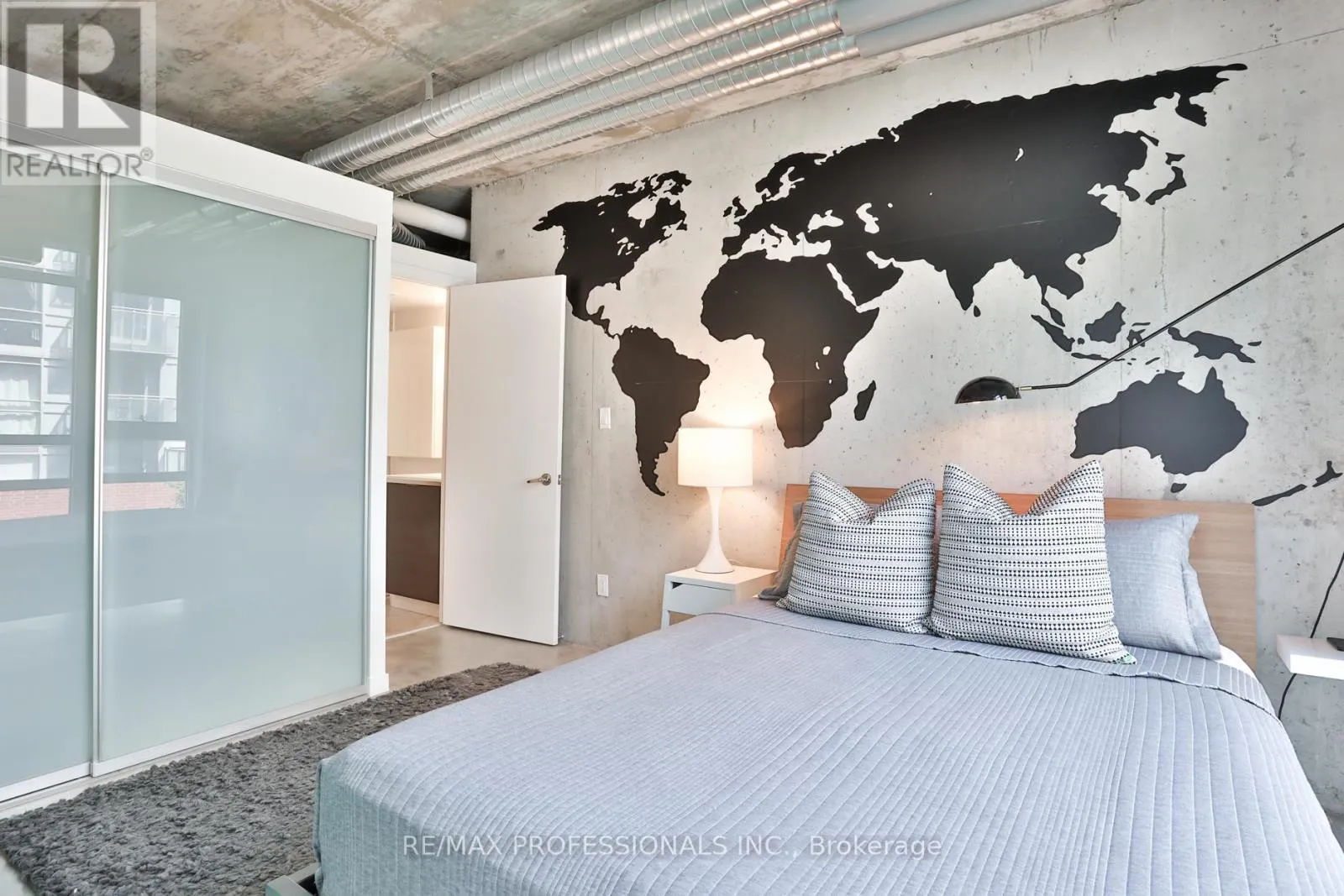 Cross Streets: Queen/Dufferin. ** Directions: South of Queen. Welcome to the Westside Gallery Lofts, where industrial-chic style meets unbeatable location! Nestled in the vibrant heart of Queen West, this cool and contemporary 1 bedroom suite offers the ultimate in stylish urban living. Step into a thoughtfully designed open concept space featuring polished concrete floors, soaring 9 foot ceilings, floor-to-ceiling windows, and exposed ductwork that give the unit its signature loft feel. The modern kitchen is well-appointed with stainless steel appliances, granite countertops, and seamlessly flows into the living and dining areas, perfect for entertaining or relaxing at home. A walk-out balcony extends your living space and brings in tons of natural light. The spacious bedroom includes a large double closet and a 4-piece ensuite bath, providing both comfort and functionality. Building amenities include a party room, guest suites, visitor parking, and plans to expand the gym/fitness centre into the current pool area. Experience the energy of one of Toronto's most dynamic neighbourhoods. Surrounded by Queen West's top restaurants, bars, cafes, galleries, and boutique shopping, you're just steps from iconic hotspots like The Drake Hotel, Gladstone House, the Ossington Strip, and Trinity Bellwoods Park. With 24-hour TTC service at your doorstep, the Exhibition GO Station a short walk away, and easy access to King West, Liberty Village, Parkdale, and the Gardiner Expressway, every corner of the city is within reach. (id:27476)