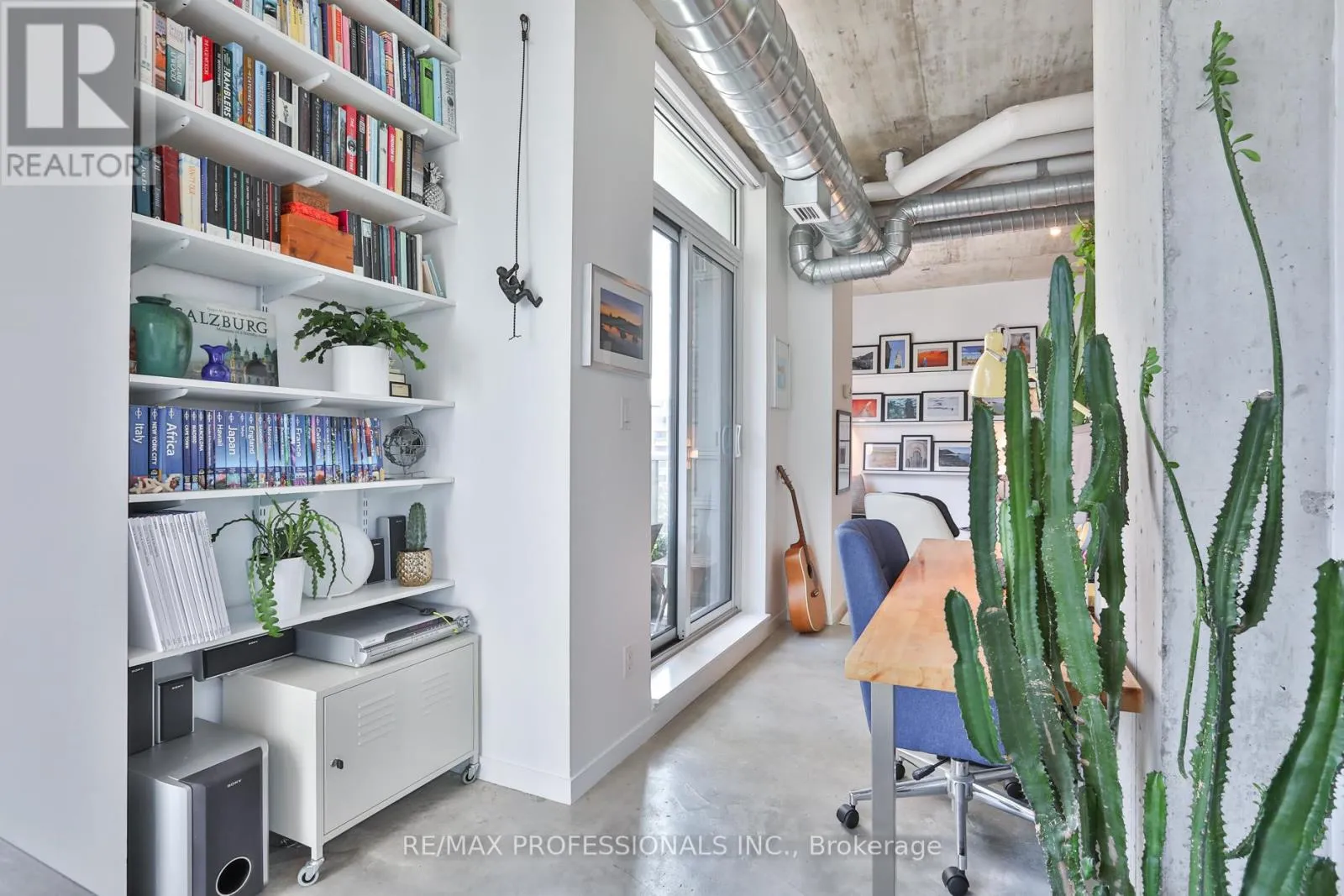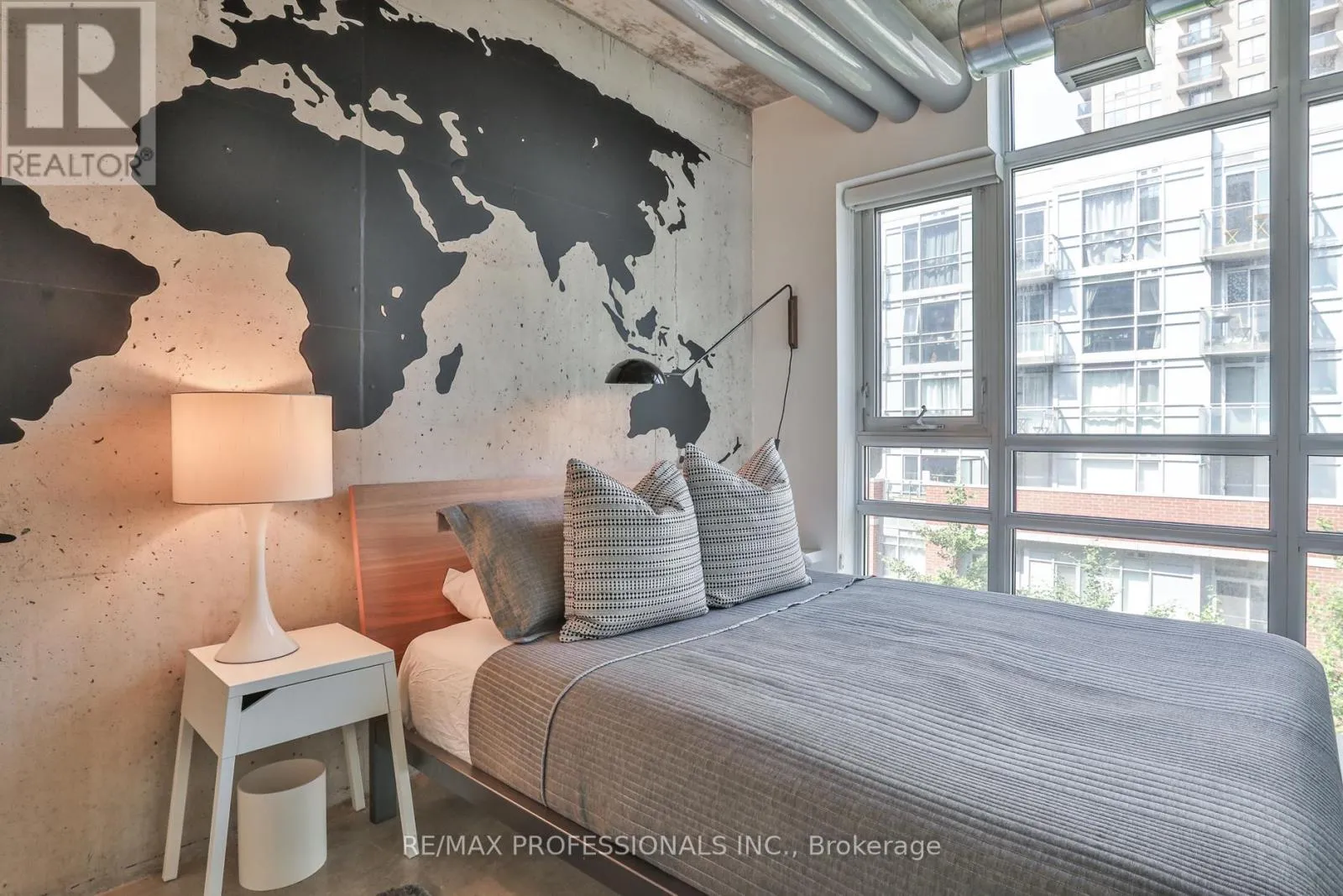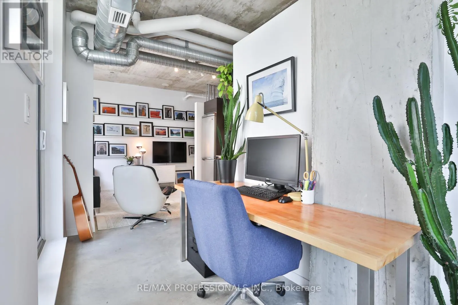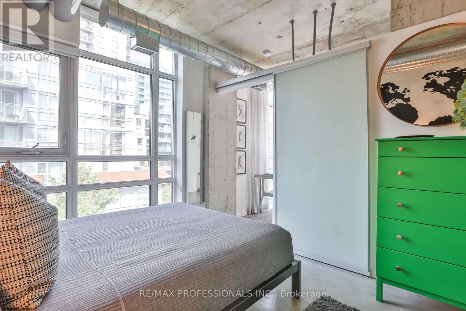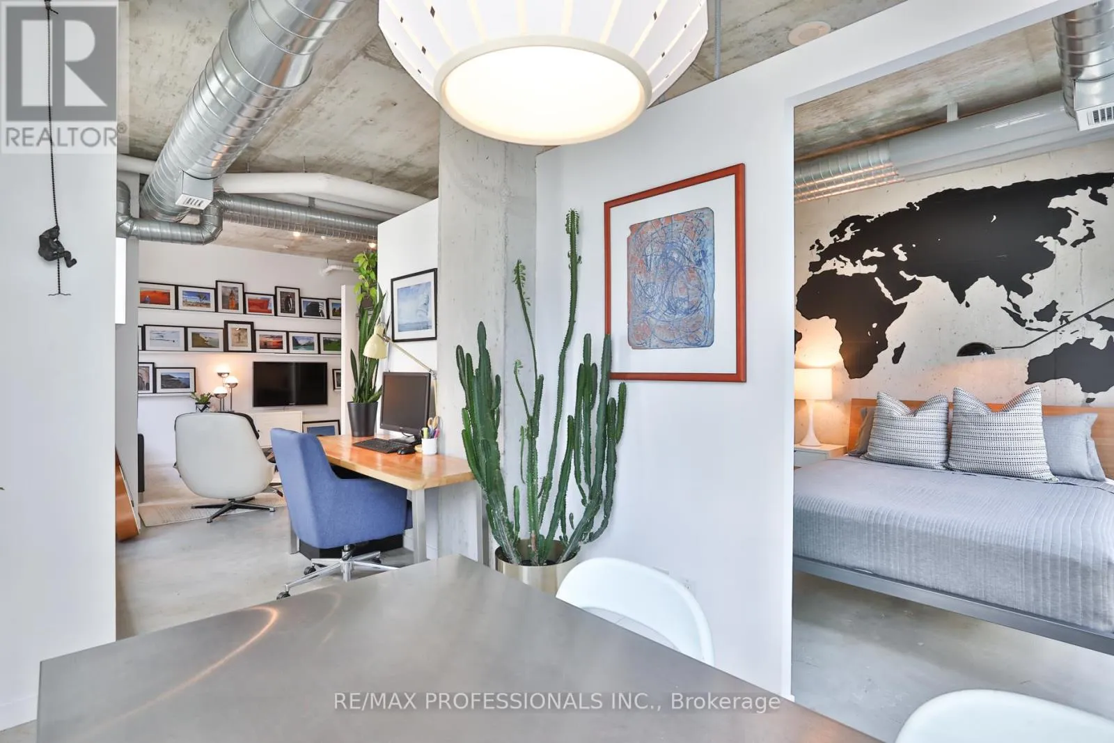 Cross Streets: Queen/Dufferin. ** Directions: South of Queen. Welcome to the Westside Gallery Lofts, where industrial-chic style meets unbeatable location! Nestled in the vibrant heart of Queen West, this cool and contemporary 1 bedroom suite offers the ultimate in stylish urban living. Step into a thoughtfully designed open concept space featuring polished concrete floors, soaring 9 foot ceilings, floor-to-ceiling windows, and exposed ductwork that give the unit its signature loft feel. The modern kitchen is well-appointed with stainless steel appliances, granite countertops, and seamlessly flows into the living and dining areas, perfect for entertaining or relaxing at home. A walk-out balcony extends your living space and brings in tons of natural light. The spacious bedroom includes a large double closet and a 4-piece ensuite bath, providing both comfort and functionality. Building amenities include a party room, guest suites, visitor parking, and plans to expand the gym/fitness centre into the current pool area. Experience the energy of one of Toronto's most dynamic neighbourhoods. Surrounded by Queen West's top restaurants, bars, cafes, galleries, and boutique shopping, you're just steps from iconic hotspots like The Drake Hotel, Gladstone House, the Ossington Strip, and Trinity Bellwoods Park. With 24-hour TTC service at your doorstep, the Exhibition GO Station a short walk away, and easy access to King West, Liberty Village, Parkdale, and the Gardiner Expressway, every corner of the city is within reach. (id:27476)