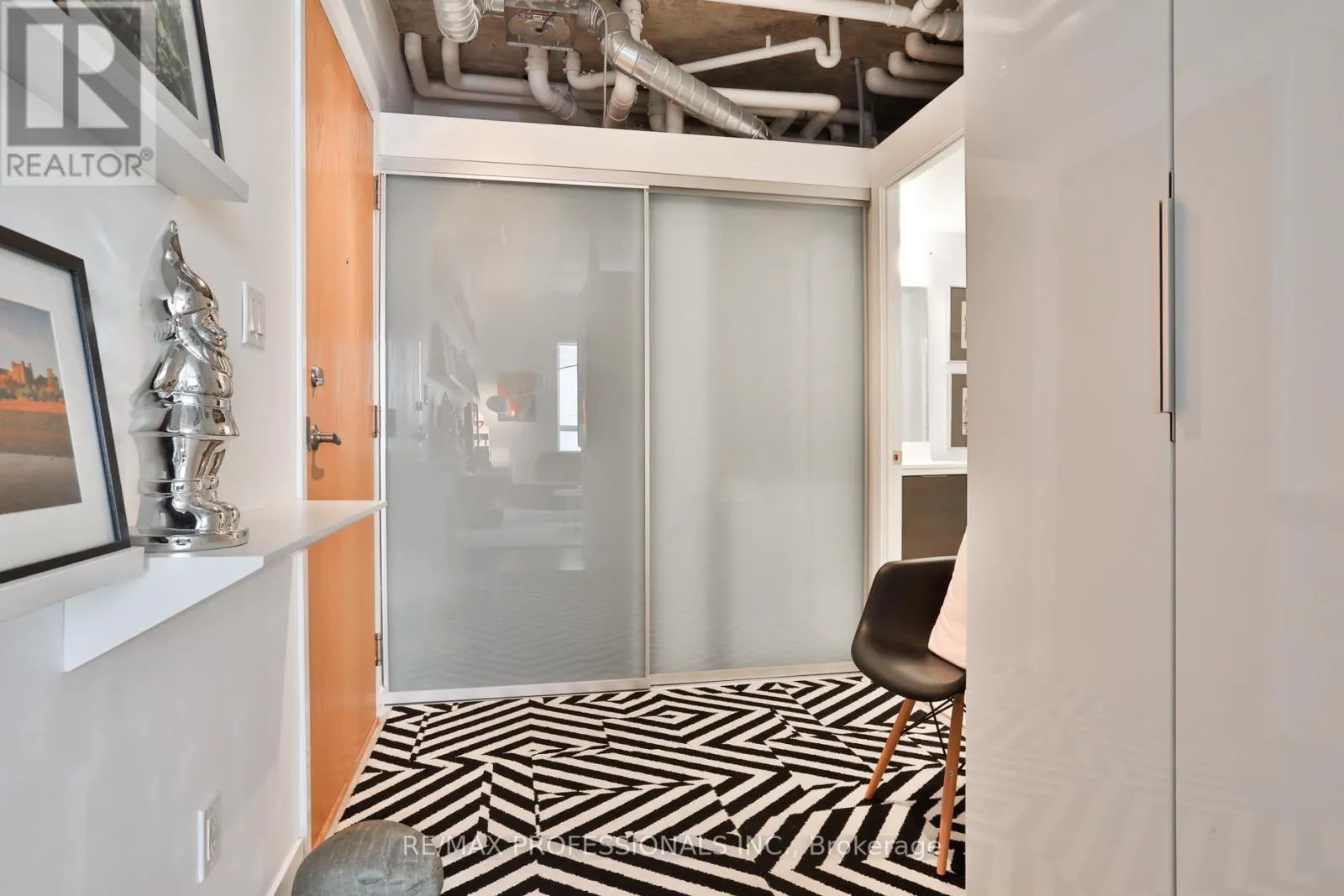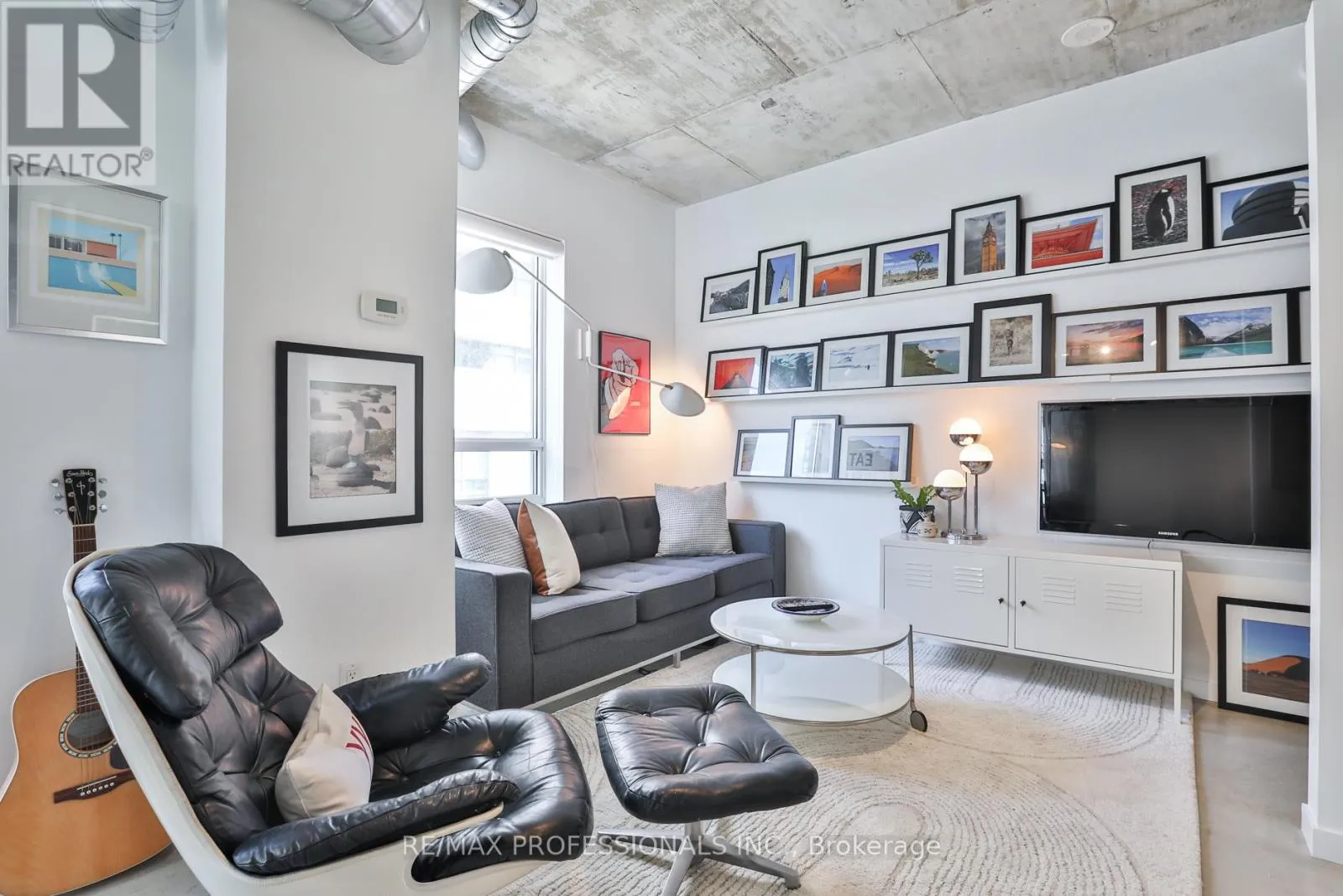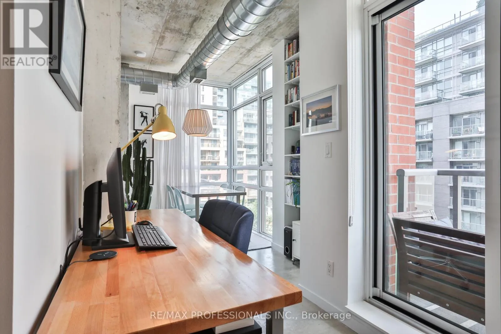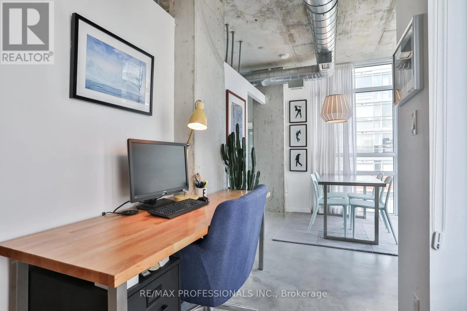Cross Streets: Queen/Dufferin. ** Directions: South of Queen. Welcome to the Westside Gallery Lofts, where industrial-chic style meets unbeatable location! Nestled in the vibrant heart of Queen West, this cool and contemporary 1 bedroom suite offers the ultimate in stylish urban living. Step into a thoughtfully designed open concept space featuring polished concrete floors, soaring 9 foot ceilings, floor-to-ceiling windows, and exposed ductwork that give the unit its signature loft feel. The modern kitchen is well-appointed with stainless steel appliances, granite countertops, and seamlessly flows into the living and dining areas, perfect for entertaining or relaxing at home. A walk-out balcony extends your living space and brings in tons of natural light. The spacious bedroom includes a large double closet and a 4-piece ensuite bath, providing both comfort and functionality. Building amenities include a party room, guest suites, visitor parking, and plans to expand the gym/fitness centre into the current pool area. Experience the energy of one of Toronto's most dynamic neighbourhoods. Surrounded by Queen West's top restaurants, bars, cafes, galleries, and boutique shopping, you're just steps from iconic hotspots like The Drake Hotel, Gladstone House, the Ossington Strip, and Trinity Bellwoods Park. With 24-hour TTC service at your doorstep, the Exhibition GO Station a short walk away, and easy access to King West, Liberty Village, Parkdale, and the Gardiner Expressway, every corner of the city is within reach. (id:27476)