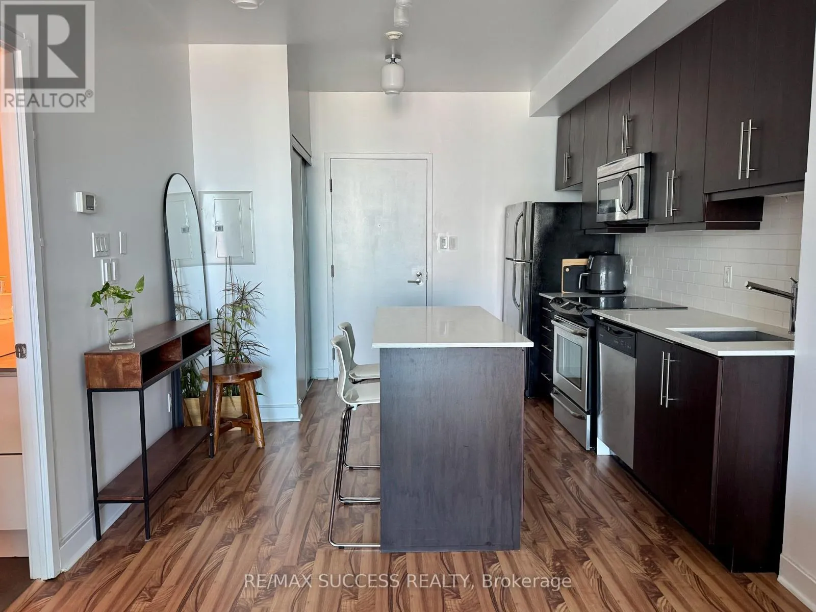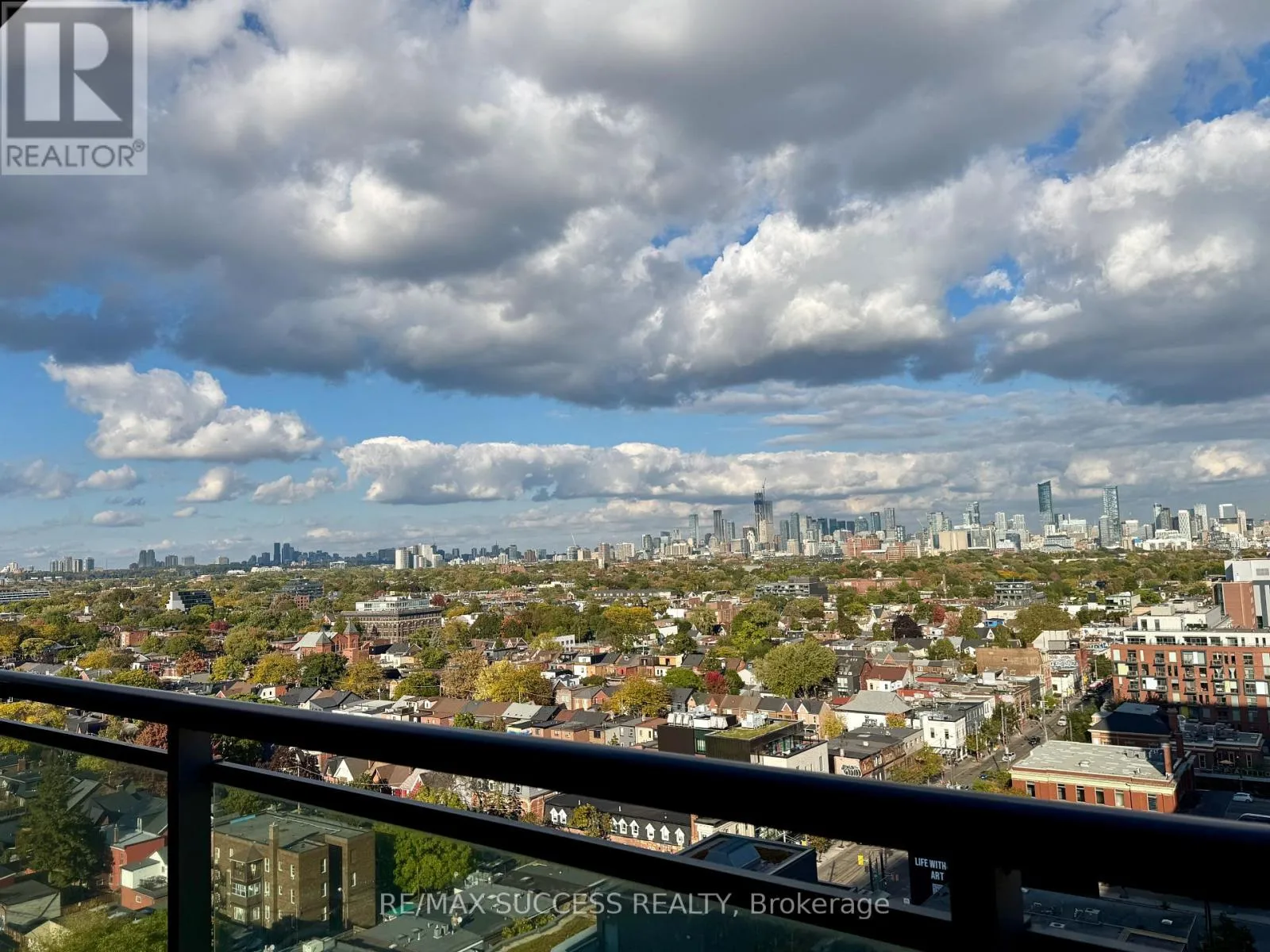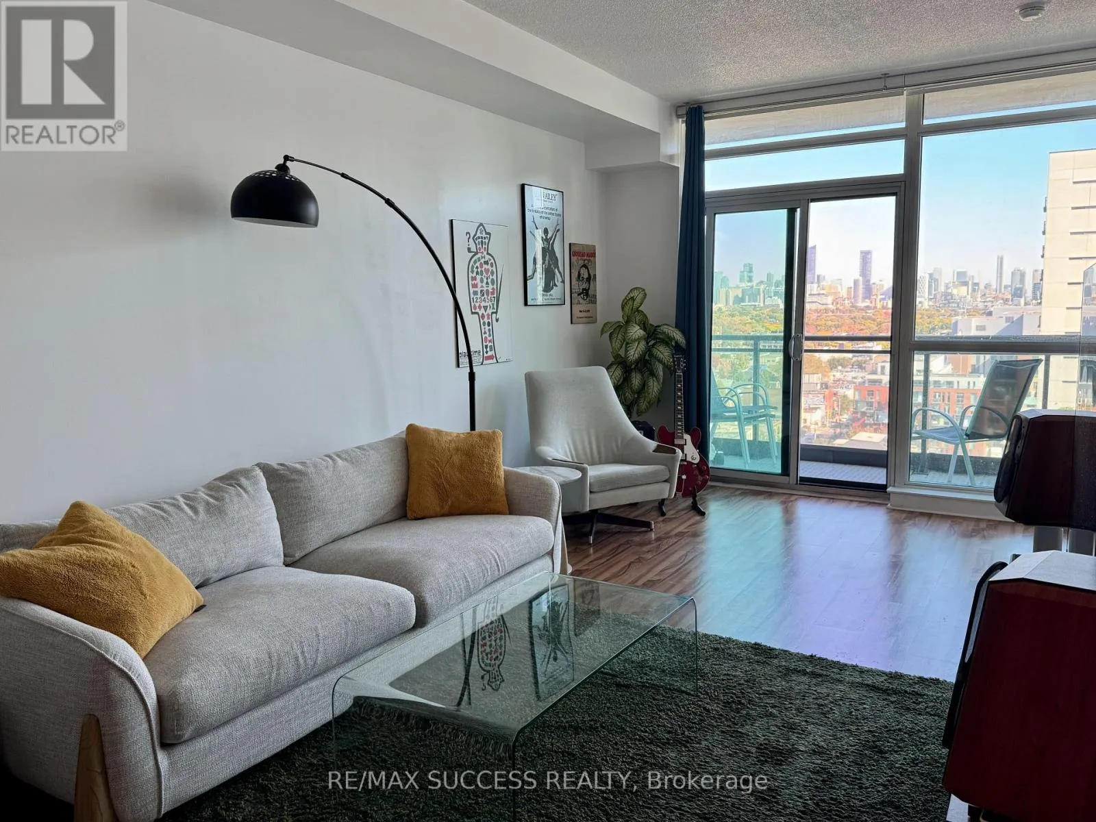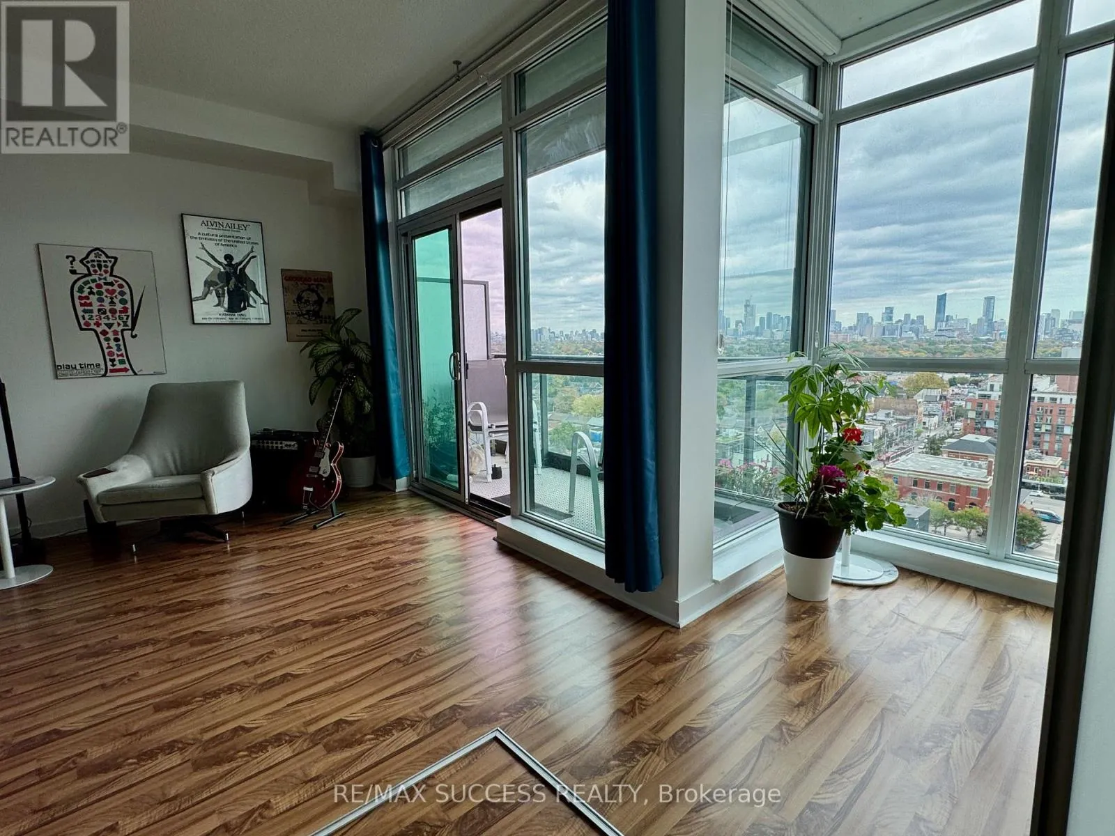 Cross Streets: QUEEN & SUDBURY. ** Directions: QUEEN ST WEST. Spacious one bedroom + den at "Bohemian Embassy Condos" in trendy Queen West one of the most desirable areas to live. Unit has easterly exposure overlooking Toronto's downtown with partial view of lake. 9 foot ceilings, with large bright windows, quartz counter top & Centre island breakfast bar with track lighting, ceramic subway style tile backsplash in bathtub enclosure engineered hardwood floors. Ensuite laundry, stainless steel appliances and stainless steel under mount sink in kitchen, under mount cabinet lighting, walkout to decent size balcony from living room, generous and functional den, main entrance closet for coats & shoes, has 24/7 concierge. Building amenities cont'd - Media room, party/meeting room, rooftop deck/garden, sauna & Visitor parking. (id:27476)