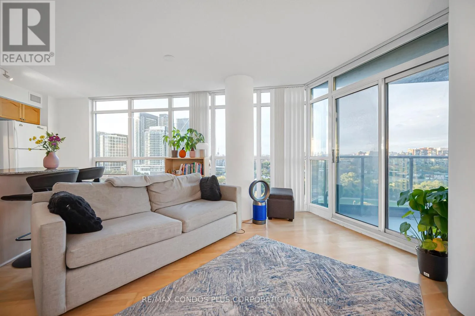 Bathurst & Lakeshore ***No Longer Available*** Stunning 2-Bedroom, 1 Bathroom Corner Suite With Breathtaking CN Tower And City Views! This Bright Corner Unit Boasts Floor-To-Ceiling Wraparound Windows, Laminate Flooring Throughout, And An Open-Concept Layout Designed For Modern Urban Living. The Designer Kitchen Showcases Sleek Cabinetry, Granite Countertops, And A Stylish Centre Island - Perfect For Entertaining. The Main Bedroom Features A Large Window And Mirrored Closet, While The Second Bedroom Offers The Same Bright, Airy Feel. Enjoy Premium Amenities Including A 24-Hour Concierge, Superb Fitness Facilities, Indoor Pool, Rooftop Lounge With Outdoor Jacuzzi, Tanning Deck, BBQ Area, Billiards Room, And Visitors Parking. Steps To Toronto's Harbourfront, Union Station, Financial District, Loblaws, Shoppers Drug Mart, Streetcar Station, And King Street West's Finest Dining, Cafes, Lounges, And Theatres. 1 Parking Space And 1 Locker Included - Experience Luxury, Location, And Lifestyle All In One Place! (id:27476)