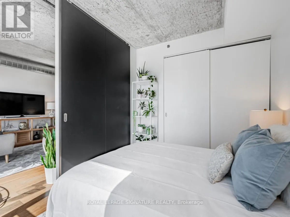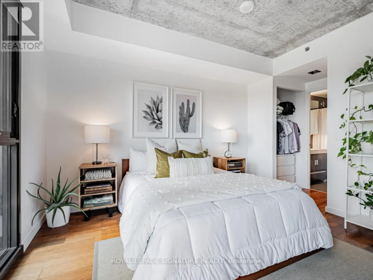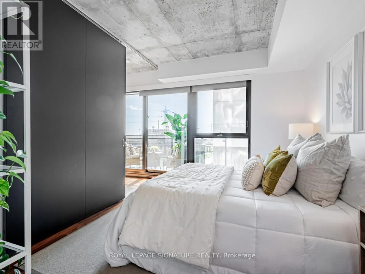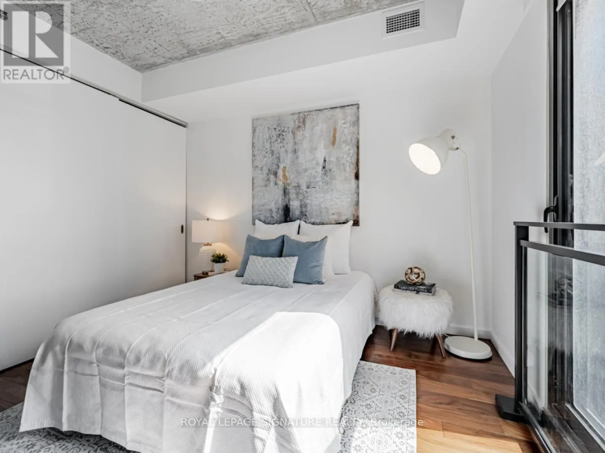 Cross Streets: Lower River St And King St E. ** Directions: South of King St E on Lower River St. On the right hand side. Welcome to River City Condos where sustainable living meets modern urban style! Step inside one of Toronto's first Gold LEED-certified residential communities, perfectly located in the city's vibrant downtown east. This bright and spacious suite offers true loft vibes, featuring exposed concrete ceilings and ducts, floor-to-ceiling windows, and hardwood floors throughout. Enjoy the ideal split-bedroom layout for added privacy and versatility. The primary suite features walk-through double closets and a fully tiled ensuite bath, while the second bedroom includes a double closet and a charming Juliette balcony. The modern kitchen has been thoughtfully updated with quartz countertops, a ceramic tile backsplash, and a stainless steel sink and faucet. Step out to your private balcony and take in the unobstructed southeast views - ideal for sunrise coffees or afternoon cocktails with friends! Residents of River City enjoy fantastic amenities, including a gym, party room, guest suites, and visitor parking - along with shared access to an outdoor pool and BBQ area. Nestled in the heart of the West Don Lands and Corktown neighbourhoods, you're just steps to Underpass Park and Corktown Commons. With a Walk Score of 98 and Bike Score of 97, you're perfectly positioned for city living - surrounded by great cafés, dining, shops, and recreation, plus direct access to the Lower Don Trail and other city bike paths. Bonus: this unit comes with two bike racks and two storage lockers - so you'll never run out of space! Only minutes to some of Toronto's coolest neighbourhoods - Distillery District, St. Lawrence Market, Leslieville, and East Chinatown, with quick access to transit and the DVP. (id:27476)