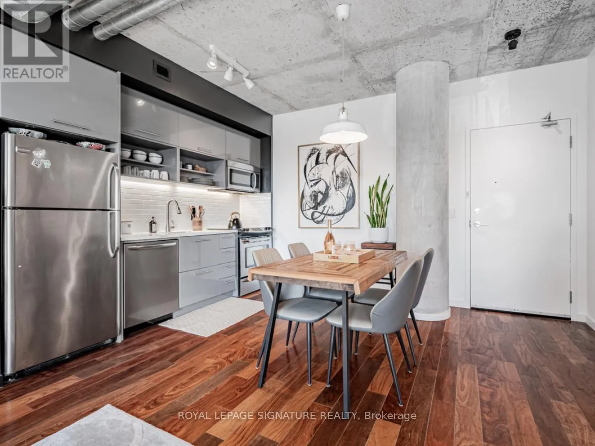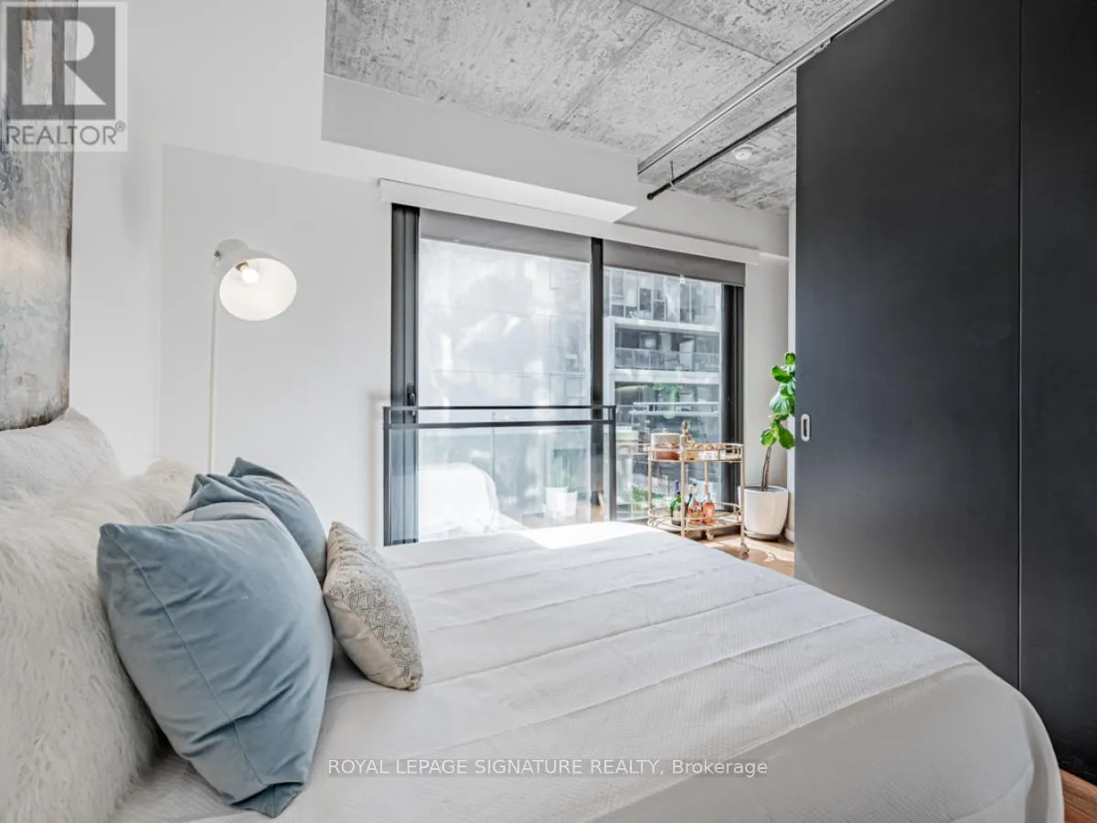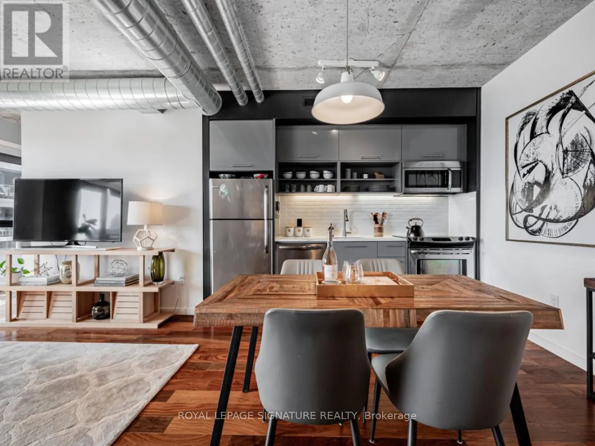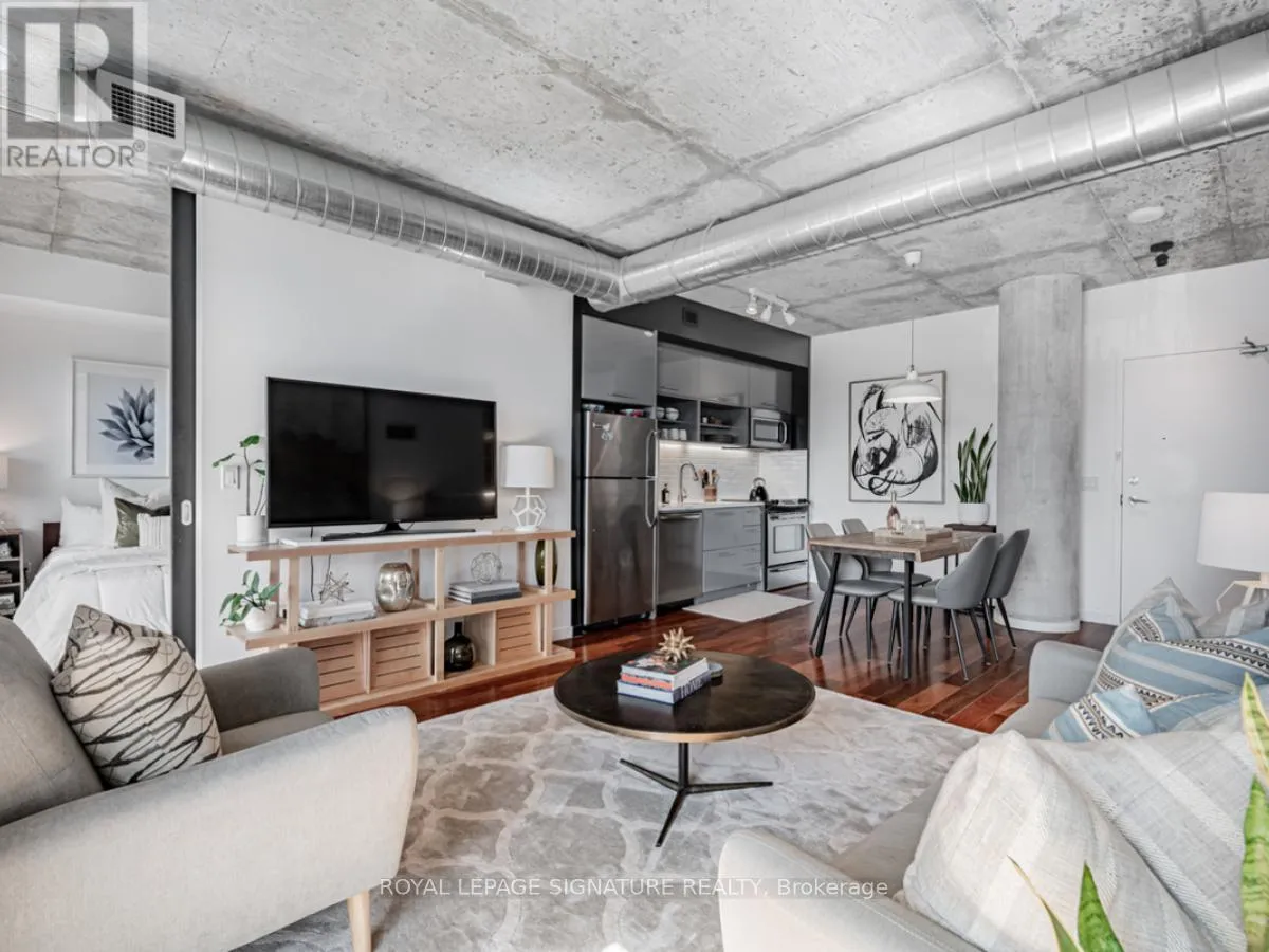 Cross Streets: Lower River St And King St E. ** Directions: South of King St E on Lower River St. On the right hand side. Welcome to River City Condos where sustainable living meets modern urban style! Step inside one of Toronto's first Gold LEED-certified residential communities, perfectly located in the city's vibrant downtown east. This bright and spacious suite offers true loft vibes, featuring exposed concrete ceilings and ducts, floor-to-ceiling windows, and hardwood floors throughout. Enjoy the ideal split-bedroom layout for added privacy and versatility. The primary suite features walk-through double closets and a fully tiled ensuite bath, while the second bedroom includes a double closet and a charming Juliette balcony. The modern kitchen has been thoughtfully updated with quartz countertops, a ceramic tile backsplash, and a stainless steel sink and faucet. Step out to your private balcony and take in the unobstructed southeast views - ideal for sunrise coffees or afternoon cocktails with friends! Residents of River City enjoy fantastic amenities, including a gym, party room, guest suites, and visitor parking - along with shared access to an outdoor pool and BBQ area. Nestled in the heart of the West Don Lands and Corktown neighbourhoods, you're just steps to Underpass Park and Corktown Commons. With a Walk Score of 98 and Bike Score of 97, you're perfectly positioned for city living - surrounded by great cafés, dining, shops, and recreation, plus direct access to the Lower Don Trail and other city bike paths. Bonus: this unit comes with two bike racks and two storage lockers - so you'll never run out of space! Only minutes to some of Toronto's coolest neighbourhoods - Distillery District, St. Lawrence Market, Leslieville, and East Chinatown, with quick access to transit and the DVP. (id:27476)