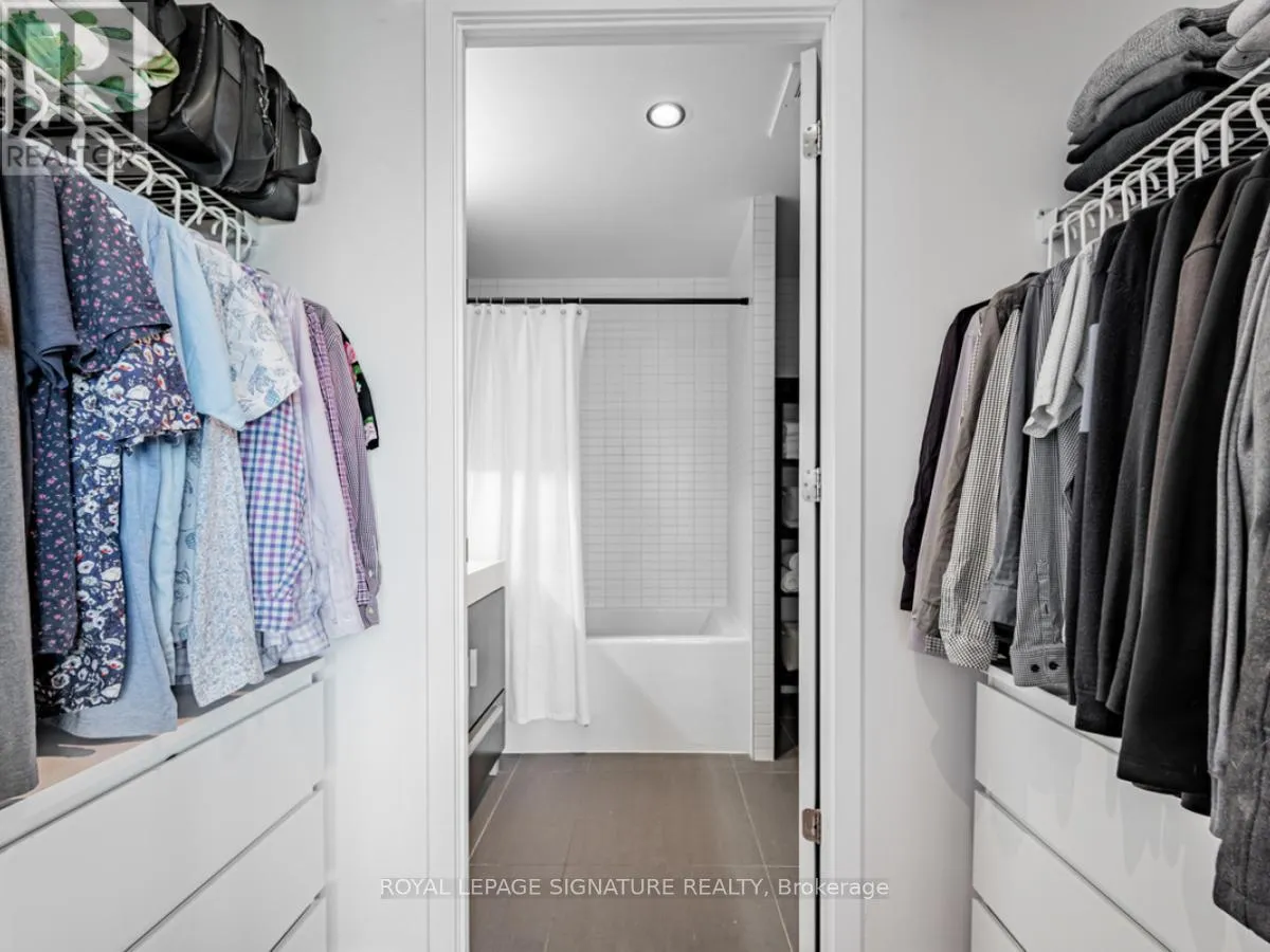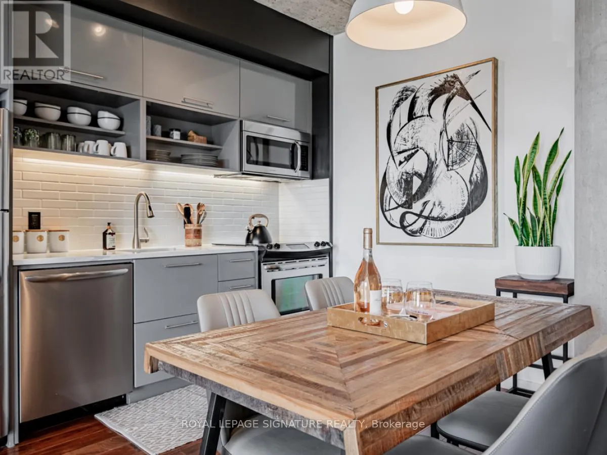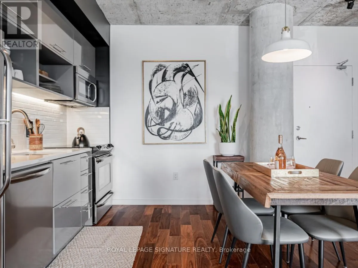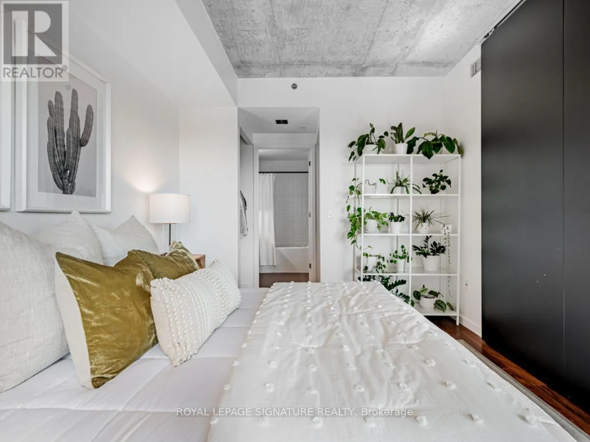 Cross Streets: Lower River St And King St E. ** Directions: South of King St E on Lower River St. On the right hand side. Welcome to River City Condos where sustainable living meets modern urban style! Step inside one of Toronto's first Gold LEED-certified residential communities, perfectly located in the city's vibrant downtown east. This bright and spacious suite offers true loft vibes, featuring exposed concrete ceilings and ducts, floor-to-ceiling windows, and hardwood floors throughout. Enjoy the ideal split-bedroom layout for added privacy and versatility. The primary suite features walk-through double closets and a fully tiled ensuite bath, while the second bedroom includes a double closet and a charming Juliette balcony. The modern kitchen has been thoughtfully updated with quartz countertops, a ceramic tile backsplash, and a stainless steel sink and faucet. Step out to your private balcony and take in the unobstructed southeast views - ideal for sunrise coffees or afternoon cocktails with friends! Residents of River City enjoy fantastic amenities, including a gym, party room, guest suites, and visitor parking - along with shared access to an outdoor pool and BBQ area. Nestled in the heart of the West Don Lands and Corktown neighbourhoods, you're just steps to Underpass Park and Corktown Commons. With a Walk Score of 98 and Bike Score of 97, you're perfectly positioned for city living - surrounded by great cafés, dining, shops, and recreation, plus direct access to the Lower Don Trail and other city bike paths. Bonus: this unit comes with two bike racks and two storage lockers - so you'll never run out of space! Only minutes to some of Toronto's coolest neighbourhoods - Distillery District, St. Lawrence Market, Leslieville, and East Chinatown, with quick access to transit and the DVP. (id:27476)