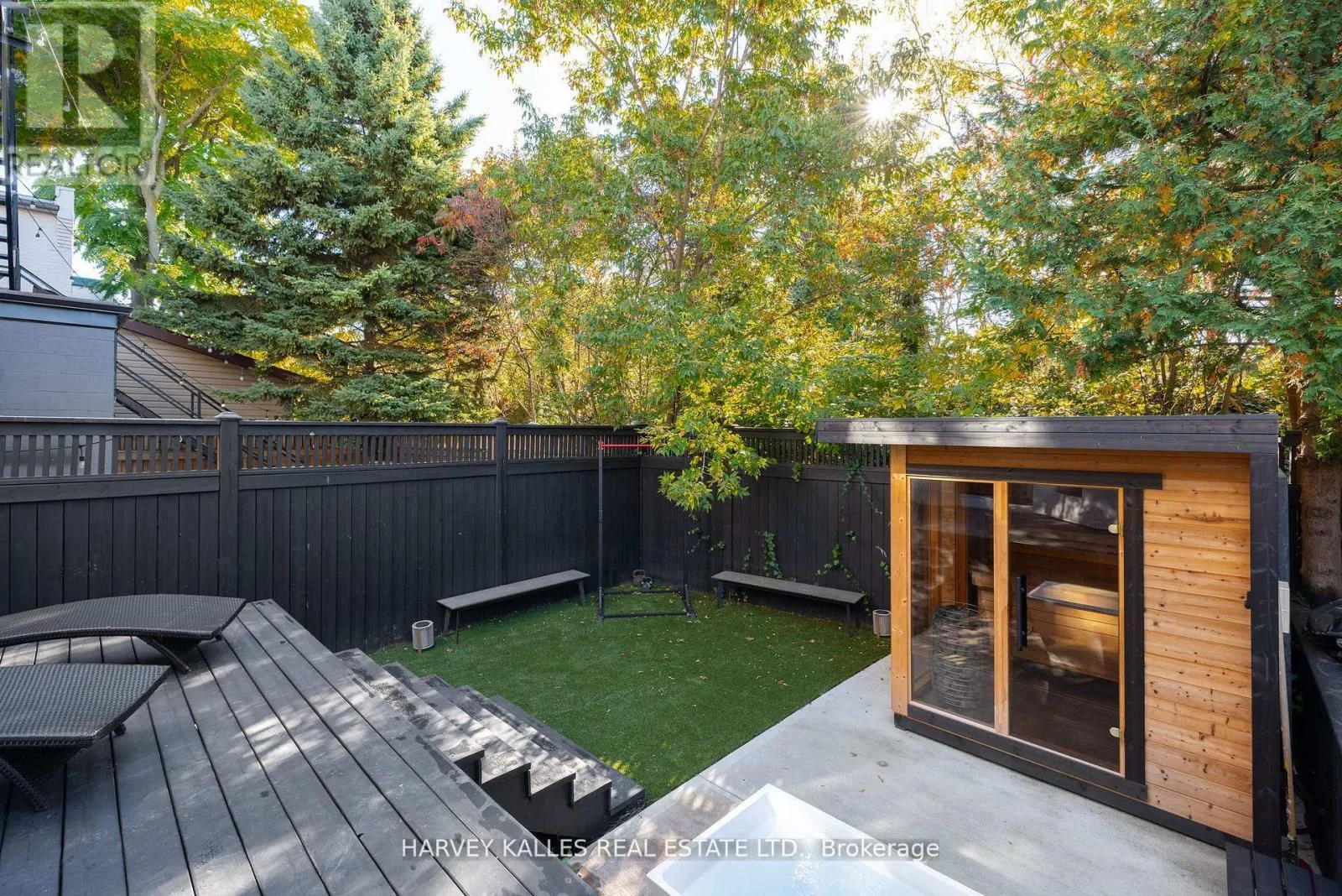 Avenue Rd & MacPherson Ave Step into this luxurious, renovated residence in the Republic of Rathnelly, a coveted residential enclave on the border of Yorkville and Summerhill. This home is uncompromising, offering family-functional interiors, a low-maintenance outdoor space with a cold plunge and sauna, and the best the city has to offer right at your doorstep. Light floods the house from every angle, and contrasting colours and materials create a striking first impression. On the main floor, you will find a powder room, a living room, large dining room, and a gorgeous over-sized kitchen with professional appliances and extensive storage space with views of the fully landscaped backyard. The outdoor space is low maintenance and thoughtfully laid out with a deck made for sun tanning, turf space for kids and pets to play and a cold plunge and sauna for the ultimate in rest and recovery. On the second floor, ideal for kids or guests, there are three bedrooms, including the perfect home office, two beautiful bathrooms and a convenient oversized laundry closet with a stacked washer/dryer and a sink. The third floor is the perfect owner's retreat with an oversized bedroom, walk-in closet, and hotel-inspired bathroom. A fully finished lower level with a recreation room, full bathroom and space roughed-in for an expansive laundry room completed the home. Live peacefully in this family-friendly enclave with parks, transit, and all the shops and restaurants Summerhill and Yorkville have to offer right at your doorstep. (id:27476)