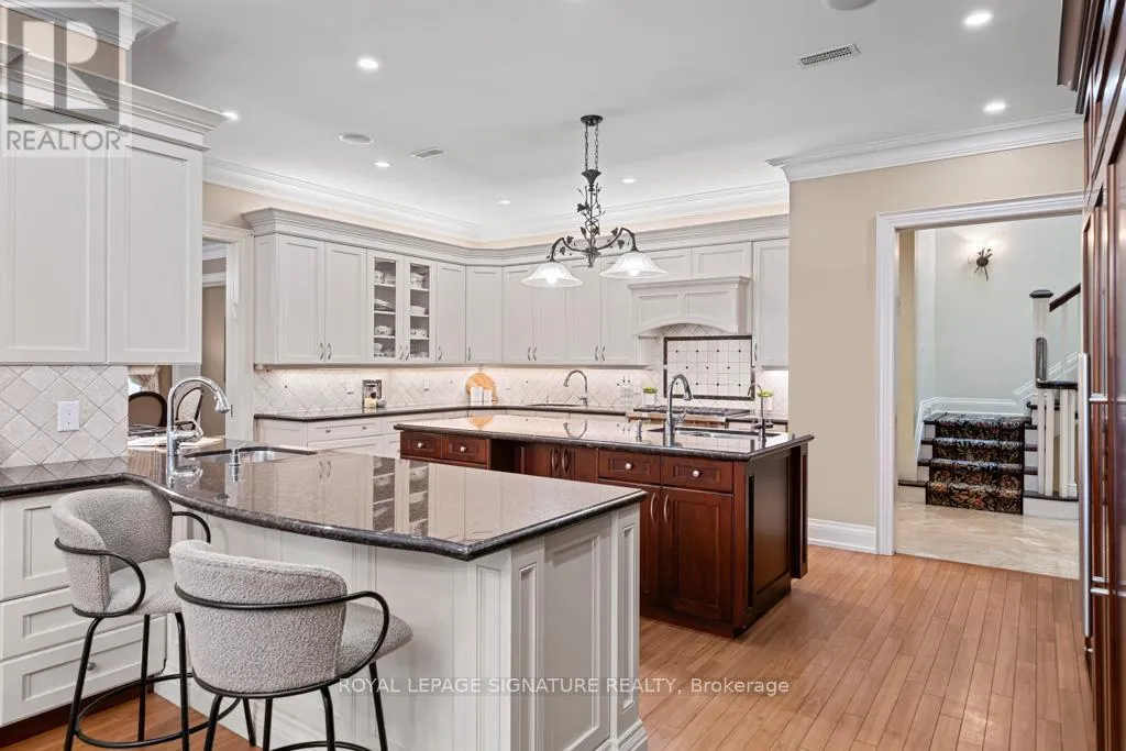 Bathurst St/Lawrence Ave W Truly one of a kind, an extraordinary residence on a rare 66 wide lot, crafted by renowned architect Richard Wengle. This expansive home offers 7 bedrooms and 10 bathrooms, thoughtfully designed for multi-generational living.The main floor features two full kitchens with premium appliance, including a separate kosher kitchen, a large island, and seamless flow to the dining and family rooms. French doors lead to the private backyard with a gated inground pool and cabana with bathroom and outdoor shower.The upper level showcases a luxurious primary suite with walk-in closet, private office, and a 7-piece spa ensuite, along with six additional spacious bedrooms and 4 bathrooms.The lower level is perfectly suited for extended family or rental opportunities, offering two fully equipped in-law suites/apartments with private kitchens, living spaces, and separate entrances. Additional amenities include multiple laundry rooms, custom storage, and direct garage access.With its rare lot size, thoughtful design, dual kitchens, and in-law potential, this home is a truly unique offering in the market, perfect for large families and those seeking both luxury and practicality. (id:27476)