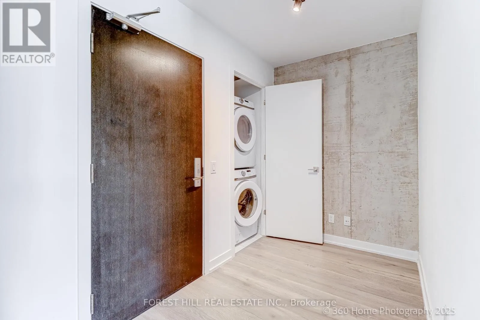 Cross Streets: Ontario St between Richmond & Adelaide. ** Directions: Queen St East to Ontario Street. Welcome to EAST 55, Toronto's chic condo located on quiet, leafy Ontario Street. This 1 BR plus Den, HIROSHIMA MODEL is the ideal home for anyone looking for a stylish urban retreat. Bright open concept LR has wall-to-wall glass windows with a walk-out to a huge balcony with an unobstructed view. The soaring 10.5 ft exposed concrete ceiling provides a spacious feel. Freshly painted in a modern color palette. Extended Kitchen cabinets (30"), Drawer under the oven, under-cabinet lighting and a smart quartz Island defines this modern kitchen. The Spa-like bathroom boasts elegant marble flooring and shower walls. Friendly concierges and secure access make this a desirable place to call home. Location is perfect, with proximity to the Distillery district, St.Lawrence market, King street Street cars, George Brown College, and steps to TTC. Excellent walking score. Hurry! This sophisticated condo won't last!!! (id:27476)