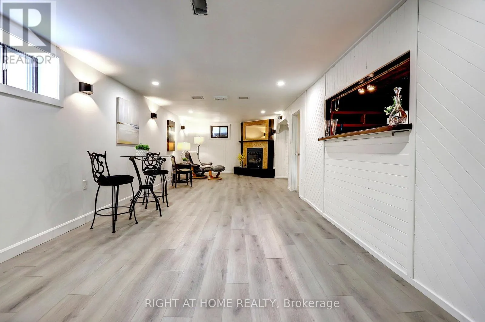 Cross Streets: Scarlet Rd & Cynthia. ** Directions: Eglington Ave W to Scarlet Rd to Cynthia Road. How would you like to live life on the edge of a golf course? 56 Cynthia Road, in the Roseland area of Toronto, backs onto the 5th hole of Scarlet Woods Golf Course. This lovely, brick 2+1 Bedroom, 2+1 Bathroom raised bungalow is move in ready. The large bay window, in the living room, brings tons of natural light into the space showcasing the gleaming hardwood floors that run throughout the living room and bedrooms. An open concept kitchen and dining room has enough space for entertaining family and friends. A door leads out to the backyard where you will find a great private, interlock patio. Two generous size bedrooms and a 4-pc bathroom completes this level of the home. Make your way down to the renovated recreation room and bathroom and 3rd bedroom. The 3-pc bathroom has a new shower stall and vanity. All living spaces have been freshly painted and new flooring installed throughout. In the backyard you will find mature gardens that provide great privacy. A single car garage currently used for storage could become useable for a vehicle by simply extending the driveway. Through the fence, you look upon the manicured 5th and 17th holes of Scarlett Wood Golf Course. This home is on a dead-end street making it a great area for kids. Roselands Public School is just a short walk away. (id:27476)