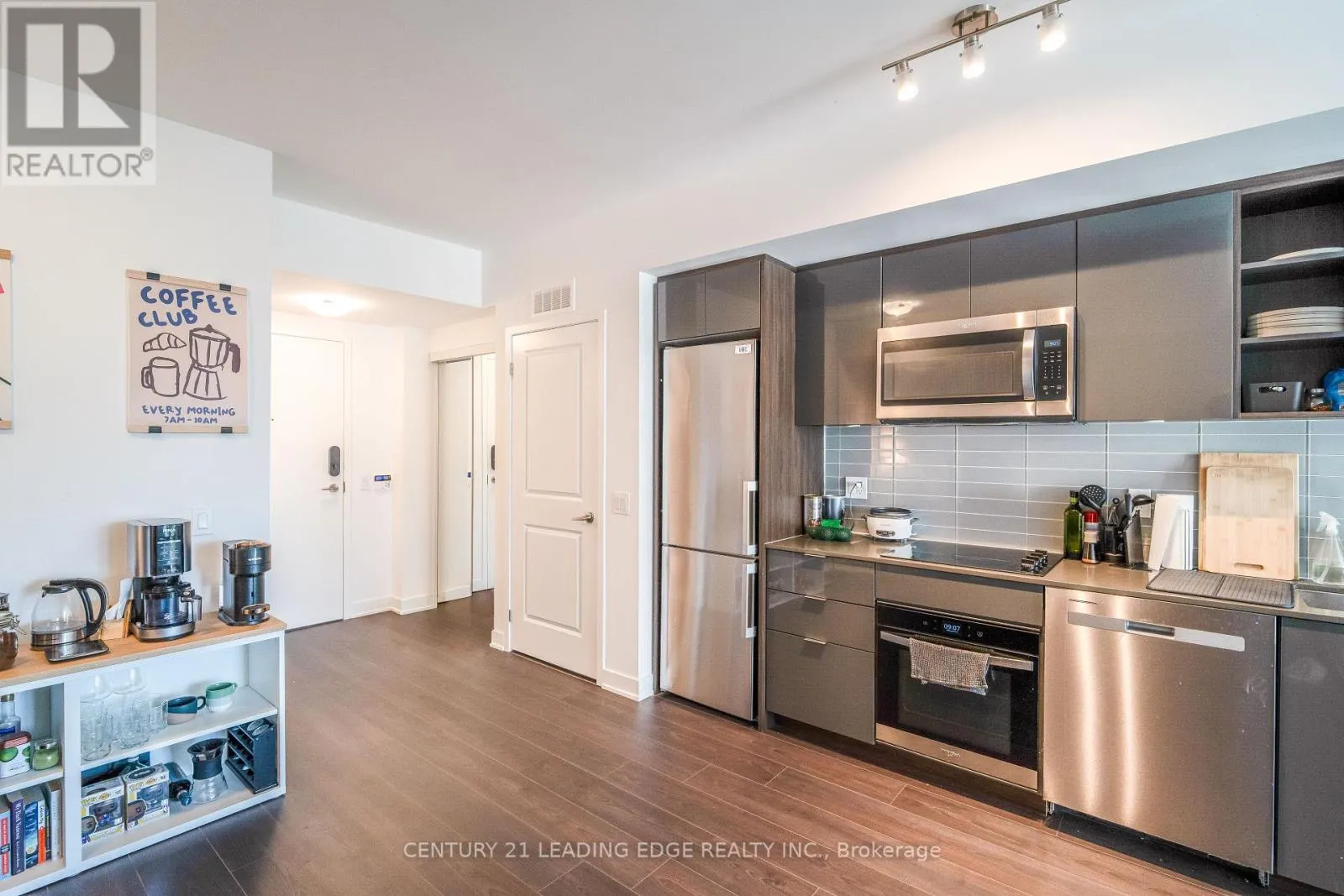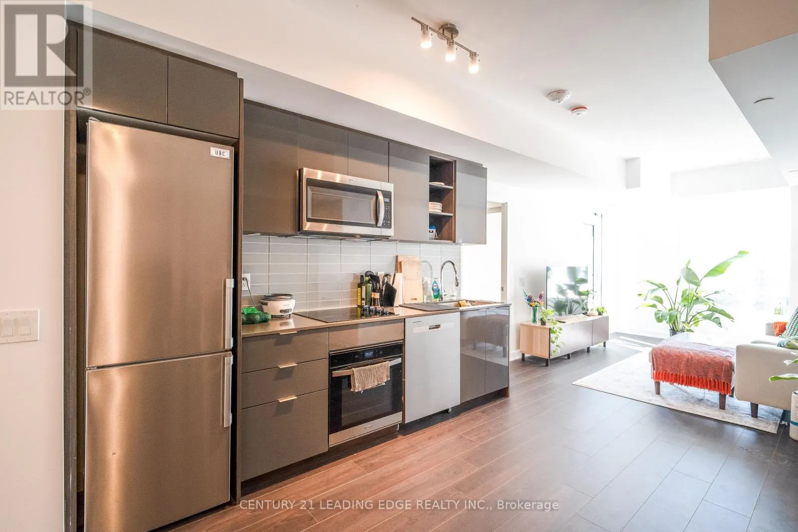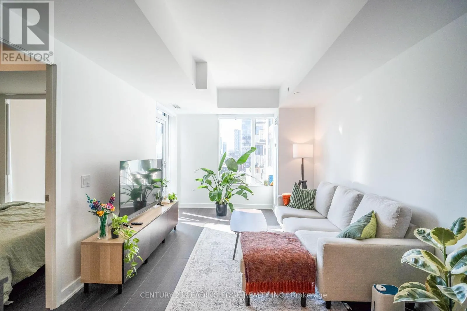 RICHMOND/PORTLAND Discover the perfect blend of style, comfort, and convenience in this stunning one-bedroom condo at Pemberton Group's coveted 543 Richmond Residences. Lovingly maintained and showing to perfection, this sun-filled unit boasts a bright and airy open-concept layout that feels both spacious and inviting. High 9-foot smooth ceilings and elegant wide-plank laminate floors create a sense of modern luxury throughout. The heart of this home is the beautifully appointed kitchen, featuring sleek stainless steel appliances and chic quartz countertops, which flows seamlessly into the combined living and dining area. This flexible space is ideal for both relaxing after a long day and entertaining guests. Step out onto your private balcony, the perfect spot to enjoy your morning coffee while soaking in the desirable southern exposure. This is city living at its finest with an unparalleled collection of resort-style amenities. Enjoy the peace of mind of a 24-hour concierge, stay active in the state-of-the-art fitness center, entertain in the stylish party and games rooms, or unwind by the incredible outdoor pool. The rooftop lounge offers a spectacular, panoramic backdrop of the city skyline. Located in the trendy Fashion District, you are moments away from the vibrant energy of the Entertainment and Financial Districts. Be surrounded by world-class restaurants, shops, and transit at your doorstep. An owned storage locker is included, adding to the ease of urban living. This exceptional property is a must-see. Taxes not yet assessed. (id:27476)
