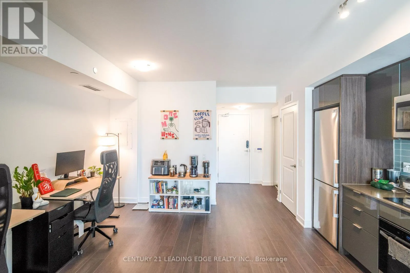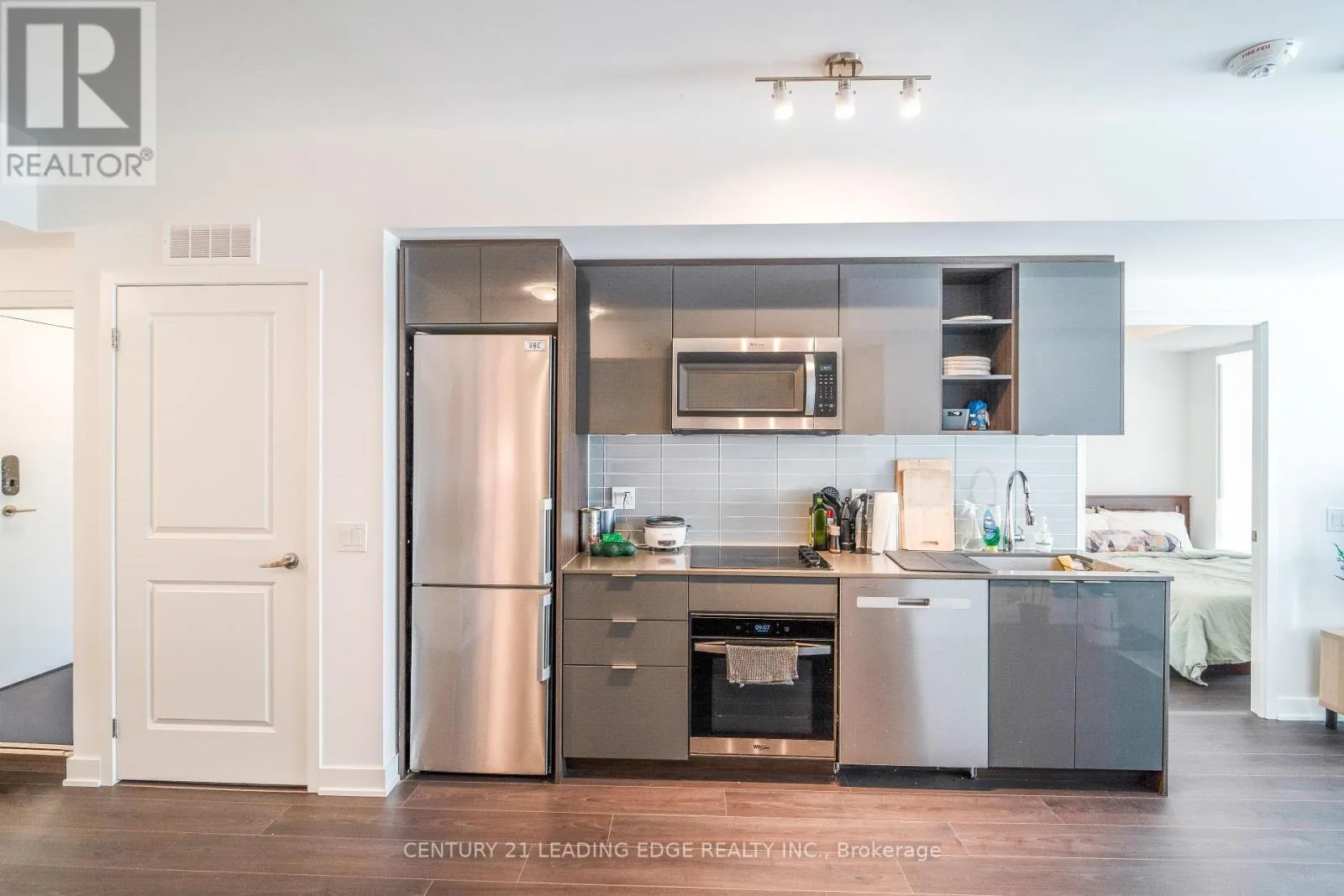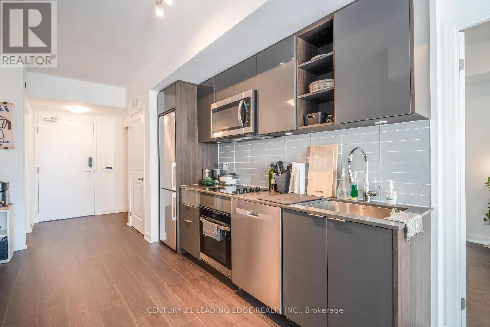 RICHMOND/PORTLAND Discover the perfect blend of style, comfort, and convenience in this stunning one-bedroom condo at Pemberton Group's coveted 543 Richmond Residences. Lovingly maintained and showing to perfection, this sun-filled unit boasts a bright and airy open-concept layout that feels both spacious and inviting. High 9-foot smooth ceilings and elegant wide-plank laminate floors create a sense of modern luxury throughout. The heart of this home is the beautifully appointed kitchen, featuring sleek stainless steel appliances and chic quartz countertops, which flows seamlessly into the combined living and dining area. This flexible space is ideal for both relaxing after a long day and entertaining guests. Step out onto your private balcony, the perfect spot to enjoy your morning coffee while soaking in the desirable southern exposure. This is city living at its finest with an unparalleled collection of resort-style amenities. Enjoy the peace of mind of a 24-hour concierge, stay active in the state-of-the-art fitness center, entertain in the stylish party and games rooms, or unwind by the incredible outdoor pool. The rooftop lounge offers a spectacular, panoramic backdrop of the city skyline. Located in the trendy Fashion District, you are moments away from the vibrant energy of the Entertainment and Financial Districts. Be surrounded by world-class restaurants, shops, and transit at your doorstep. An owned storage locker is included, adding to the ease of urban living. This exceptional property is a must-see. Taxes not yet assessed. (id:27476)