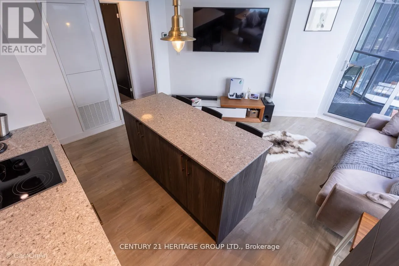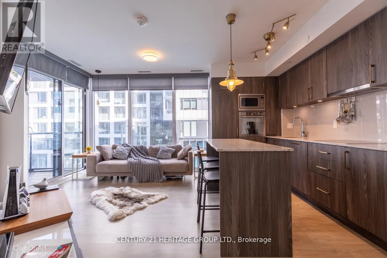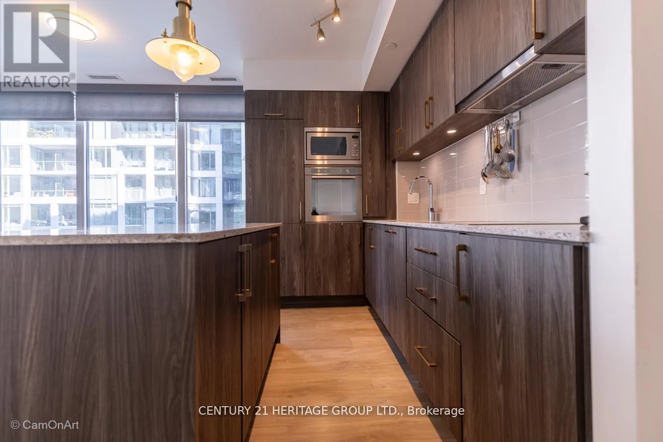 Bathurst & Front CORNER UNIT with 810 Square Feet of living space with balcony. Glimpse Lake Ontario from your second bedroom windows. This is a larger than average two bedroom unit when compared to other units. One underground parking and storage locker are included in the price. Daylight surrounds you via the 9-foot floor-to-ceiling windows. Meticulously maintained, with upgrades in the kitchen and bathrooms, including new like stainless steel high end built-in oven and microwave, a four element cooktop, upgraded kitchen island. The primary has a large walk-in closet, immaculate three piece ensuite. The main 4-piece bathroom is like new with a full-sized tub. Roller blinds on all the 9-foot floor-to-ceiling windows provide privacy and/or darkness. Living room has electronic roller blinds. Enjoy breakfast on your spacious 83 sq ft balcony with space for a couch and a table where you can sit and enjoy your morning coffee. Current owner stores a bicycle and cooks there. Minto's sterling reputation for exceptionally high quality construction with LEED certification is reflected in the reasonable maintenance fees. The remarkable architecture makes this property instantly recognizable. The quality of materials and amenities including a sophisticated fitness centre, 24 hr. security and concierge, beautiful rooftop patio and pool, three luxurious lounges, party, media rooms, shared BBQ's, community courtyard. You will be in the heart of the action: the Well, Stackt and unlimited dining and shopping plus the proximity to the lake. FarmBoy and Dollarama are conveniently located on the ground floor. A 99 Walk Score and 95 Transit Score! The New Ontario Transit Line will be a short walk awaymaking this property even more valuable. The quality of workmanship materials and amenities and location, location make this a highly desirable building complex. Underground parking and locker are included, you can earn $3300/ per month rental income. (id:27476)