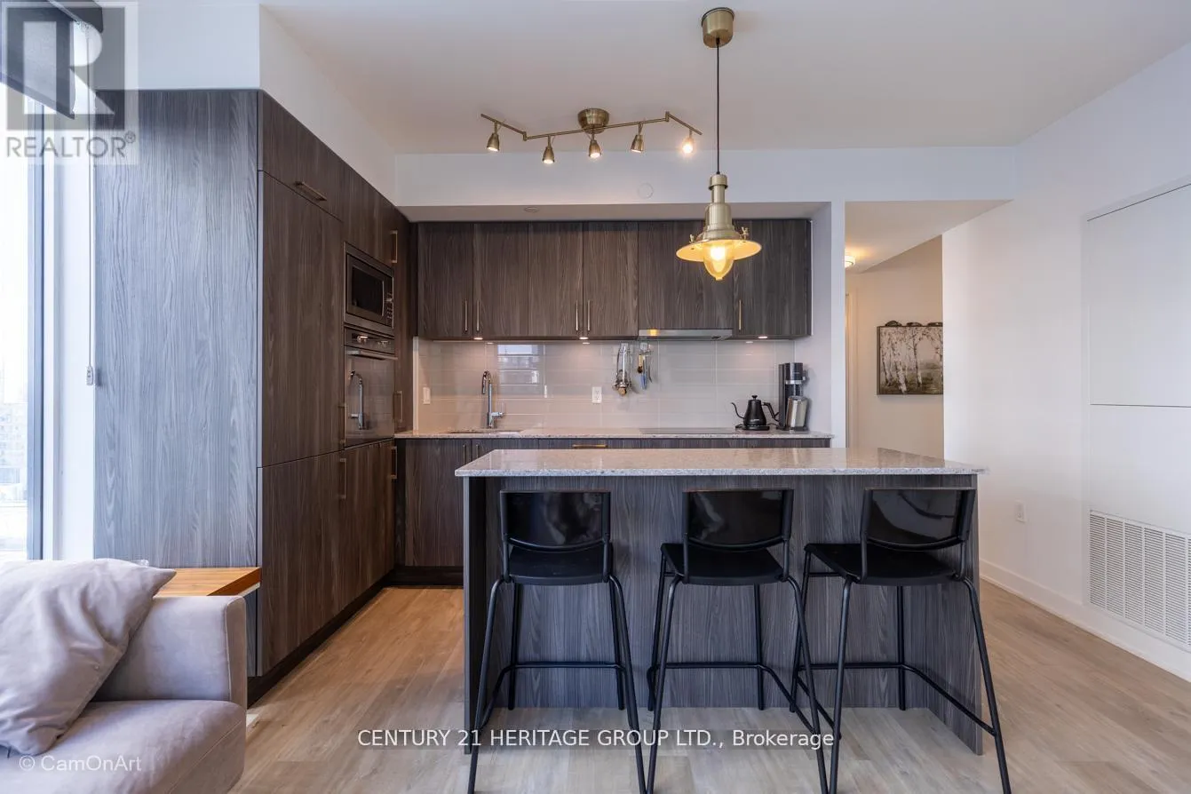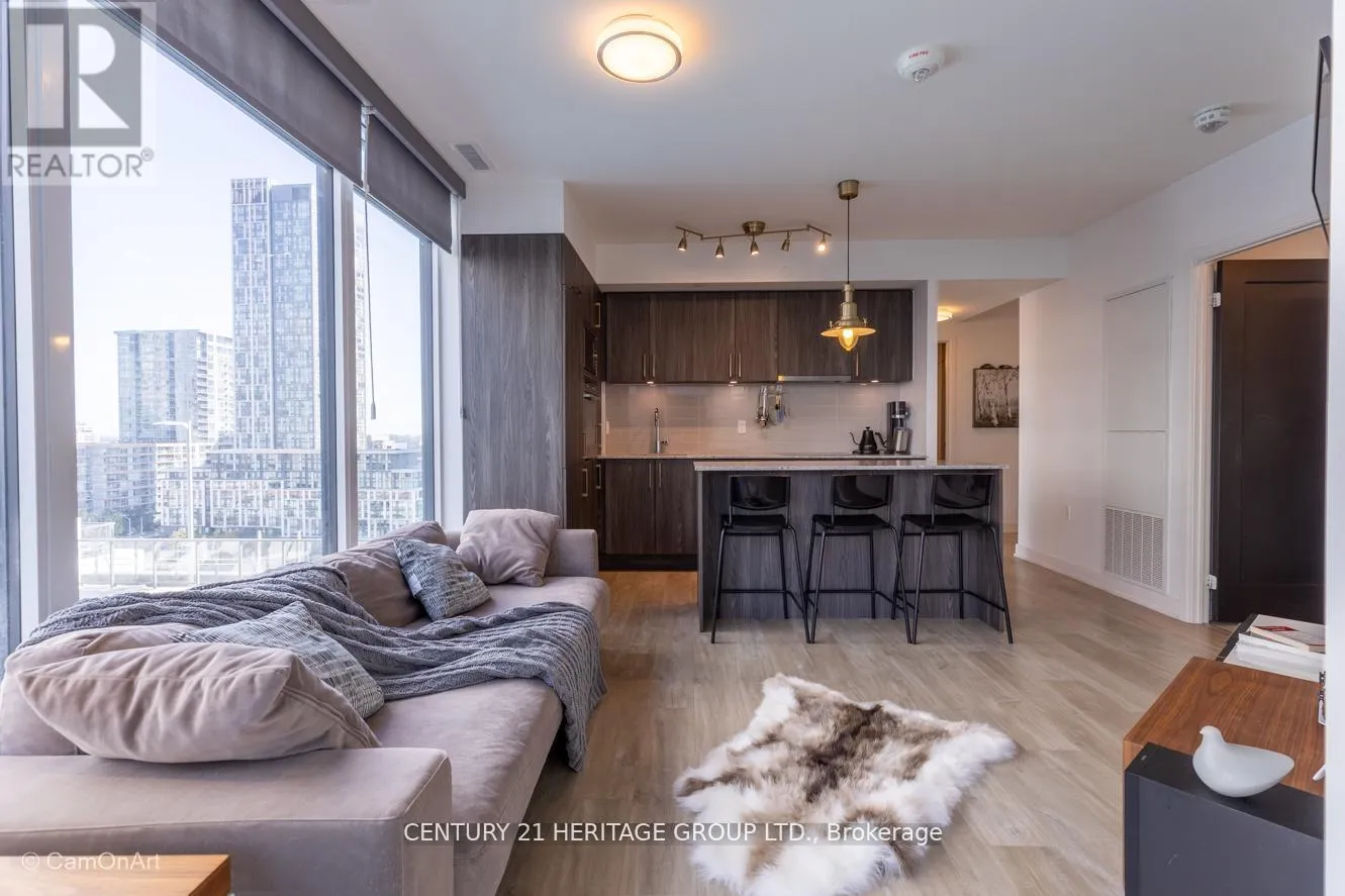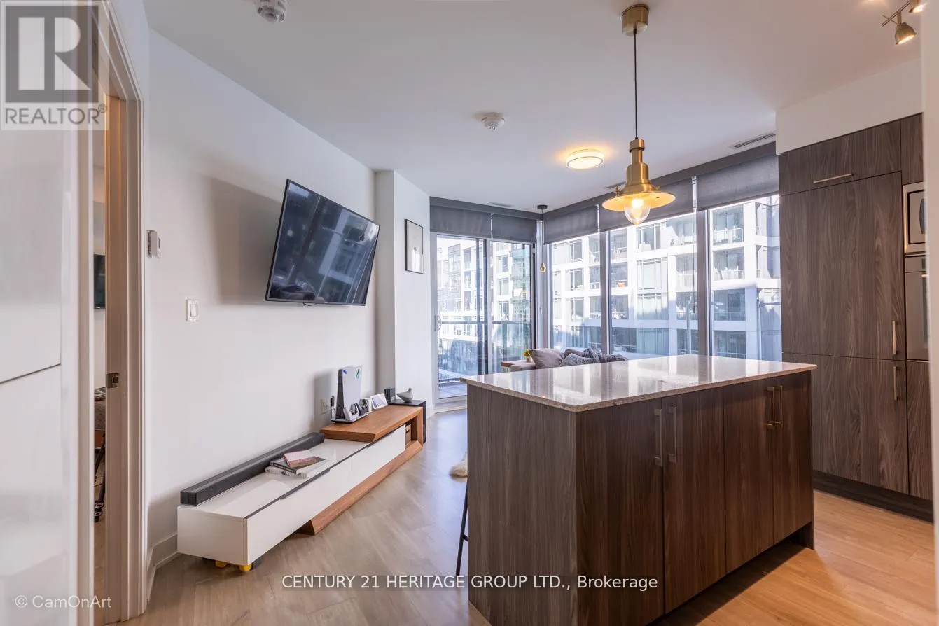 Bathurst & Front CORNER UNIT with 810 Square Feet of living space with balcony. Glimpse Lake Ontario from your second bedroom windows. This is a larger than average two bedroom unit when compared to other units. One underground parking and storage locker are included in the price. Daylight surrounds you via the 9-foot floor-to-ceiling windows. Meticulously maintained, with upgrades in the kitchen and bathrooms, including new like stainless steel high end built-in oven and microwave, a four element cooktop, upgraded kitchen island. The primary has a large walk-in closet, immaculate three piece ensuite. The main 4-piece bathroom is like new with a full-sized tub. Roller blinds on all the 9-foot floor-to-ceiling windows provide privacy and/or darkness. Living room has electronic roller blinds. Enjoy breakfast on your spacious 83 sq ft balcony with space for a couch and a table where you can sit and enjoy your morning coffee. Current owner stores a bicycle and cooks there. Minto's sterling reputation for exceptionally high quality construction with LEED certification is reflected in the reasonable maintenance fees. The remarkable architecture makes this property instantly recognizable. The quality of materials and amenities including a sophisticated fitness centre, 24 hr. security and concierge, beautiful rooftop patio and pool, three luxurious lounges, party, media rooms, shared BBQ's, community courtyard. You will be in the heart of the action: the Well, Stackt and unlimited dining and shopping plus the proximity to the lake. FarmBoy and Dollarama are conveniently located on the ground floor. A 99 Walk Score and 95 Transit Score! The New Ontario Transit Line will be a short walk awaymaking this property even more valuable. The quality of workmanship materials and amenities and location, location make this a highly desirable building complex. Underground parking and locker are included, you can earn $3300/ per month rental income. (id:27476)