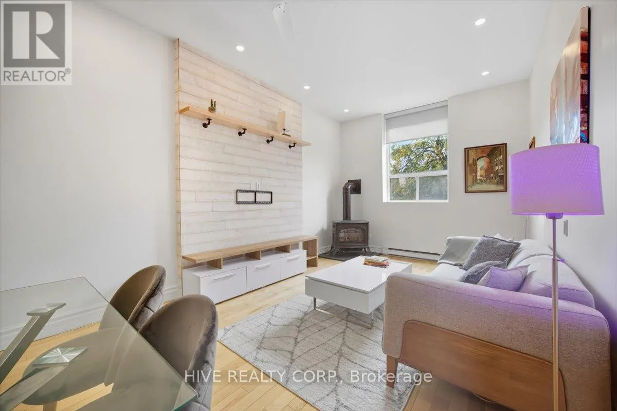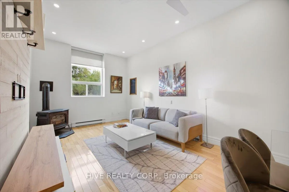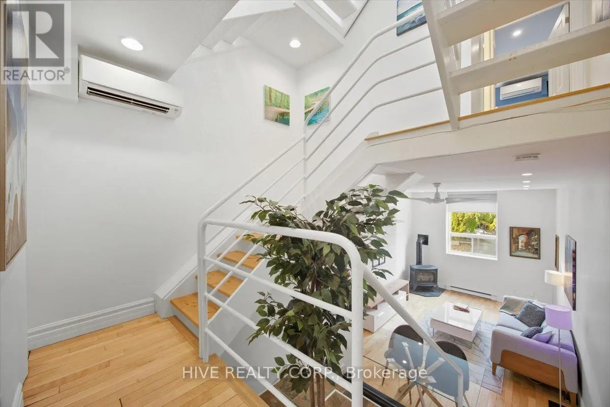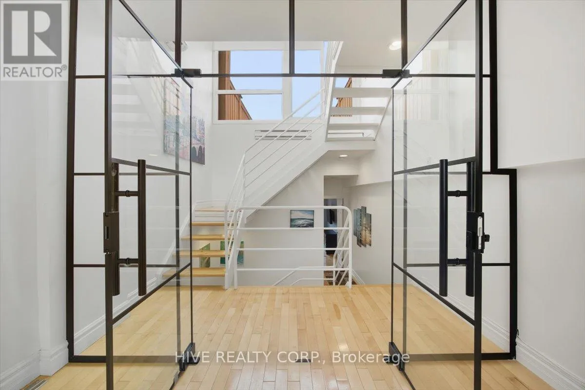 Cross Streets: Broadview/Danforth. ** Directions: Unit D Is Accessible From Laneway To North Of Building. Discover a home that is anything but ordinary. Nestled within the coveted Playter Estates, The Historical Don Hall Lofts present a phenomenal 2-bedroom, 2-bathroom townhouse, once a vibrant 1920s dance hall and later a hippie commune.Now, this multi-level sanctuary is a light-filled retreat. Soaring 10-foot ceilings and massive, tall windows bathe the open-concept space in sunshine. The second bedroom is a masterpiece of flexibility, featuring a sleek glass wall system that can be a sun-drenched home office, a peaceful nursery, or a bright and airy bedroom. A gas fireplace creates a cozy ambiance, perfect for unwinding in your Living/Dining space.Step outside to your own private escape with two rooftop terraces that offer a serene perch above a quaint, tree-lined street. This is urban living with unparalleled tranquility, yet you're moments from the Broadview Transit Hub, the Don Valley Trail system, and the energy of the Danforth. Parking and storage locker complete this exceptional offering.Seize the chance to own a truly artistic home in one of Toronto's most sought-after neighbourhoods. Your history-rich oasis awaits. (id:27476)