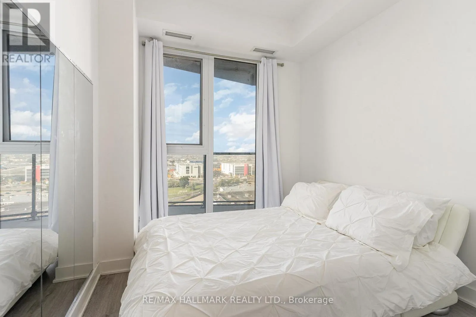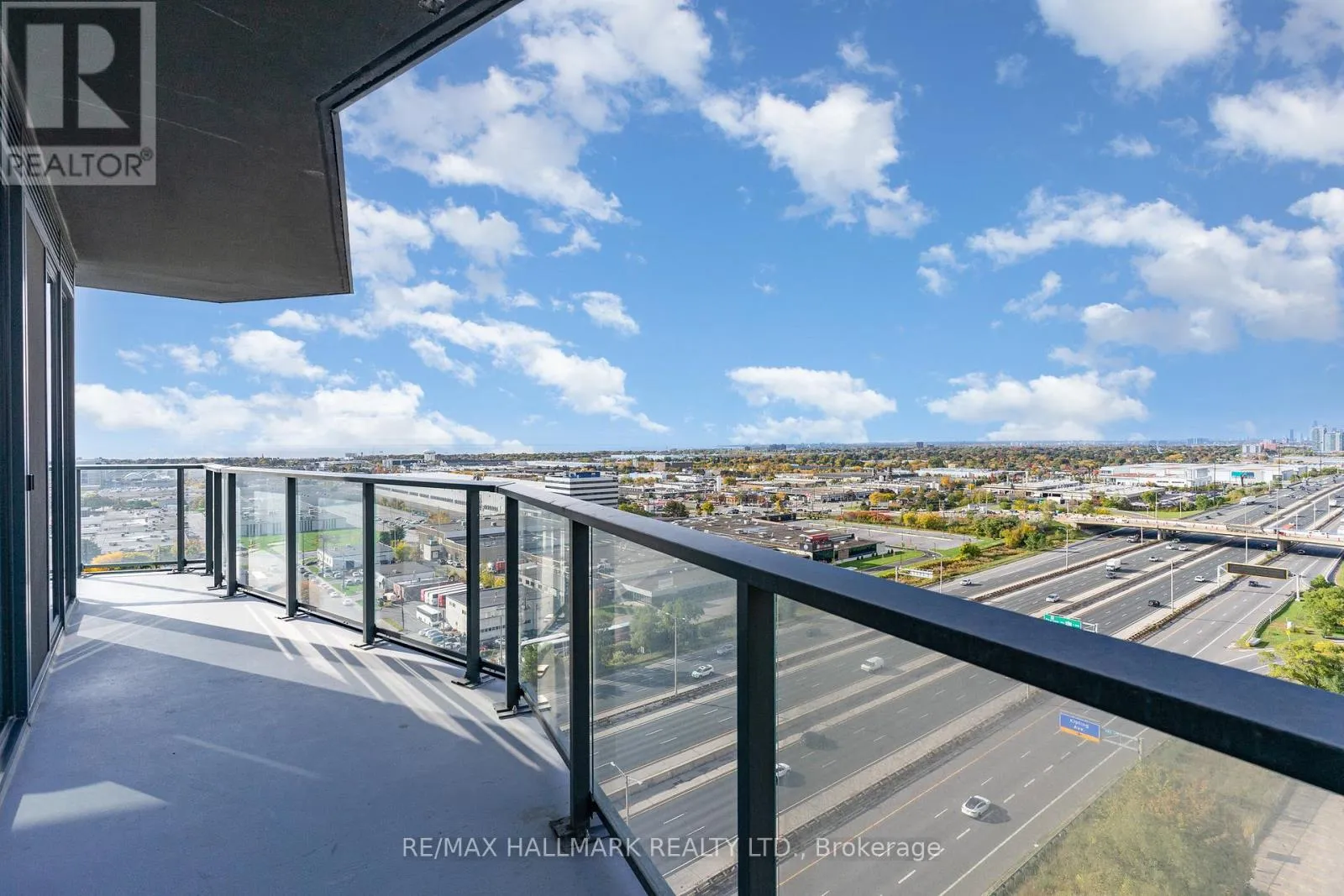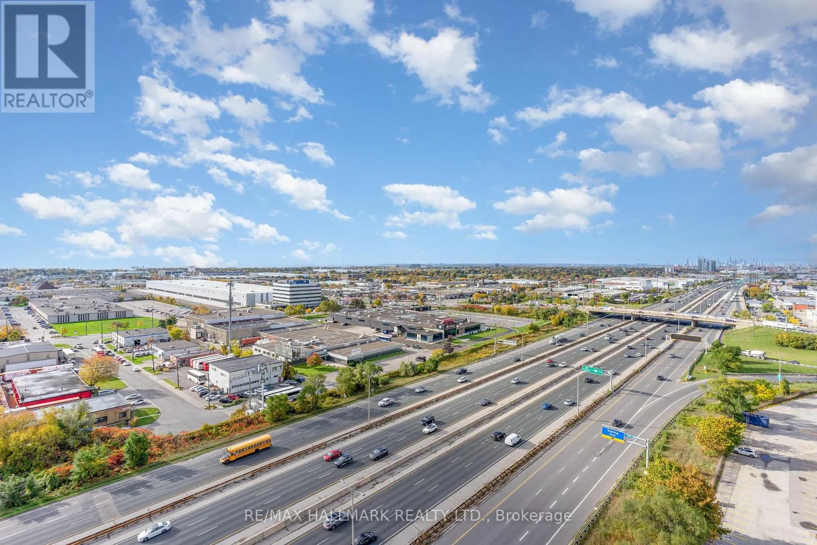 The Queensway/Zorra Experience refined luxury living at 36 Zorra Street, where contemporary design meets everyday comfort. This stunning corner suite showcases unobstructed lake and sunset views from every room, offering a sophisticated retreat in the heart of Etobicoke. Thoughtfully upgraded and meticulously maintained, this 2+1 bedroom, 2-bath residence includes a premium parking space and features over 800 sq ft of interior living space, complemented by a wrap-around 300 sq ft balcony-ideal for sunset cocktails or morning coffee above the city skyline.The intelligently designed open-concept layout maximizes functionality without compromising style. Floor-to-ceiling windows bathe every room in natural light, while smooth cabinetry, sleek black fixtures, and elegant finishes create a cohesive, modern aesthetic. Both bedrooms are generously sized, and the spacious den offers a versatile space-perfect for a home office, studio, or guest area. Every inch of this suite reflects thoughtful design and understated elegance.Residents enjoy access to over 9,500 sq ft of resort-style amenities, including a 7th-floor rooftop pool with cabanas, BBQ and fire pit areas, a state-of-the-art gym, yoga studio, sauna, kids' club, hobby room, arcade, and multiple entertainment lounges. Additional conveniences include 24-hour security, guest suites, and a private resident shuttle to Kipling subway station for seamless downtown access.Ideally located in The Queensway, one of Etobicoke's most dynamic neighbourhoods, you'll love the walkability to restaurants, cafes, Sherway Gardens, and the ease of major highway access.A perfect blend of luxury, location, and lifestyle-this residence redefines elevated urban living at 36 Zorra. (id:27476)