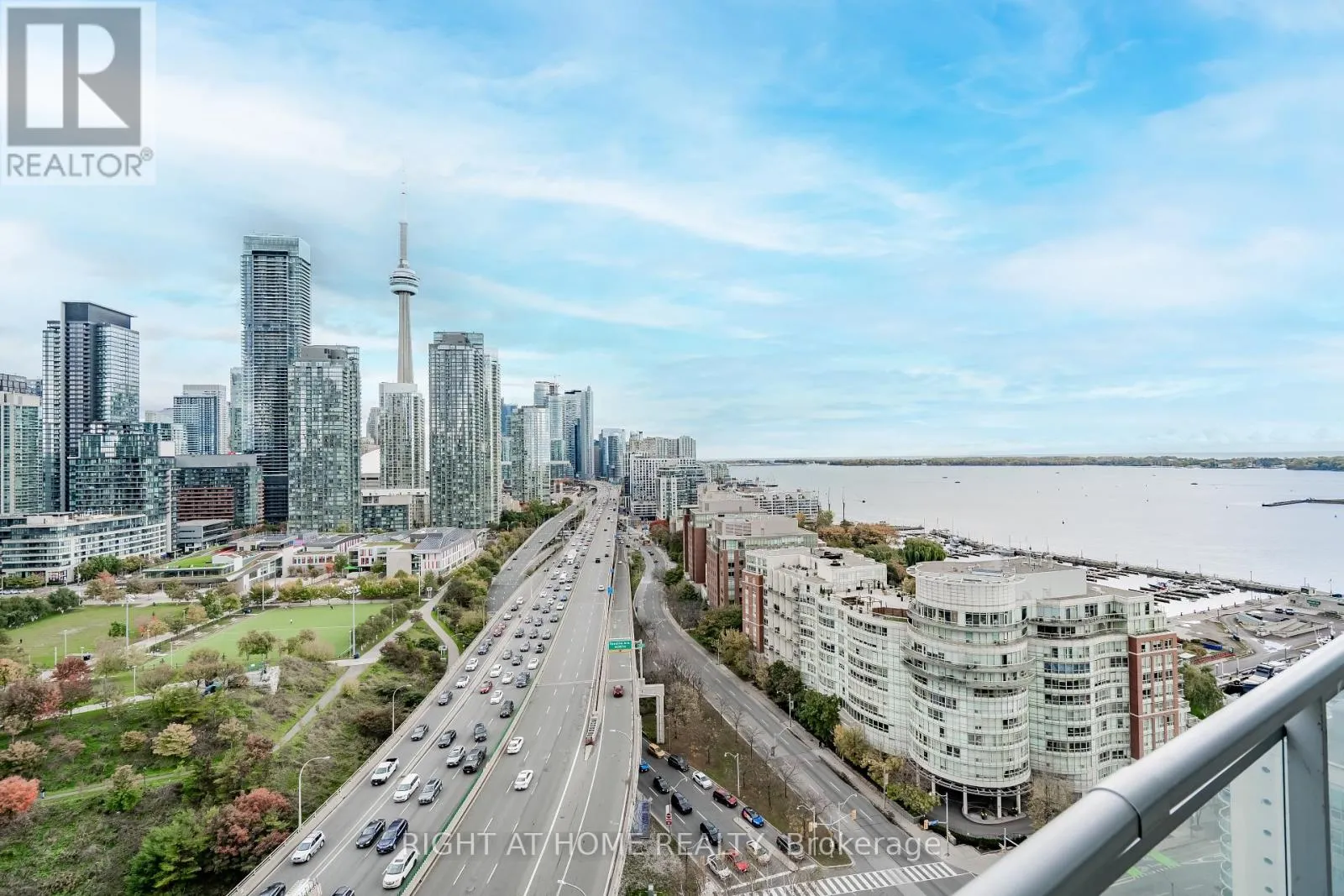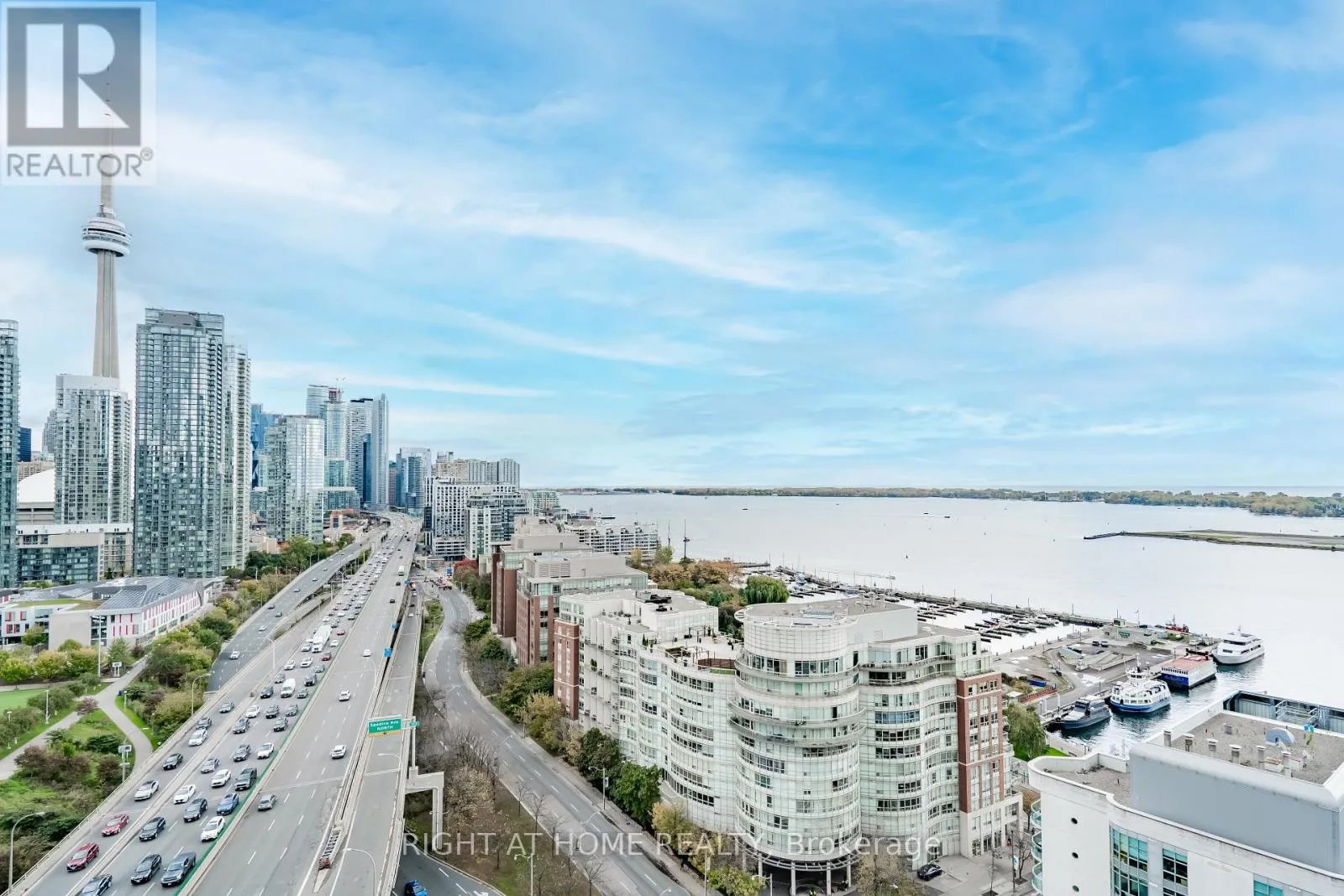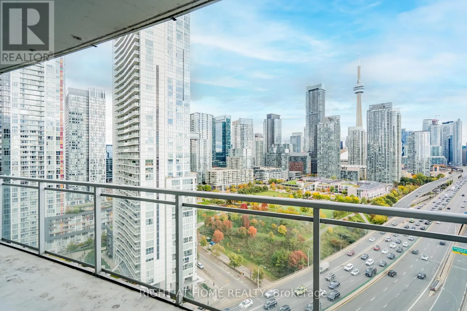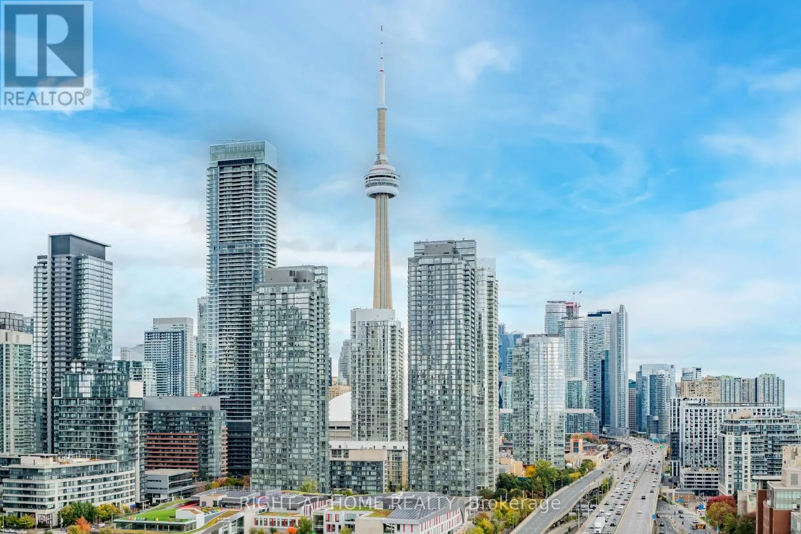 Lakeshore BLVD W & Dan Leckie Way Walker and Riders Paradise with 97 walk score and 91 Transit score**Welcome to the Stunning Panorama Condos! Wake up each morning to breathtaking, unobstructed views of the CN Tower, Rogers Centre, CityPlace, and the shimmering waters of Lake Ontario. This thoughtfully designed 1-bedroom + den suite offers an open-concept layout, perfect for modern living. The versatile den can easily serve as a home office or dining area, adapting to your lifestyle needs. Enjoy the convenience of a split bathroom design with a private ensuite and separate powder room ideal when entertaining guests. Step outside onto your spacious balcony and soak in the sunrise over the lake, or unwind as the city lights sparkle at night. Pet friendly limited on size and type and One Parking spot, Water and Heat are included**Freshly Painted**Six Months rent may be considered. (id:27476)