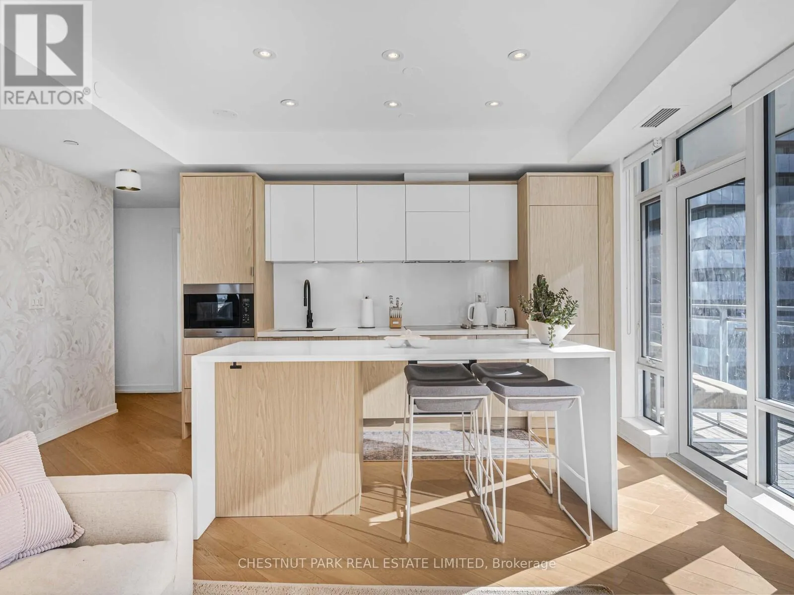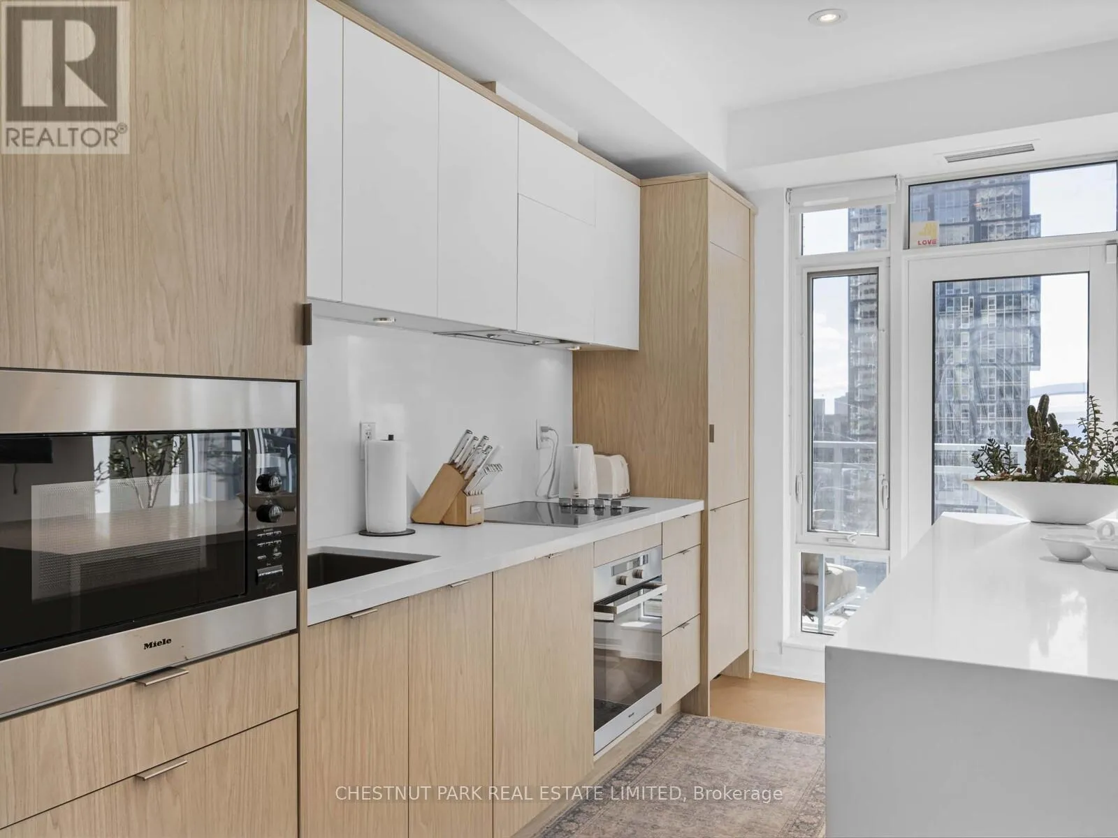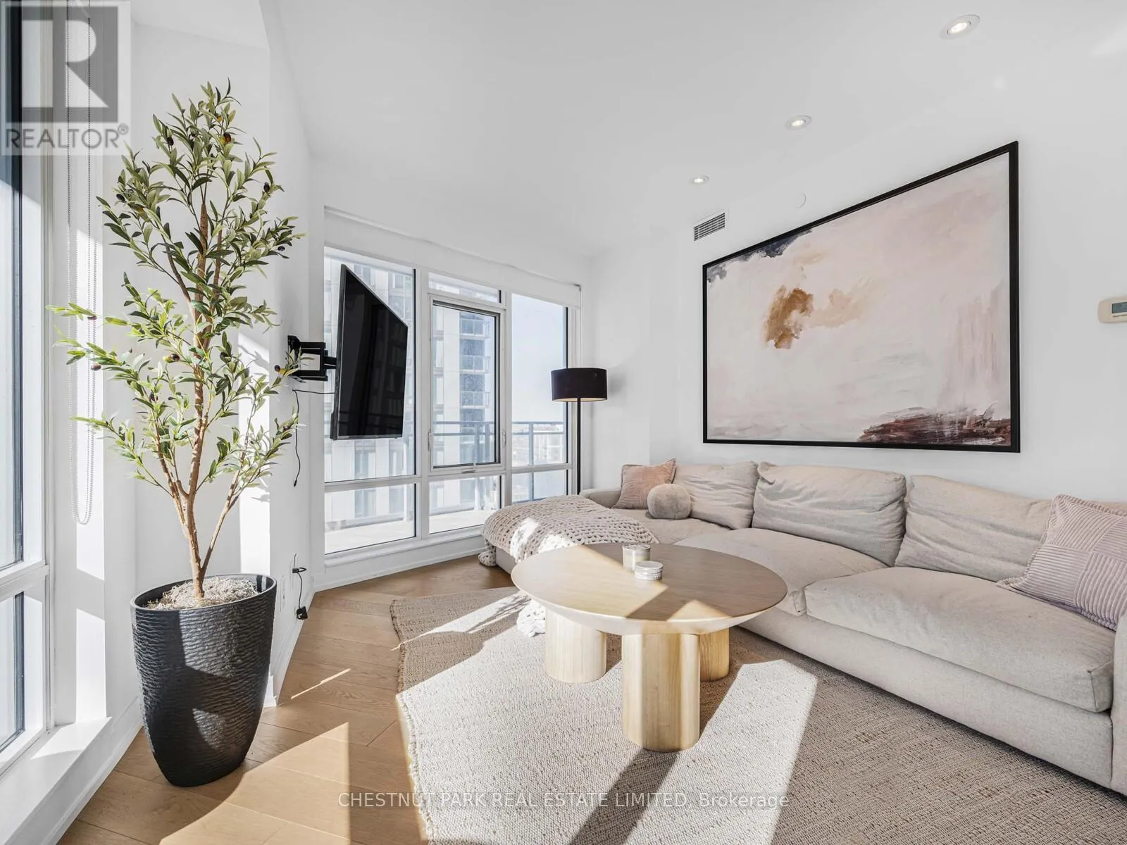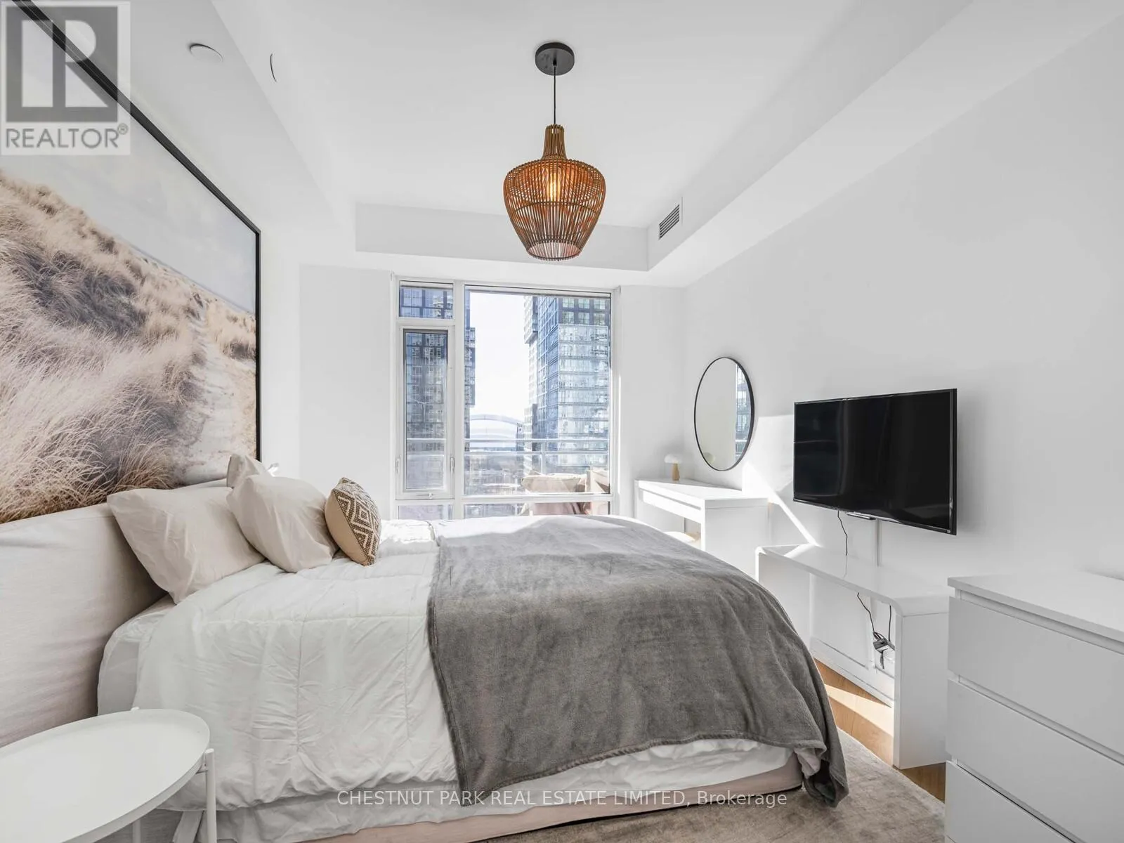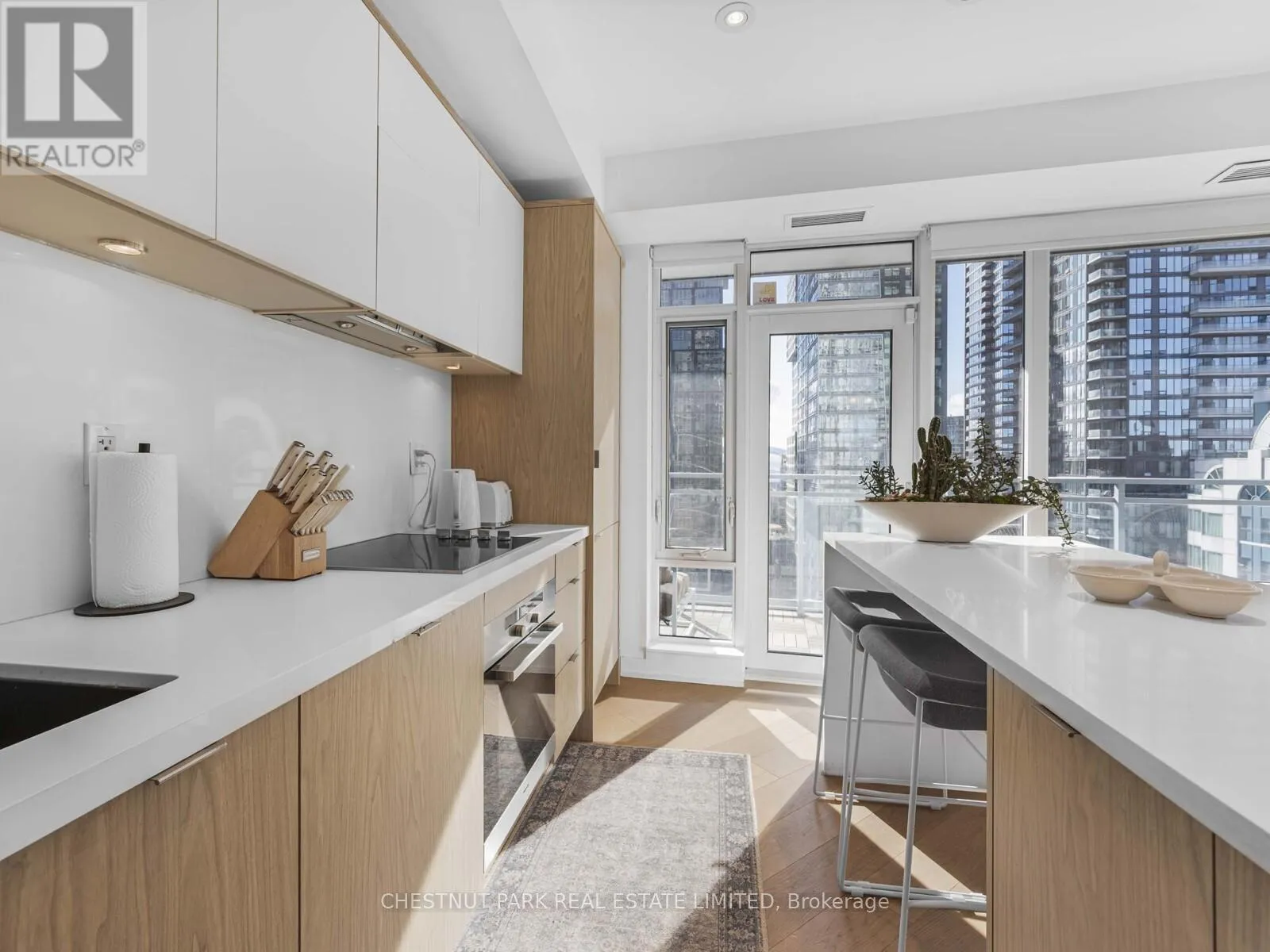 Cross Streets: Adelaide St / John St. ** Directions: North of King and South of Adelaide. Fully furnished and move-in ready. Large corner suite featuring a 2-bedroom, 2-bathroom layout with elegant white oak flooring and a sleek chefs kitchen with a custom island that make meals and entertaining both easy and and an elevated experience. Built-in closets in both bedrooms and in the hallway provide exceptional storage throughout the unit and offer that extra bit of space you didn't think you needed. The floor-to-ceiling southwest windows and 9' ceilings flood this corner unit with natural sunlight throughout the day and the sliding doors open to a wrap-around terrace that is finished with patio tiles and an unobstructed CN Tower view to the south and and the downtown skyline spanning to the west - it's simply gorgeous!The split-bedroom floor plan is ideal for working from home with a perfectly presented office. Located in the heart of the Entertainment District, steps to restaurants, theatres, grocers, cafés, and TTC. Quiet, modern, and truly turnkey. Parking available for rent separately. (id:27476)