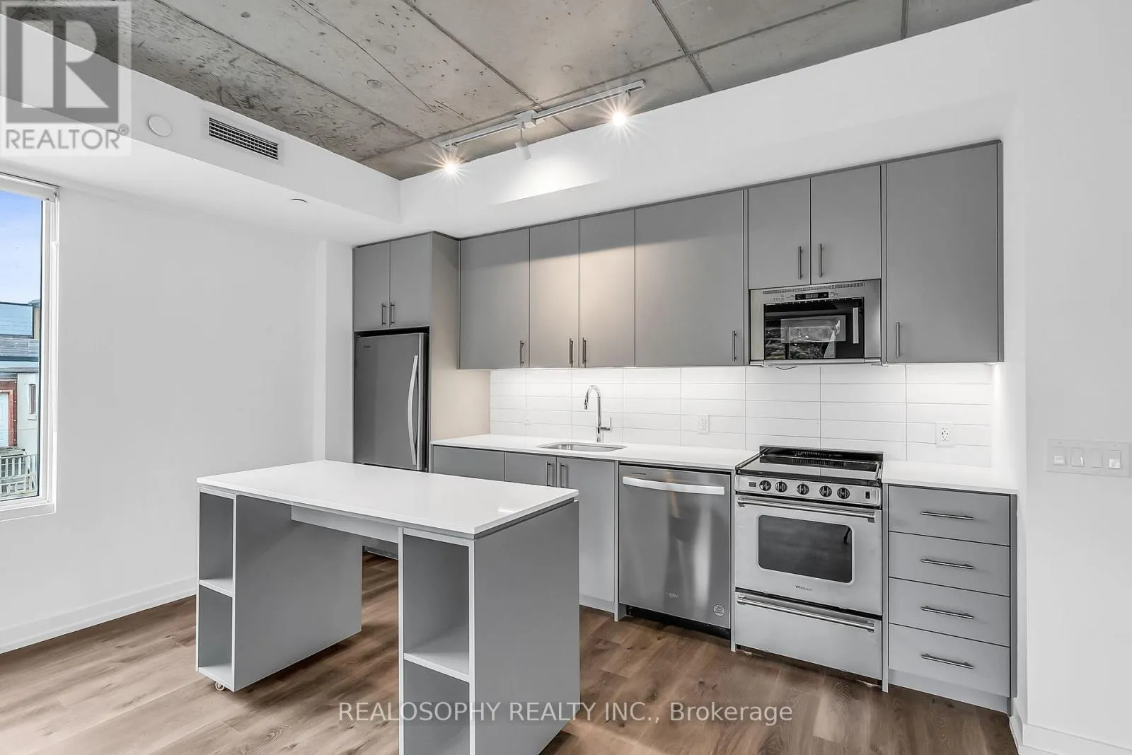 Cross Streets: Jones & Queen. ** Directions: . Welcome to 115 Larchmount, a new 6-storey boutique residence thoughtfully designed by the acclaimed architecture firm Superkul. Located in the vibrant heart of Leslieville, this purpose-built rental offers an elevated living experience for those who value design, comfort, & community. Enjoy year-round comfort with a state-of-the-art geothermal heating and cooling system, ensuring efficient and eco-friendly temperature control in every season. This exclusive purpose-built rental, built and managed by Hullmark, is perfect for those seeking both style and substance in an intimate setting. The unit features hardwood floors, heated bathroom floors, custom closet built-ins and stainless steel appliances. Residents will appreciate the modern conveniences that make daily living effortless. A dedicated delivery room provides private lockers, including refrigerated spaces for grocery deliveries, ensuring that your packages and perishables are safely stored. For those who prefer to commute by bike, a secure bike locker room is located on the ground floor. The building also features a stunning rooftop terrace with panoramic views of the city, offering the perfect space to relax or entertain. Additionally, a beautifully designed lounge and party room is available for residents to host gatherings or enjoy quiet moments. Every detail has been thoughtfully designed to enhance your living experience! **EXTRAS** Parking is available for $250 / month. This property is a purpose-built rental apartment building. (id:27476)