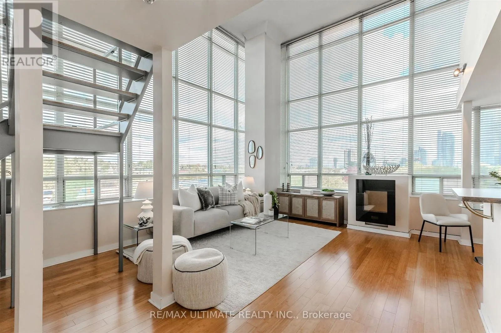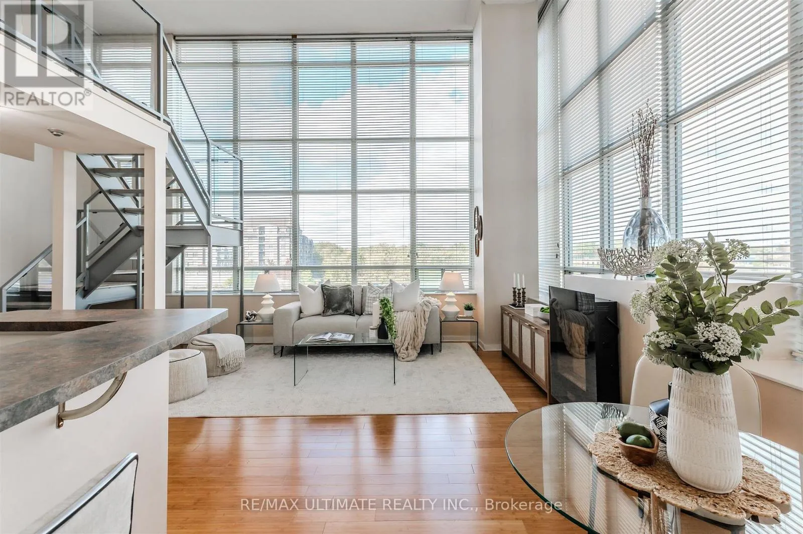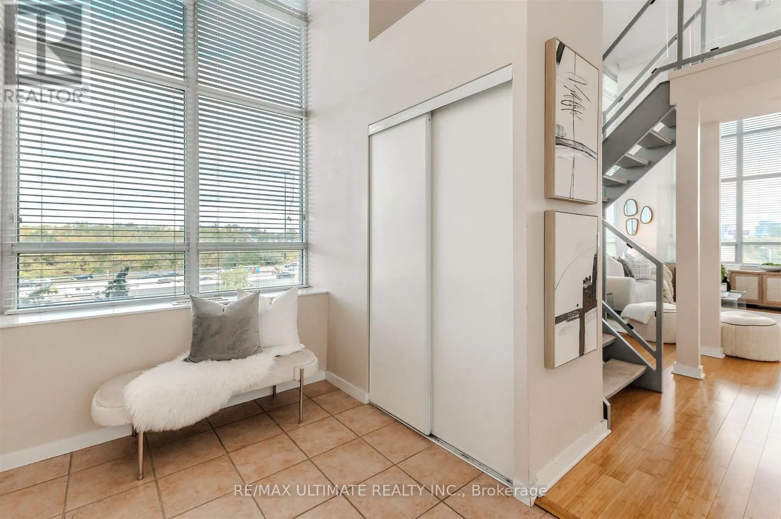 Cross Streets: Lakeshore & Park Lawn. ** Directions: South of QEW/Gardiner Expy off Royal York Rd. Seldom available 2-storey corner loft at Mystic Pointe. Approx. 1,000 square feet. Spacious & bright open concept design with 16 1/2 foot high ceilings. Large parking spot on lower level with adjacent 4 x 12 storage locker. Very affordable maintenance fee of $952/mth plus separately metered gas & hydro. Move-in condition. Seller can accommodate a quick closing. (id:27476)
