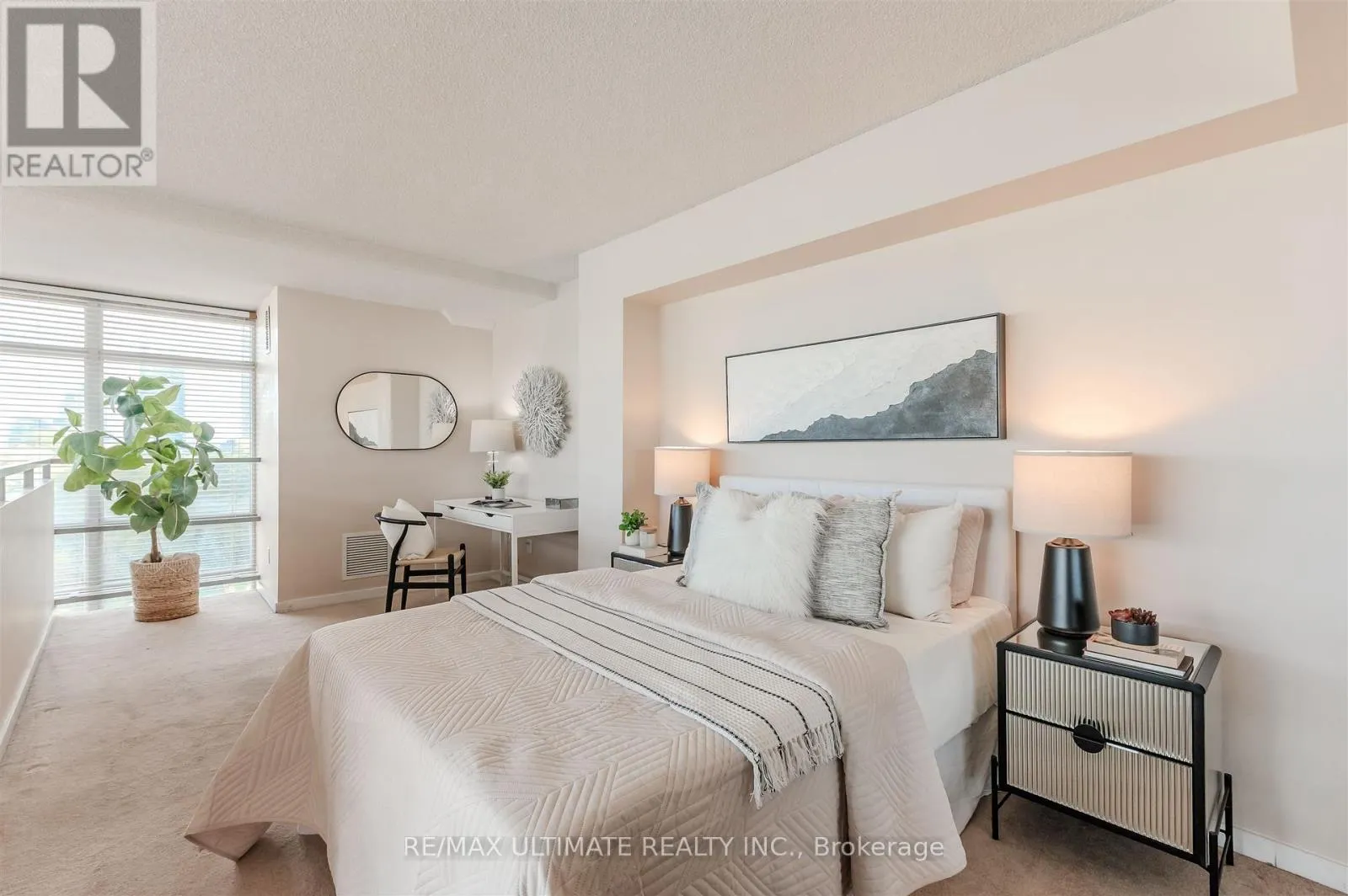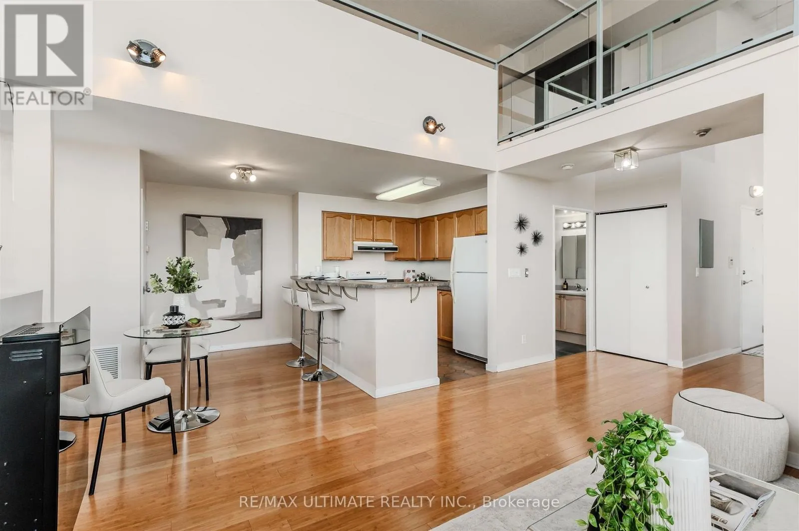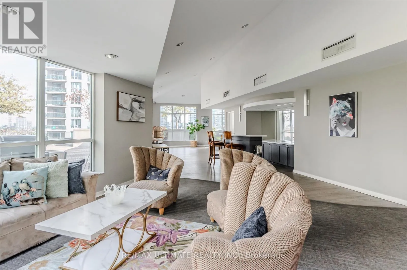 Cross Streets: Lakeshore & Park Lawn. ** Directions: South of QEW/Gardiner Expy off Royal York Rd. Seldom available 2-storey corner loft at Mystic Pointe. Approx. 1,000 square feet. Spacious & bright open concept design with 16 1/2 foot high ceilings. Large parking spot on lower level with adjacent 4 x 12 storage locker. Very affordable maintenance fee of $952/mth plus separately metered gas & hydro. Move-in condition. Seller can accommodate a quick closing. (id:27476)
