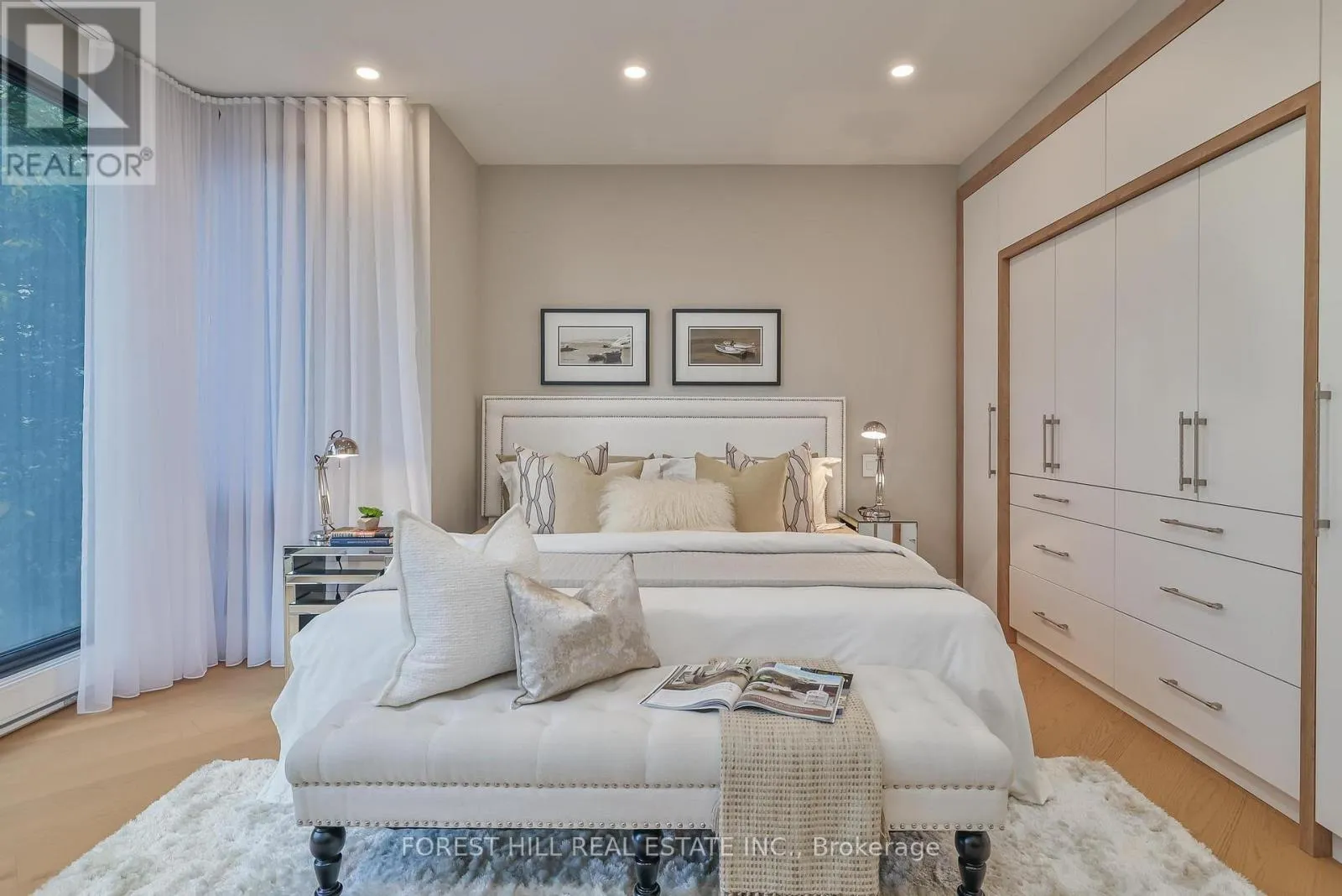 Spadina Rd / St. Clair Ave Nestled in a boutique residence of only 20 suites in prestigious Forest Hill Village in this meticulously renovated 1,750 SF corner suite. This turnkey residence showcases 2 spacious bedrooms & 2 bathrooms, boasting bespoke finishes that elevate everyday living. Bathed in natural light, the suite features floor-to-ceiling glass creating a bright and airy atmosphere. The sumptuous light wood floors add a sophisticated touch to every room. A striking fireplace with custom built-ins & integrated lighting, serves as the anchor of the main living space. The thoughtfully designed split floor plan offers a seamless flow ideal for entertaining. The chef's kitchen is equipped with high-end Miele appliances, a stunning quartz center island with overhead hood fan & ample cabinetry. Breathtaking views of the surrounding tree canopy. Retreat to the gracious primary suite, featuring custom built-in cabinetry & a spa-like ensuite, complete with double sinks, a spacious walk-in shower with bench, heated floors & heated towel rack & exquisite finishes that exude opulence. The generous second bedroom is the epitome of comfort & style, while the additional bathroom boasts a luxurious soaker tub, heated floors & towel rack. This impressive suite also includes a full laundry room with sink and extra storage. Completing the package are 2 parking spaces & large locker. Situated just steps away from The Village, Loblaws, boutique shops & fine dining options, as well as Winston Churchill Park & scenic ravines. Public transit is conveniently around the corner. This exceptional residence harmonizes exquisite design with an unbeatable location, setting the stage for an enviable lifestyle in one of Toronto's most sought-after neighbourhoods. (id:27476)
