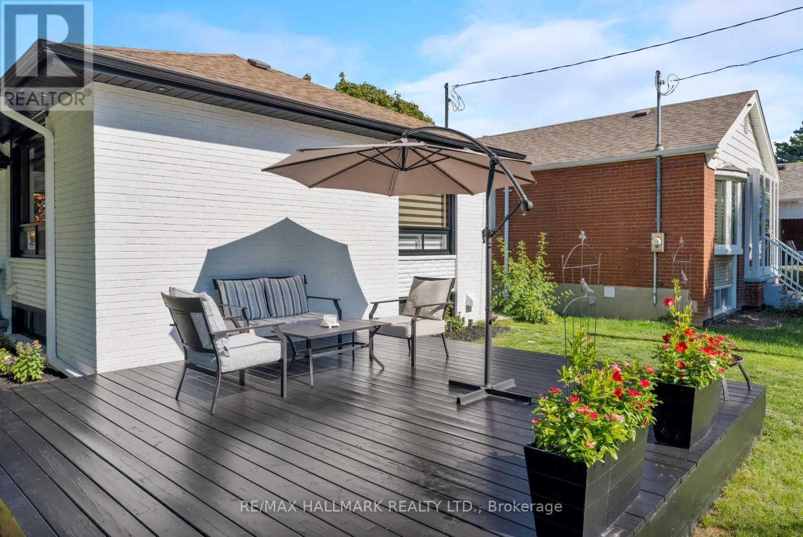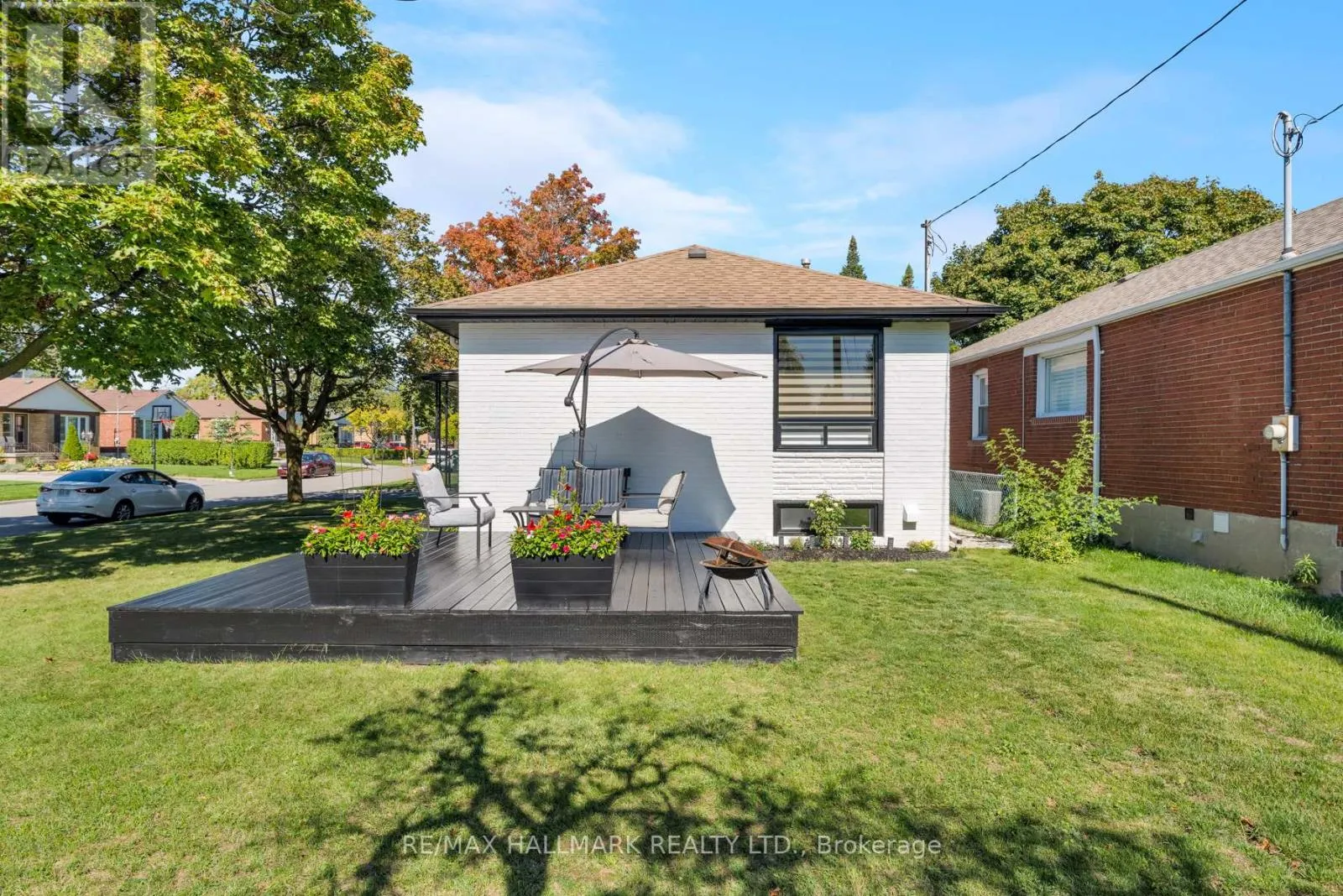 Cross Streets: Lawrence Ave & Warden Ave. ** Directions: South of Lawrence Ave & East of Warden Ave. *Brick bungalow thoughtfully updated *Finished Basement with separate entrance *Double Garage *Spacious Corner lot *Great location * Gorgeous curb appeal. Welcome to this rare 3+2 bedroom, 2 bath, solid brick bungalow, nestled in the heart of Wexford, on a quiet, family-friendly street. Surrounded by meticulously designed landscaping, this detached home boasts an extra-wide private driveway and an attached 2-car garage. The main floor offers a bright and airy open-concept living and dining area, a modern kitchen, and a welcoming foyer with a mirrored closet. Three spacious bedrooms with double closets and a 4-piece bath offer a comfortable layout designed for modern living. The finished and spacious basement is ideal for an extended family, nanny quarters, or home office. It offers a separate side entrance, second kitchen, large rec room with a wood fireplace, two additional bedrooms with closets, a 3-piece bath, and a laundry with sink and storage. Enjoy outdoor living on the large front porch with a glass railing, spacious side deck, and the fully fenced and private side yard. Close to parks, schools, shopping, Costco, and public transit. Don't miss this fabulous home in a high-demand, family-friendly neighborhood! (id:27476)
