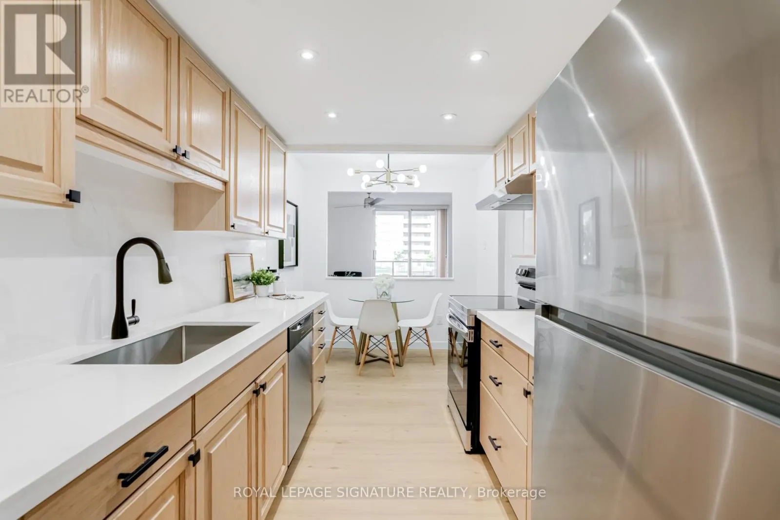 Cross Streets: Warden Ave & Finch Ave. ** Directions: North on Warden and Bridlewood. Welcome To This Newly Renovated Bright And Well-Appointed 2+Den, 2-Bath Suite In The Highly Sought-After Bridletowne 1 By Tridel. Featuring A Generous, Functional Layout With Large Principal Rooms And A Walk-Out To Two Balconies. Freshly Painted, Updated Lighting & Fixtures, New Wide Plank White Oak Vinyl Flooring Throughout, New Countertops, Backsplash, Sink, Faucet & Stainless Steel Appliances. This Home Offers An Abundance Of Natural Light And A Wonderful Sense Of Space. The Den Provides Excellent Flexibility, Perfect As A Home Office Or Living Room If Desired. The Primary Bedroom Includes A Walk-In Closet And Private Ensuite, While The Second Bedroom Is Conveniently Located Next To A Full Bath. With In-Suite Laundry, Ample Storage, And Access To A Well-Managed Building Close To Transit, Parks, Shopping, Restaurants, And Highway 401, This Suite Is Perfect For Anyone Downsizing Or Looking For Space On A Budget. (id:27476)