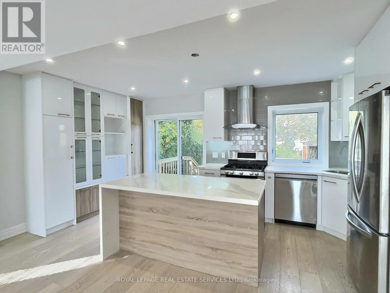 Cross Streets: Victoria Park/Ellesmere. ** Directions: North of Ellesmere. *Beautifully Renovated Detached Home in Prime Location* This stunning detached 1-1/2 storey home has been fully renovated from top to bottom, featuring new stucco exterior, a custom front porch with glass railing, and a brand-new driveway. The main floor has a bright, open-concept layout designed for modern living, including a 2 Pc Bathroom. The gourmet kitchen offers abundant pantry space, a waterfall island with quartz countertops and top-of-the-line appliances including gas stove. From the kitchen, step out onto a large deck overlooking a fully fenced, private backyard oasis surrounded by lilac and rose bushes, fruit trees, and perennial flowers, perfect for relaxing or entertaining. An elegant staircase with glass railing leads to the second floor, which features two bedrooms, a 4-piece bathroom, and a laundry room. The finished basement has a separate side entrance to a spacious one-bedroom apartment complete with a modern kitchen, 4-piece bathroom, laundry and storage room - ideal for extended family or extra income. Nestled on a quiet crescent, this home is just steps to Parkway Mall, TTC, schools, restaurants, and shopping, and only minutes to Highways 401 & 404, Costco, and Home Depot. A wonderful opportunity to live in this high demand location! (id:27476)