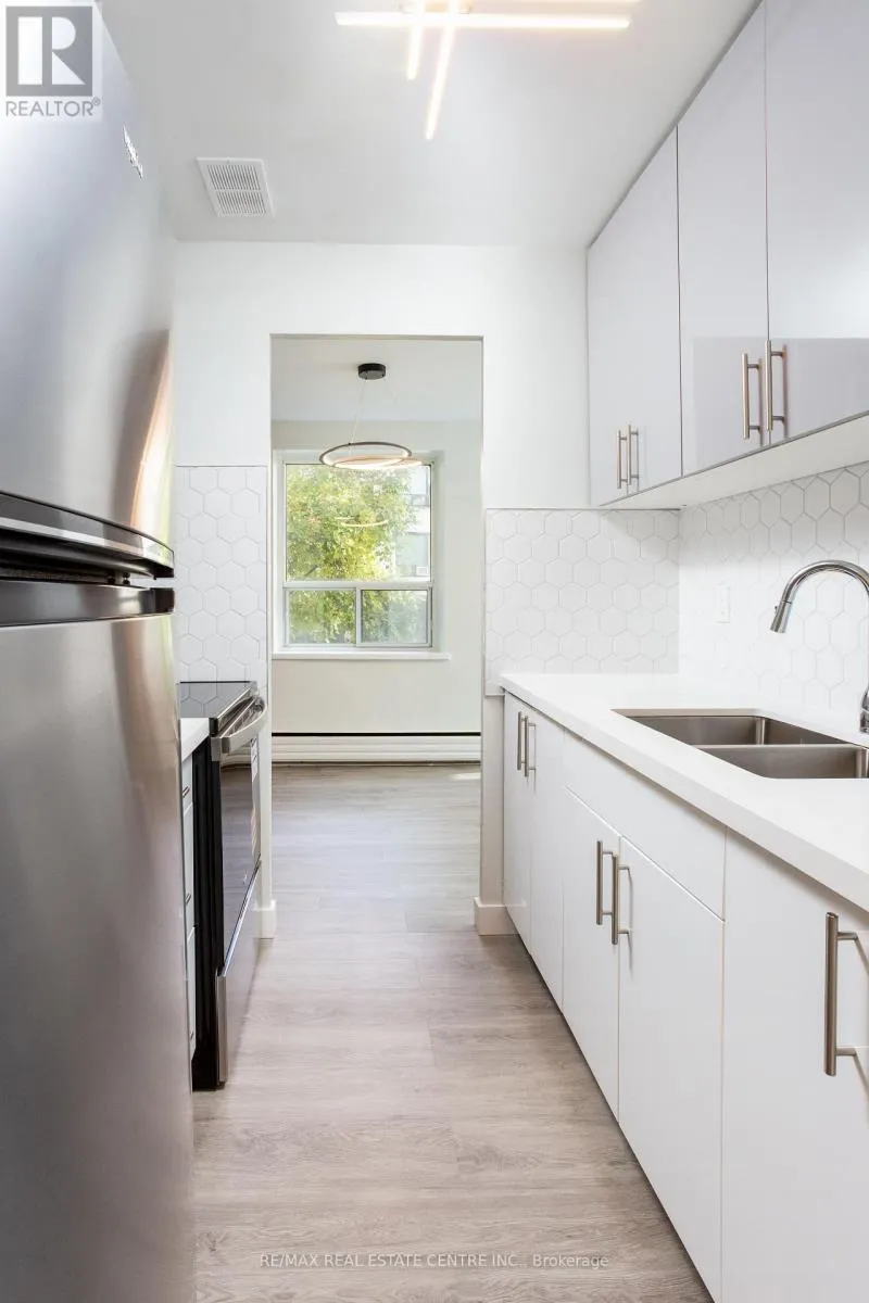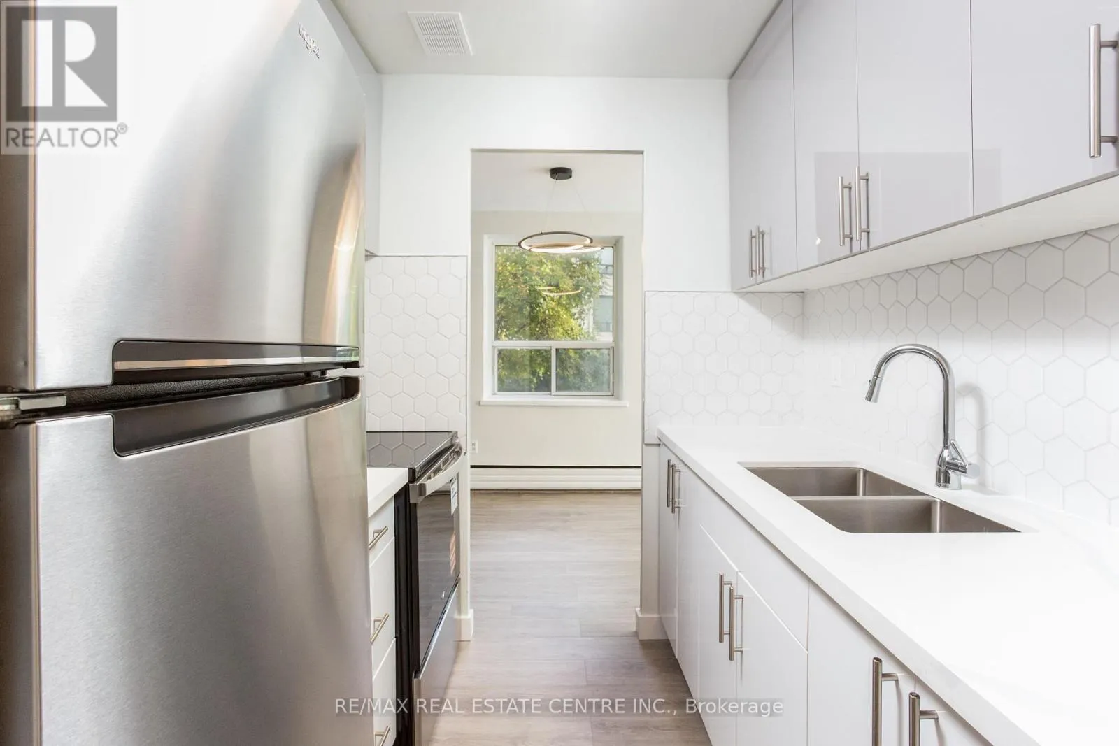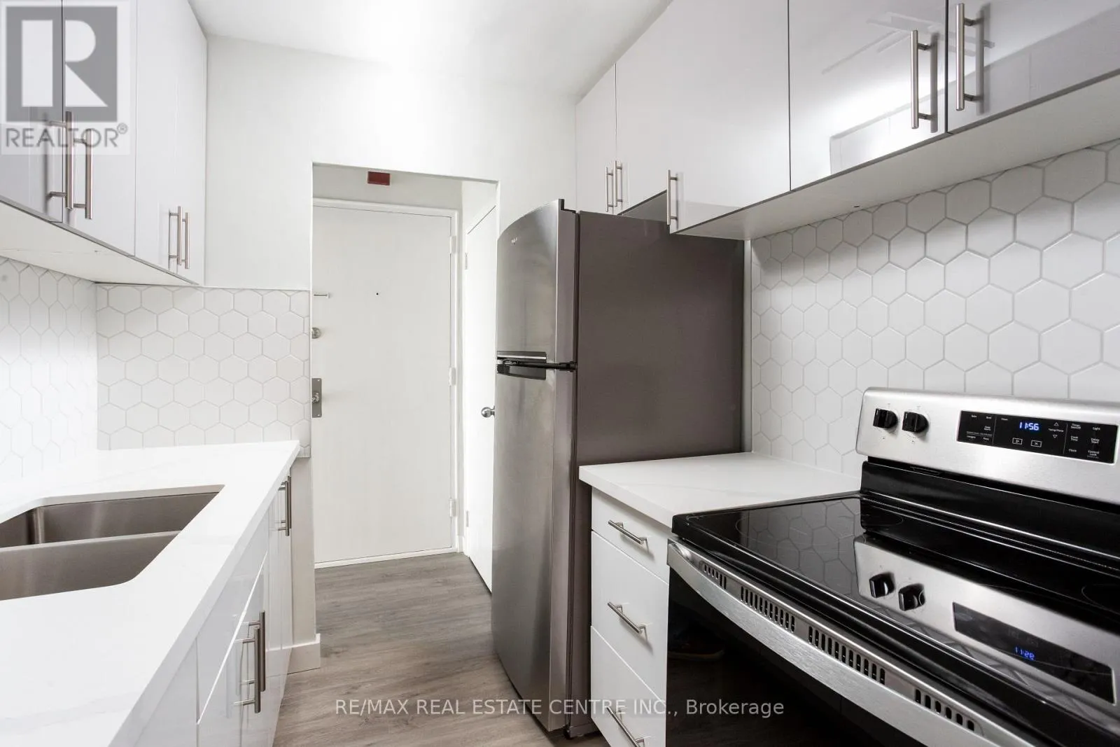 Parklawn & Queensway Experience elevated living in this fully renovated 2 bedroom luxurious apartment in the heart of Etobicoke, offering a serene view of lush greenery with a backdrop of distant condos, just steps from the lakefront. Located on the top floor of a well-maintained building, this spacious suite has been thoughtfully redesigned with contemporary elegance and modern functionality in mind. Step into a bright, open-concept living space featuring wide-plank flooring, large windows that flood the unit with natural light. The chef's kitchen is a standout, equipped with sleek stainless steel appliances, quartz countertops, custom cabinetry, and a stylish tile backsplash-perfect for entertaining or everyday living. Situated close to waterfront trails, parks, shopping, transit, and major highways, this unit combines serene living with urban convenience. Ideal for professionals or families seeking comfort and style. This Etobicoke area also has a great variety of shops and services, with a Sobeys only a 10-minute walk. Sherway Gardens provides ample brand shopping with everything from department stores to dining. Living in close proximity to the Gardiner Expressway as well as the GO Train and public transit, this community offers great accessibility and convenience. (id:27476)
