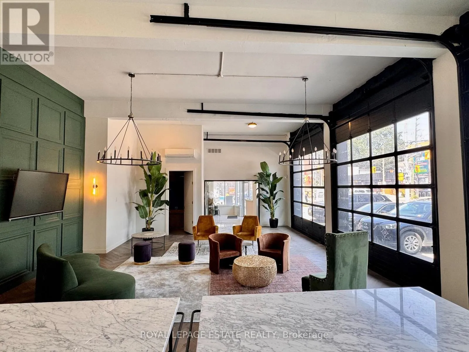 Cross Streets: Queen St E & Pape. ** Directions: S/W Corner of Queen St E and Pape Ave. Unbeatable street exposure at the SW corner of Queen St. East and Pape in the heart of Leslieville. This bright, flexible space features three large glass-panelled garage doors, perfect for indoor-outdoor retail concepts, a patio, extended retail space, or parking. Ideal for restaurants, cafes, brew pubs, marketplaces, garden centres, flower shops, fitness studios, photography/events, doggie daycares, and more. Landlord welcomes 5+5 year leases as well as shorter-term uses; a sale/demo clause applies only to leases longer than 5 years. Take advantage of this high-visibility location to grow your business. (id:27476)