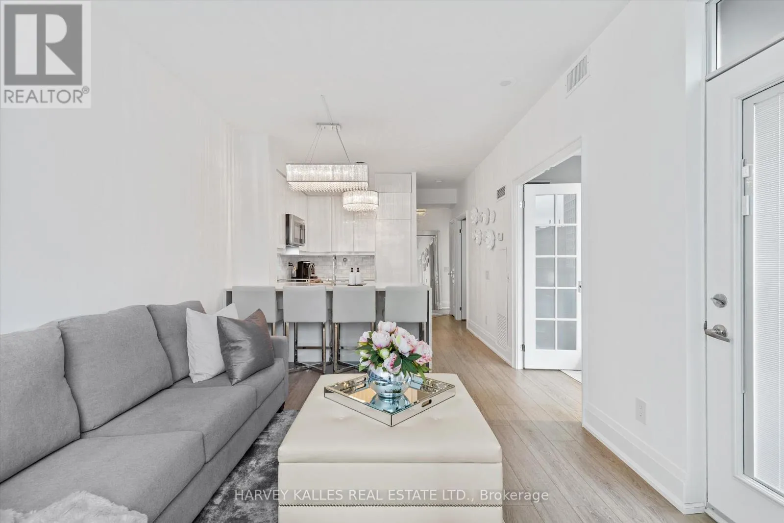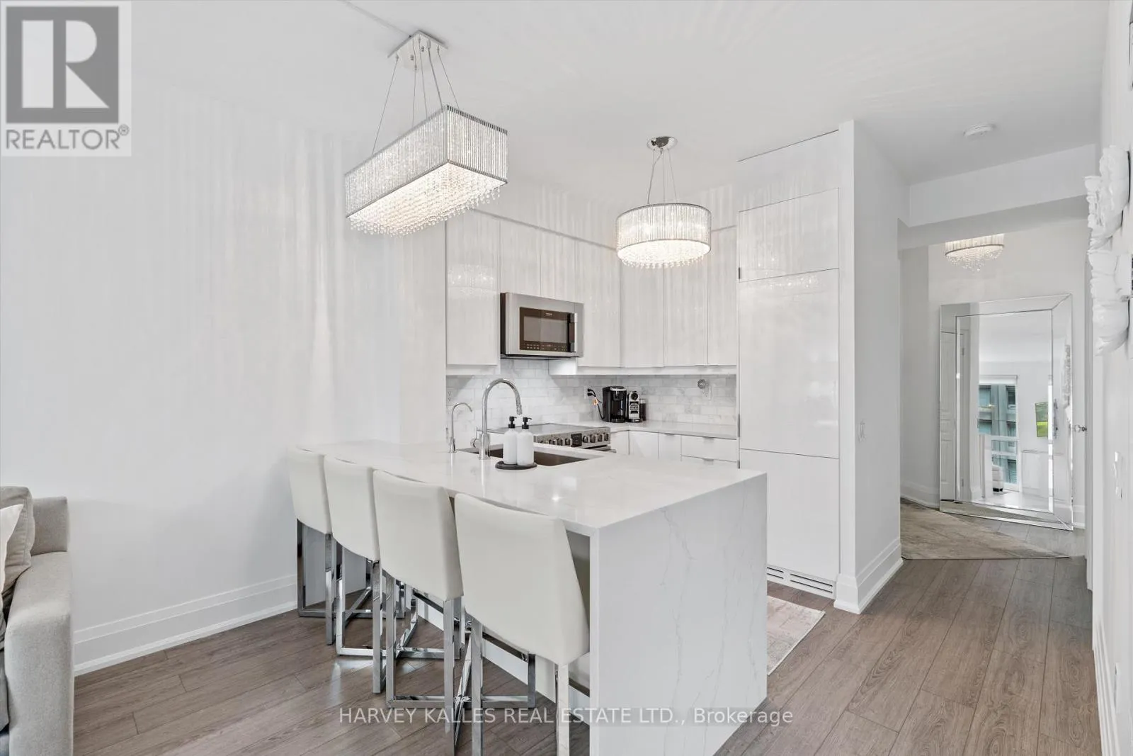 Bay/Bloor Welcome to Suite 1205 at the prestigious boutique building Elev'n 21! This spectacular, fully renovated condo has been completely reimagined back to the studs, featuring 9' smooth ceilings with pot lights, premium finishes, and custom furnishings throughout. Offering 1 spacious bedroom + large den with French doors & floor to ceiling windows (currently used as a second bedroom) and 1 stylishly upgraded bathroom, this suite is the epitome of turn-key luxury living. Enjoy stainless steel stove, built-in microwave, premium panelled fridge & dishwasher, reverse osmosis water system, quartz countertop with waterfall feature on island, stacked washer & dryer in-suite laundry, and a private balcony.This unique offering comes fully furnished by Kimberly Capone Interiors & Direct Interiors, including: Queen bed (c/w mattress) with built-in storage & double bed (w/o mattress) with built-in storage; Custom sectional sofa with pull-out queen mattress, wall mounted TV & custom built-in corner cabinetry; Stylish storage ottoman, 4 bar stools, reverse osmosis water system, large luxury decorative entry mirror; 2 kitchen chandeliers, 1 hallway chandelier & 2 wall sconces in den; Ceramic floor and wall tiled bathroom with quartz counter, built-in shower niche & glass shower door; Upgraded door handles throughout; Custom window coverings - fabric blinds; Balcony set with table & 2 chairs; 1 parking spot + locker included. Located in one of Toronto's most sought-after neighbourhoods with a Walk Score of 99 and Transit Score of 100... steps to Yorkville, U of T, TTC, shopping, dining, and more. Pride of ownership throughout - pristine, stylish, and truly turnkey! (id:27476)
