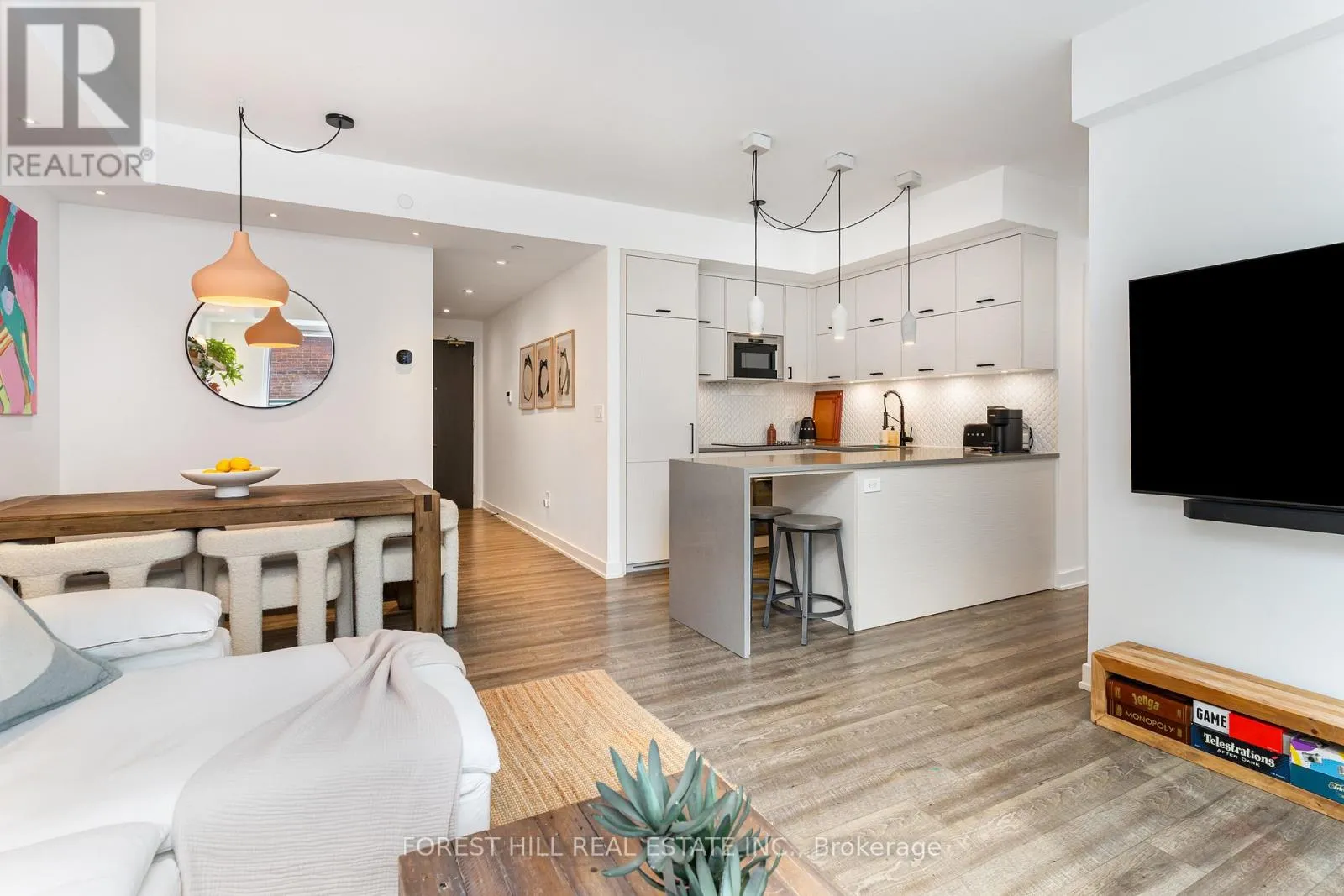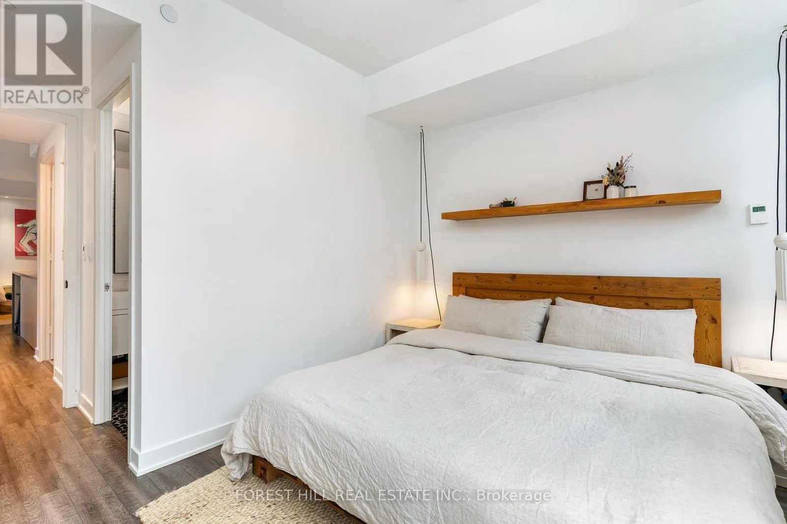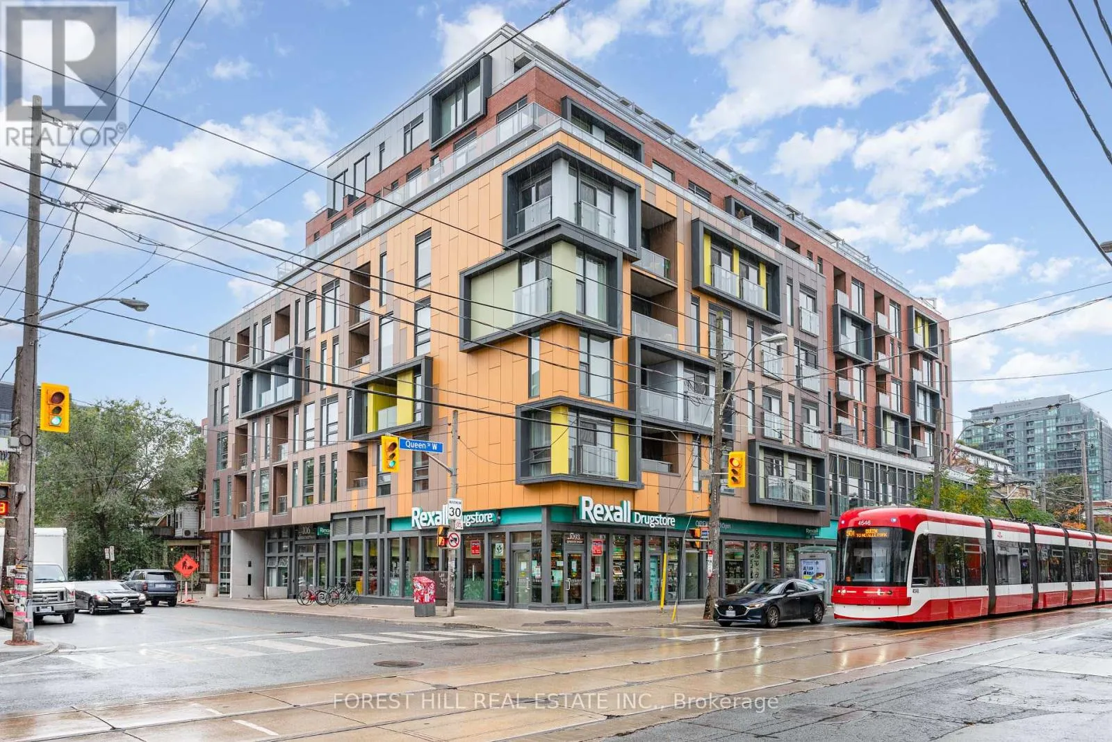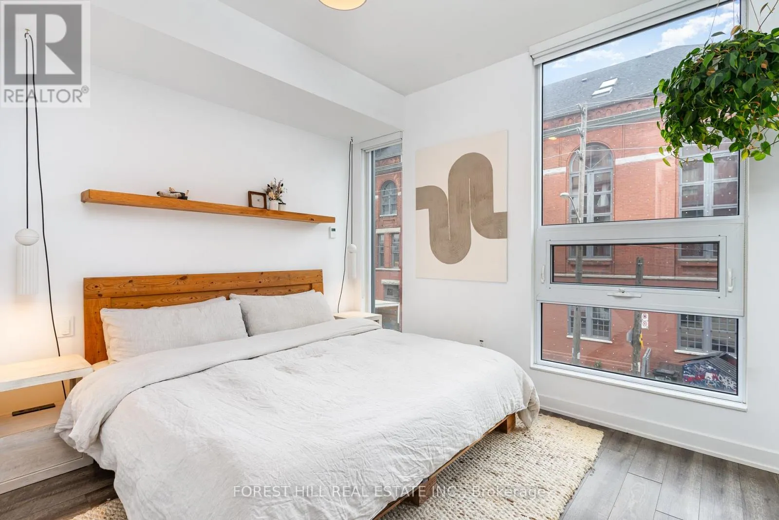 Cross Streets: Queen St / Dovercourt. ** Directions: -. This exceptional corner suite in the boutique Ten93 Queen West building offers a refined urban living experience in the heart of Trinity Bellwoods. Spanning over 1,000 square feet, the open-concept layout features 9-foot ceilings, 13 pot lights, hardwood floors, and expansive floor-to-ceiling windows that fill the space with natural light. The designer kitchen is equipped with built-in appliances, quartz countertops, and a stunning waterfall island-perfect for entertaining. Both spacious bedrooms feature custom closets, while the main living area flows seamlessly to a private balcony, creating a stylish and inviting retreat. Ideally located just steps from Queen Street West, TTC transit, Trinity Bellwoods Park, top-rated schools, trendy boutiques, cafes, and vibrant nightlife, this residence offers the ultimate in convenience and lifestyle. Building amenities include concierge service, a fitness center, bike storage, a party room, visitor parking, and a rooftop patio with panoramic city views and barbecue facilities. A rare opportunity to experience sophisticated city living at its finest! (id:27476)