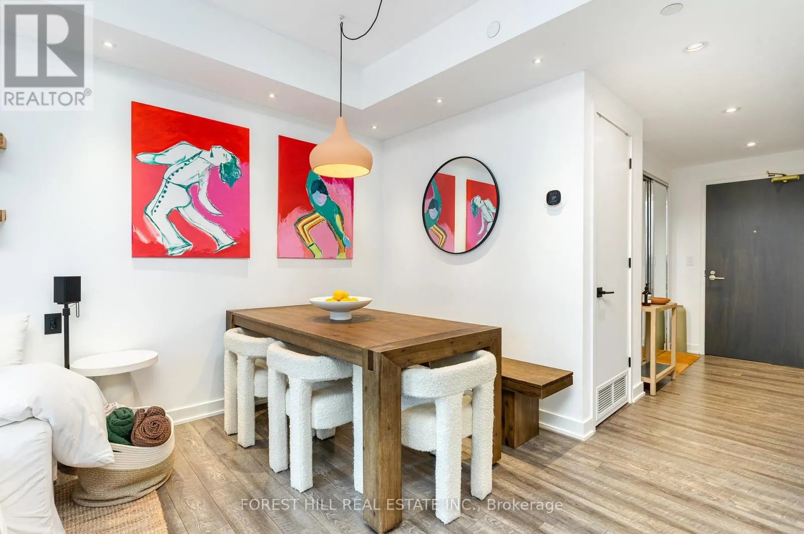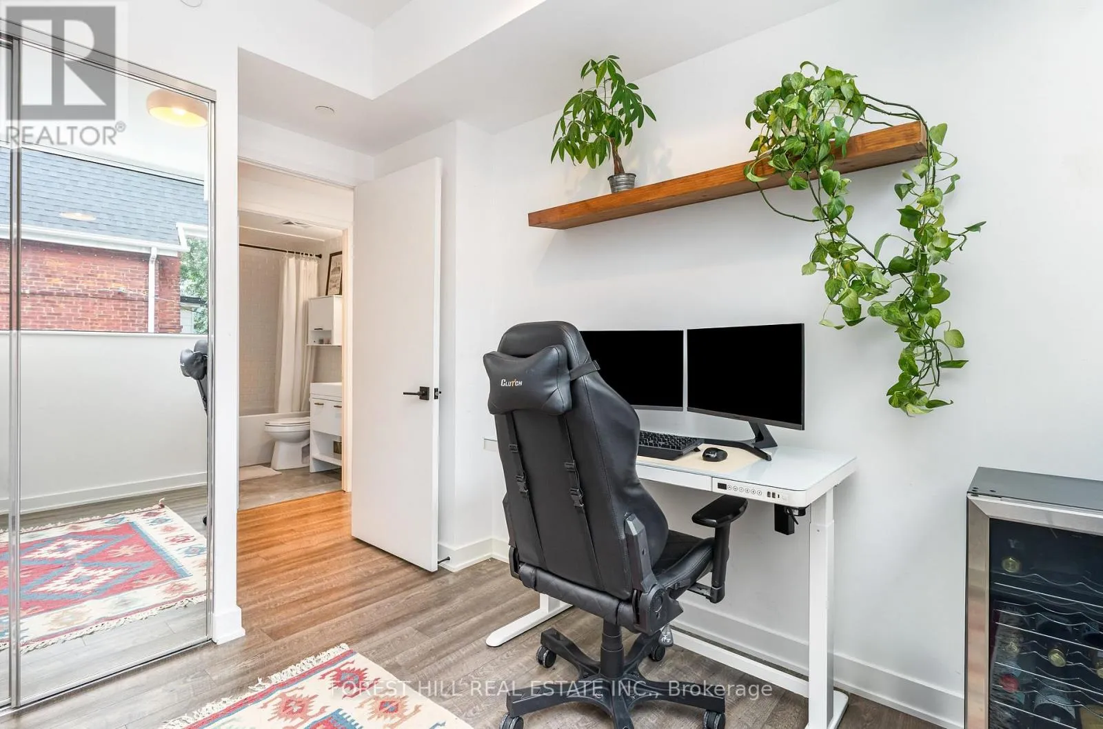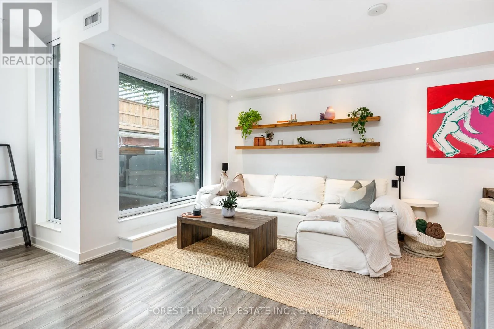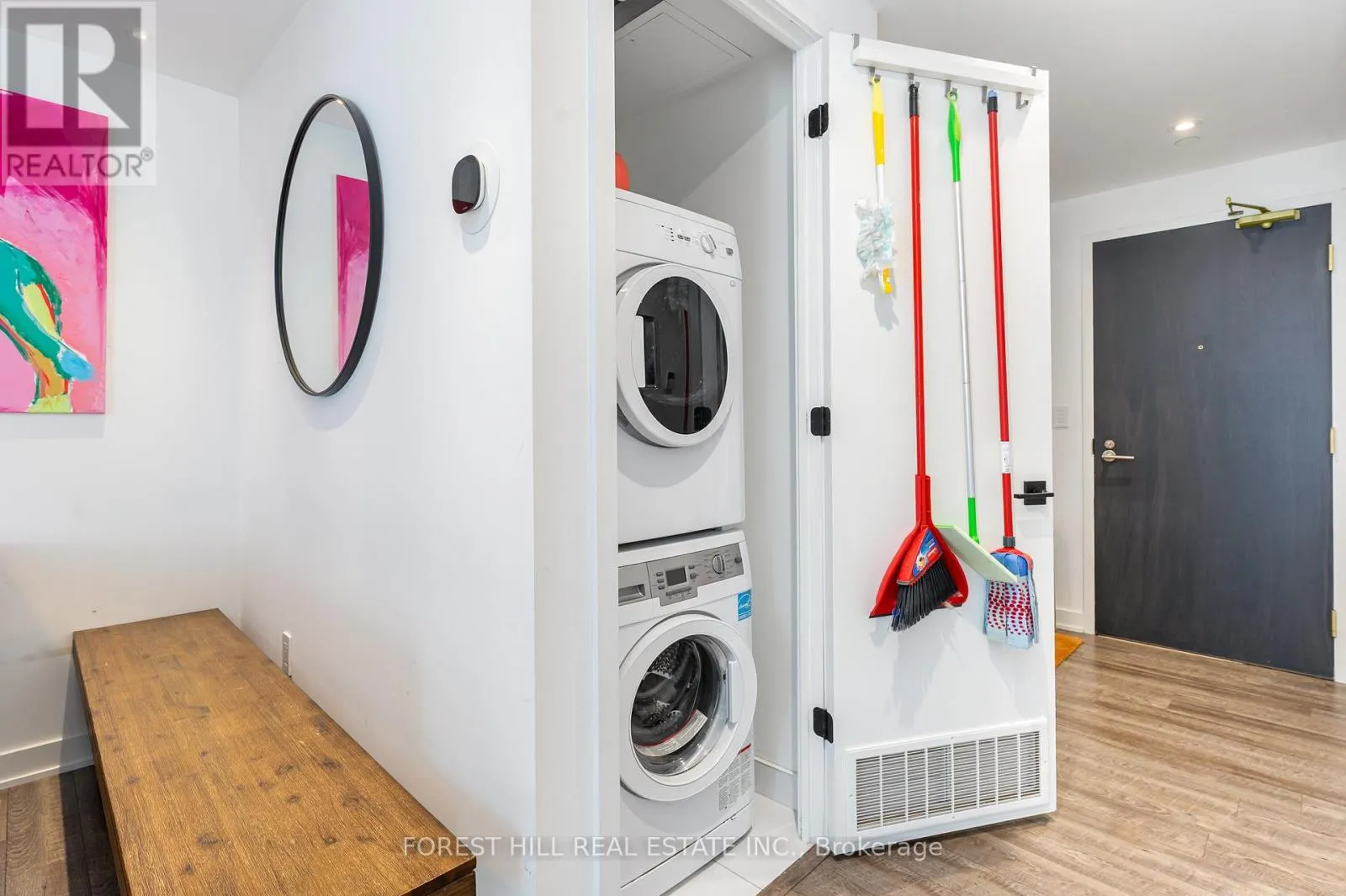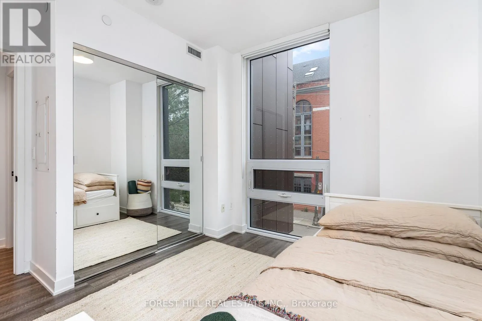 Cross Streets: Queen St / Dovercourt. ** Directions: -. This exceptional corner suite in the boutique Ten93 Queen West building offers a refined urban living experience in the heart of Trinity Bellwoods. Spanning over 1,000 square feet, the open-concept layout features 9-foot ceilings, 13 pot lights, hardwood floors, and expansive floor-to-ceiling windows that fill the space with natural light. The designer kitchen is equipped with built-in appliances, quartz countertops, and a stunning waterfall island-perfect for entertaining. Both spacious bedrooms feature custom closets, while the main living area flows seamlessly to a private balcony, creating a stylish and inviting retreat. Ideally located just steps from Queen Street West, TTC transit, Trinity Bellwoods Park, top-rated schools, trendy boutiques, cafes, and vibrant nightlife, this residence offers the ultimate in convenience and lifestyle. Building amenities include concierge service, a fitness center, bike storage, a party room, visitor parking, and a rooftop patio with panoramic city views and barbecue facilities. A rare opportunity to experience sophisticated city living at its finest! (id:27476)