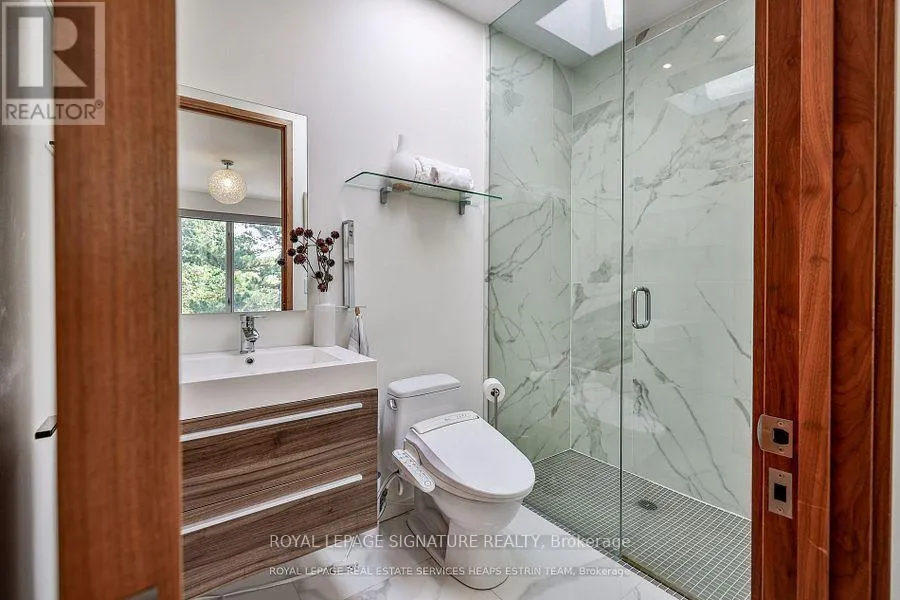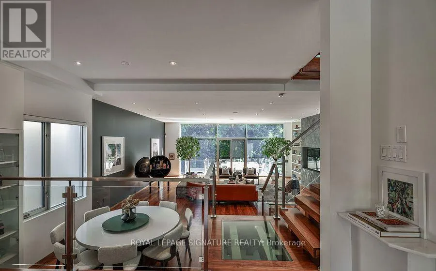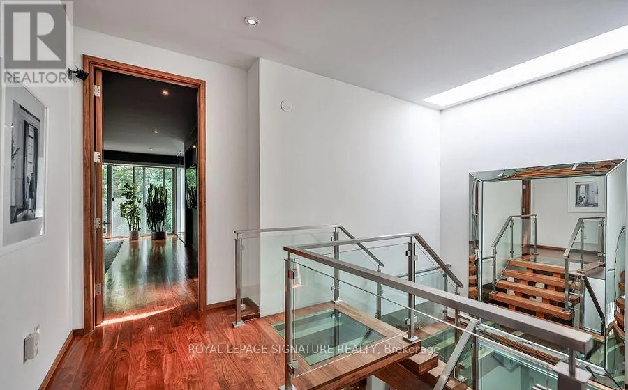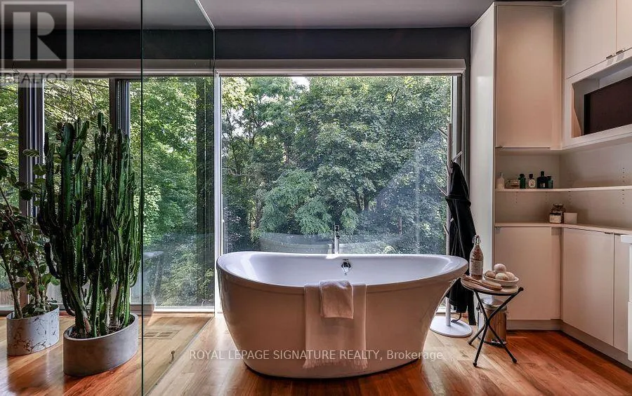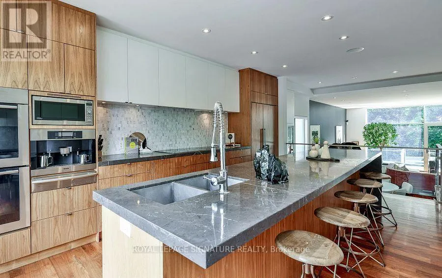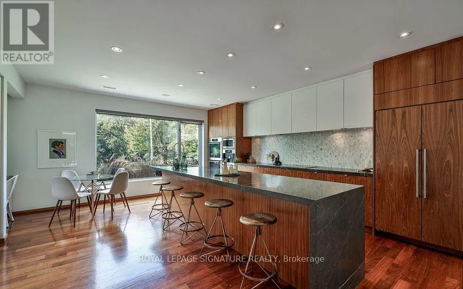 Nesbitt Dr & Governors Bridge Modern sophistication meets natural beauty in this exceptional detached home, perfectly situated in the prestigious Governor's Bridge community. Nestled on a tranquil ravine lot surrounded by mature trees, this home offers a seamless connection to nature while delivering striking contemporary design. Walls of windows and soaring ceilings flood the open-concept interior with natural light, seamlessly blending indoor living with the beauty of nature.The show stopping chefs kitchen boasts a striking oversized island, high-end integrated appliances and thoughtful storage, making it perfect for both everyday living and entertaining. Unique design details, including glass-floor stair landings and built-in speakers, bring a bold, modern edge to the space. Upstairs the serene primary suite offers sweeping ravine views, a generous walk-in closet, and a spa-inspired ensuite featuring a deep soaker tub and a steam shower your private retreat at the end of the day.The lower level includes heat floors, a home gym, recreation room, and two additional bedrooms, perfect for guests or family.This ravine retreat blends tranquility and convenience, offering a built-in garage and private driveway with parking for six vehicles, all just minutes from the citys best amenities. (id:27476)