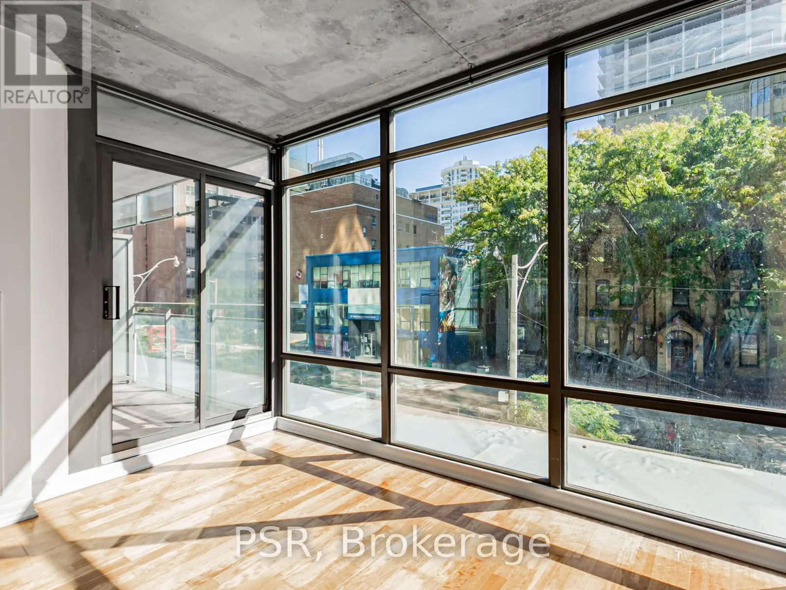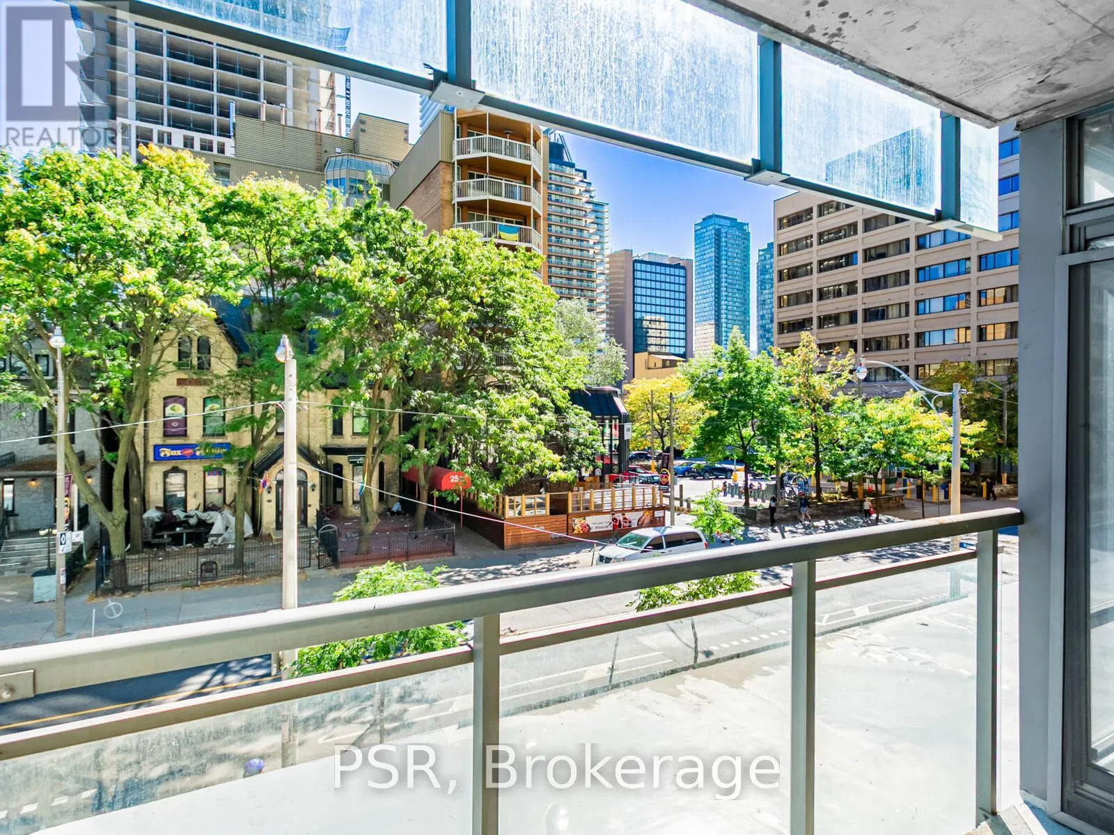 Wellesley and Yonge Located on Wellesley Street between Yonge and Church, this thoughtfully designed 1-bedroom + den suite at 22 Condominiums offers 597 sq ft of bright, open-concept living in a sleek, modern building known for its striking glass exterior and prominent balconies. Inside, you'll find floor-to-ceiling windows that flood the space with natural light, hardwood flooring, and exposed concrete details that add a contemporary edge. The modern kitchen features brand-new quartz countertops, stylish cabinetry, and stainless steel appliances, blending functionality with refined design. The spacious bedroom includes a large closet, while the versatile den is ideal for a home office or guest area. Step out onto your deep private balcony and enjoy the energy of the Church Street Corridor below. Residents at 22 Condominiums enjoy a rooftop lounge with shaded seating and an oversized hot tub, along with a fitness centre, party room, and concierge service. Located just steps from Wellesley Station, Yorkville, U of T, and Toronto's best shopping, dining, and nightlife, this suite offers the perfect balance of urban convenience and modern comfort. (id:27476)
