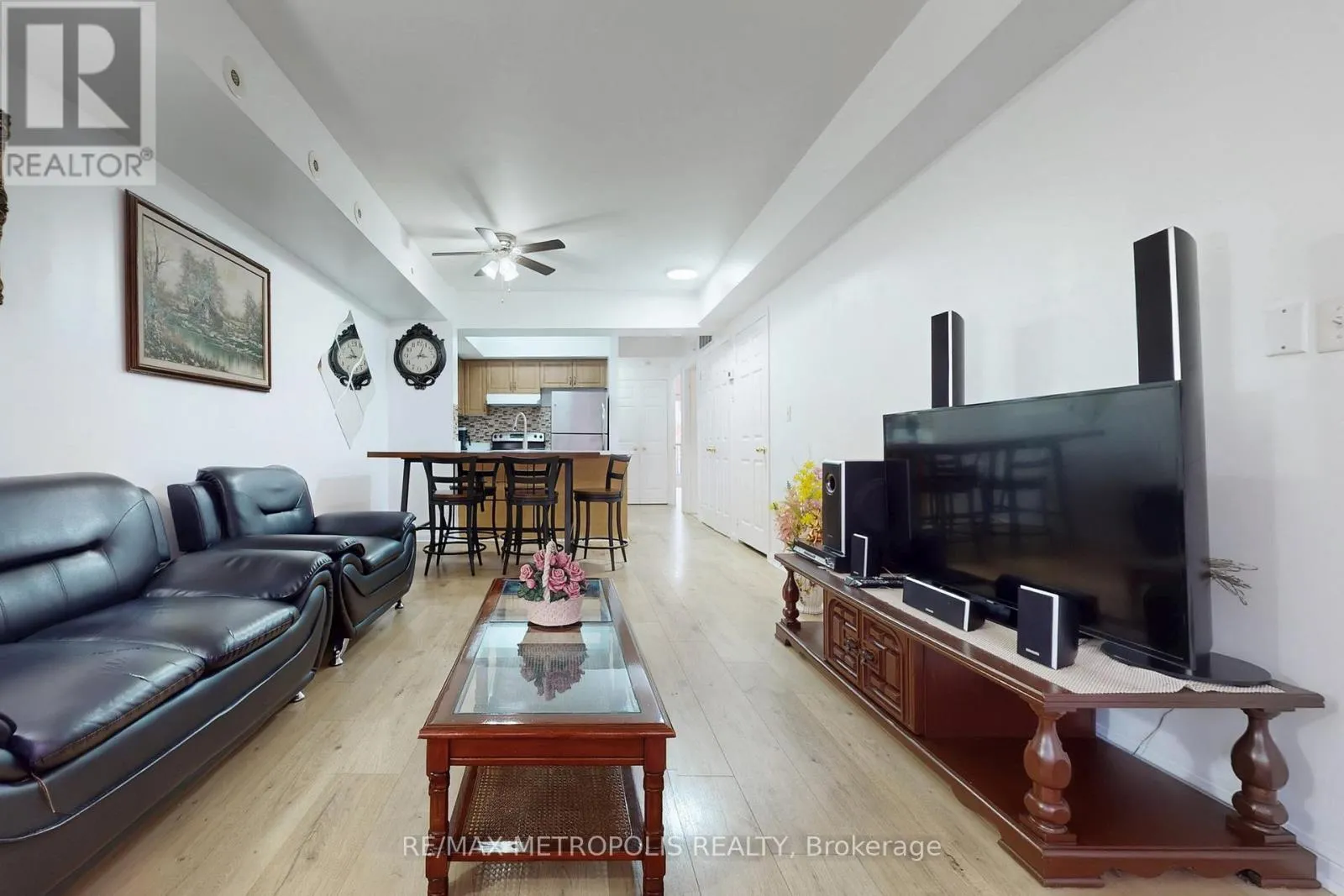 Finch/Islington Fabulous Corner-End Unit on a Corner Lot in Harmony Village! *Bright, well-maintained 2-bedroom, 1-bath unit with 773 sq. ft. of functional living space *Modern open-concept layout with plenty of natural light *Freshly painted with new laminate floors and quartz countertop *Ensuite laundry for added convenience * Open terraces at front and back plus a private balcony for relaxing or entertaining * Includes parking and locker for extra value and storage *Prime location near 24-hour TTC, upcoming Finch West LRT (2025), Costco, schools, parks, Humber River trails, and everyday amenities nearby. Come and see! (id:27476)