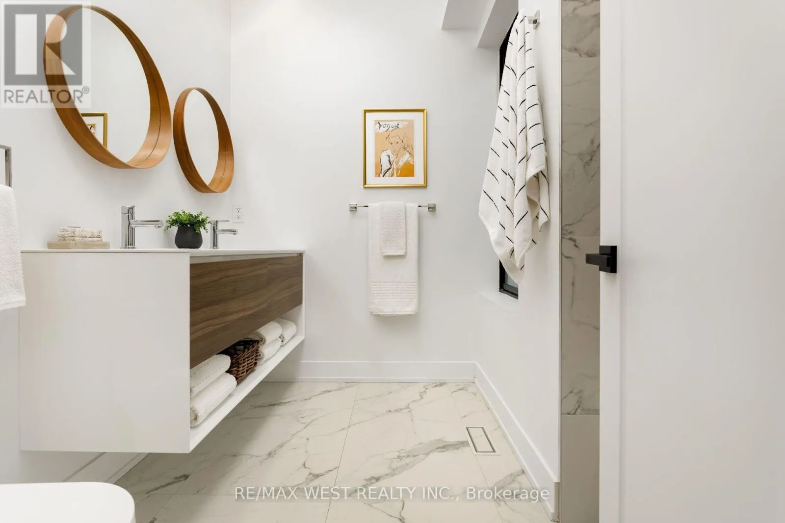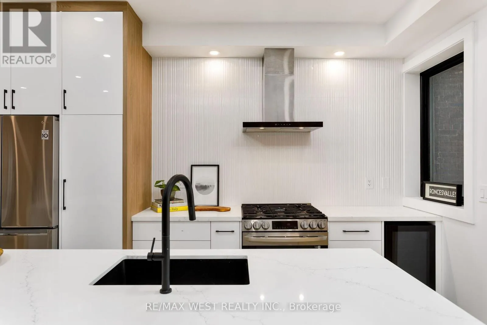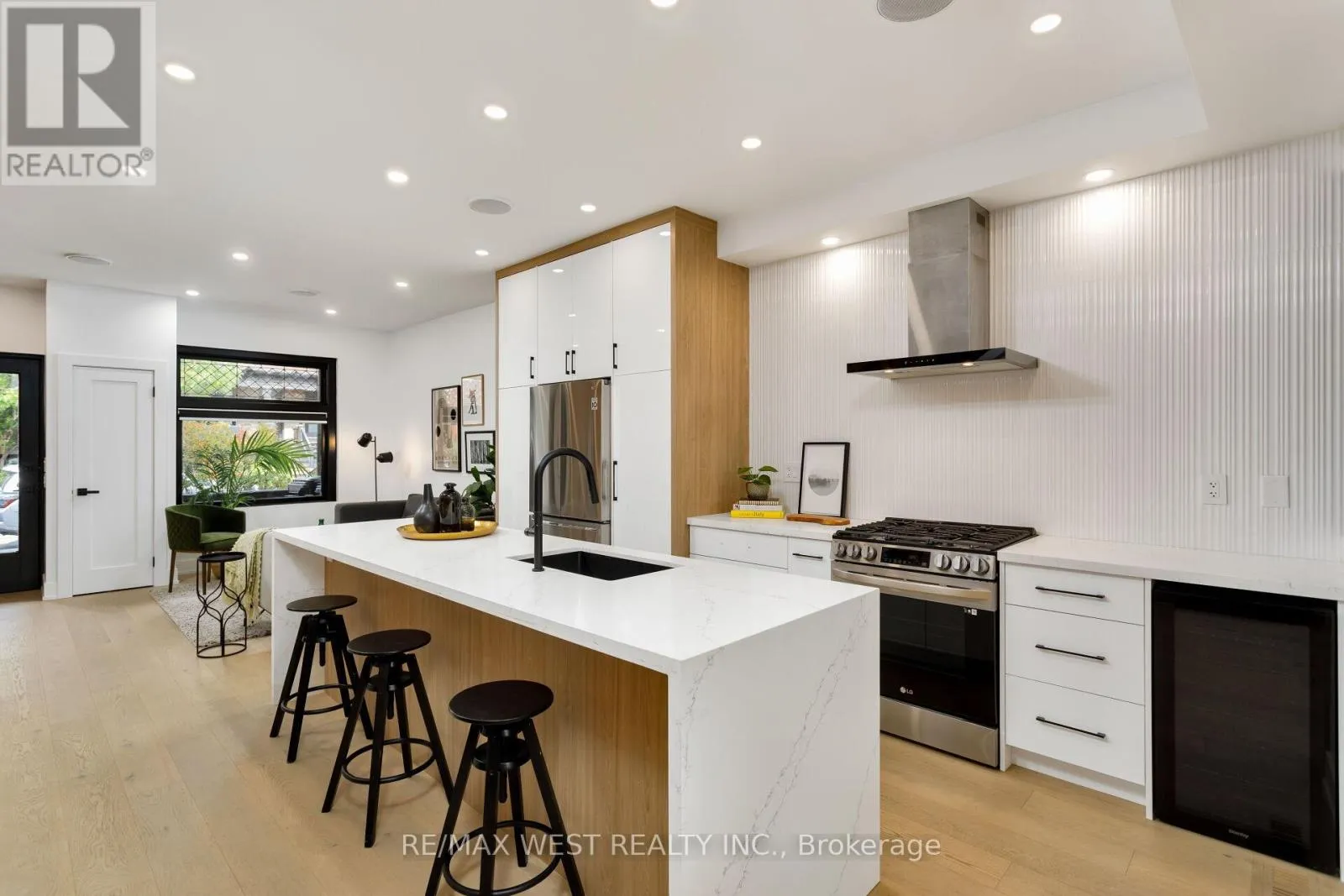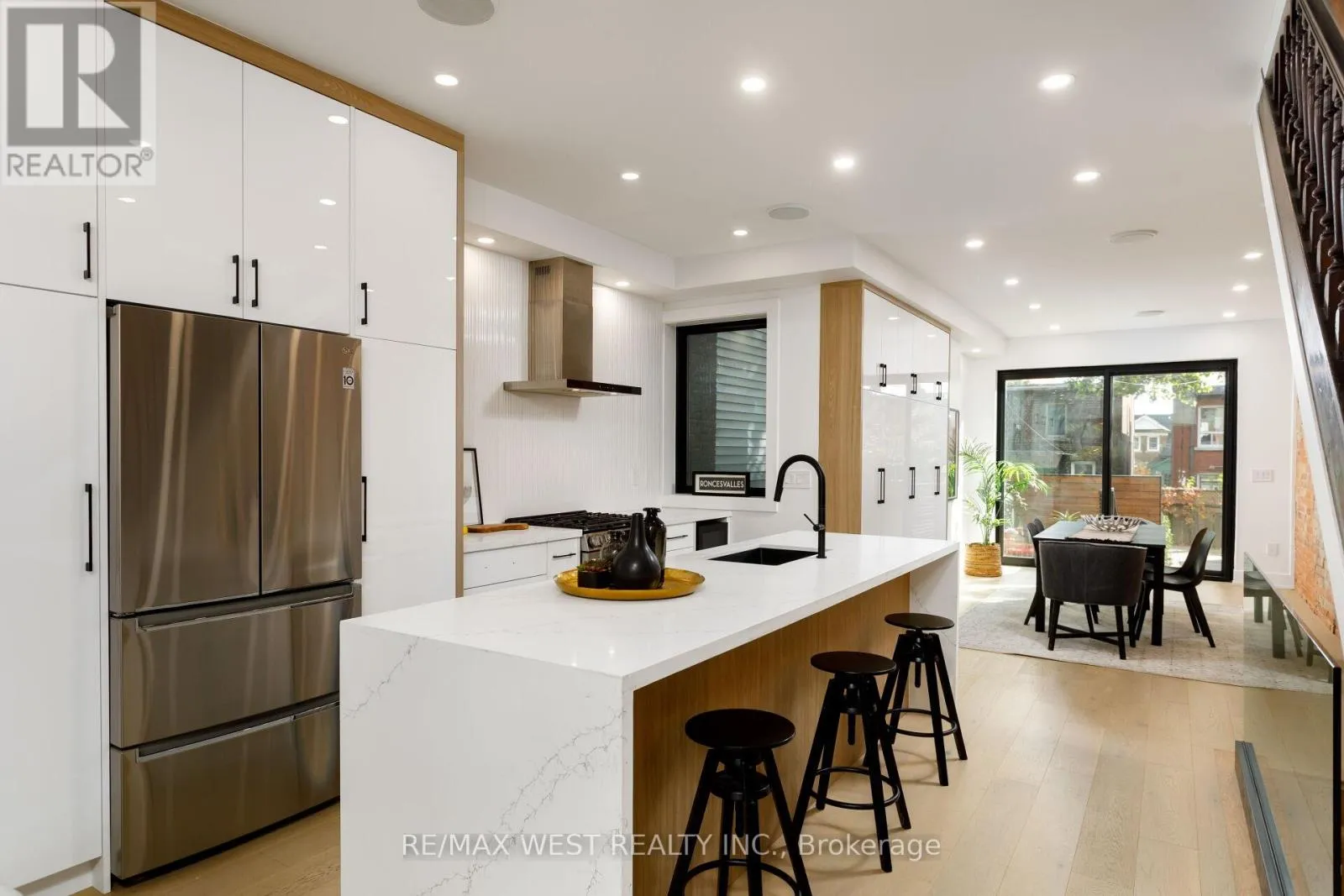 Queen & Roncesvalles Discover this extra-wide, fully renovated two-storey townhouse perfectly situated where High Park, Roncesvalles, and Parkdale come together - one of Toronto's most vibrant and connected neighborhood's. Completely rebuilt back to the brick in 2022, this 3-bedroom, 2-bathroom home blends character and comfort with quality finishes throughout. Enjoy hardwood flooring, foam insulation from top to bottom, and a bright, open layout filled with natural light from several skylights. The stylish custom kitchen features quartz countertops, modern cabinetry, and space designed for real life and entertaining. Both bathrooms offer heated floors, and the home has been underpinned for added stability and function. Additional updates include Pella windows, a new HVAC system (2022), and a new roof (2022) - ensuring peace of mind for years to come. Private parking for 1-2 cars, plus unbeatable walkability to shops, restaurants, High Park, the lake, and the boardwalk. With easy highway access and excellent transit, this home offers the perfect balance of convenience and community living. (id:27476)