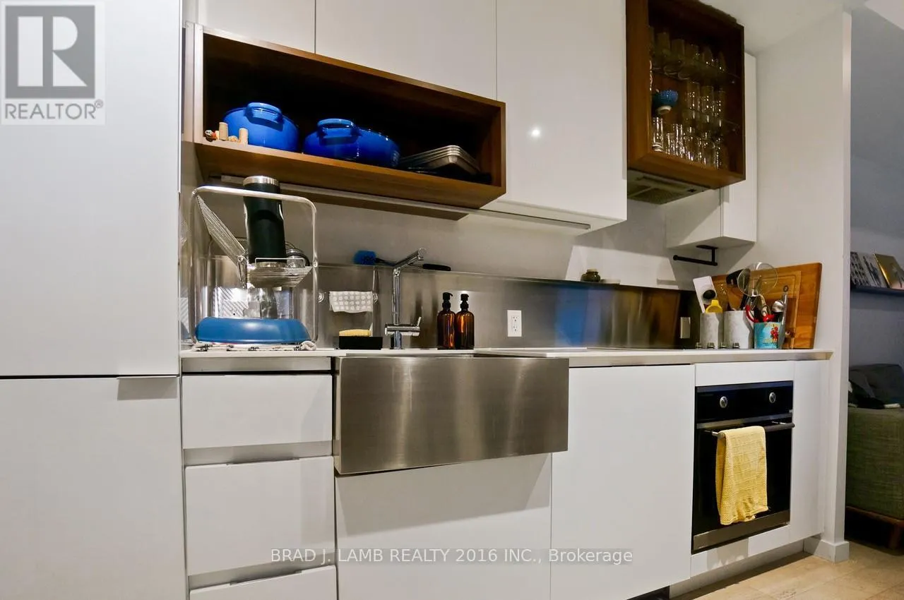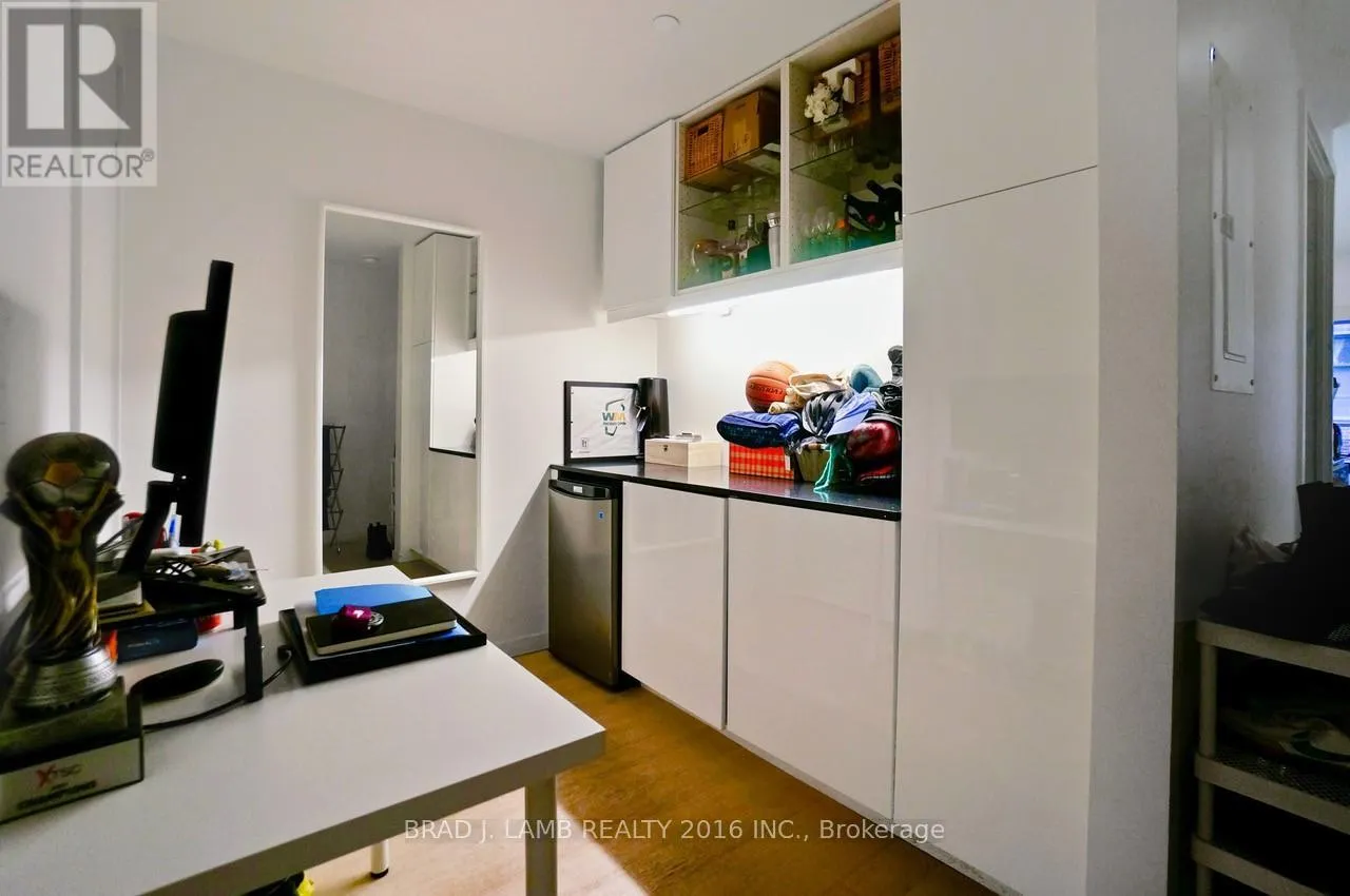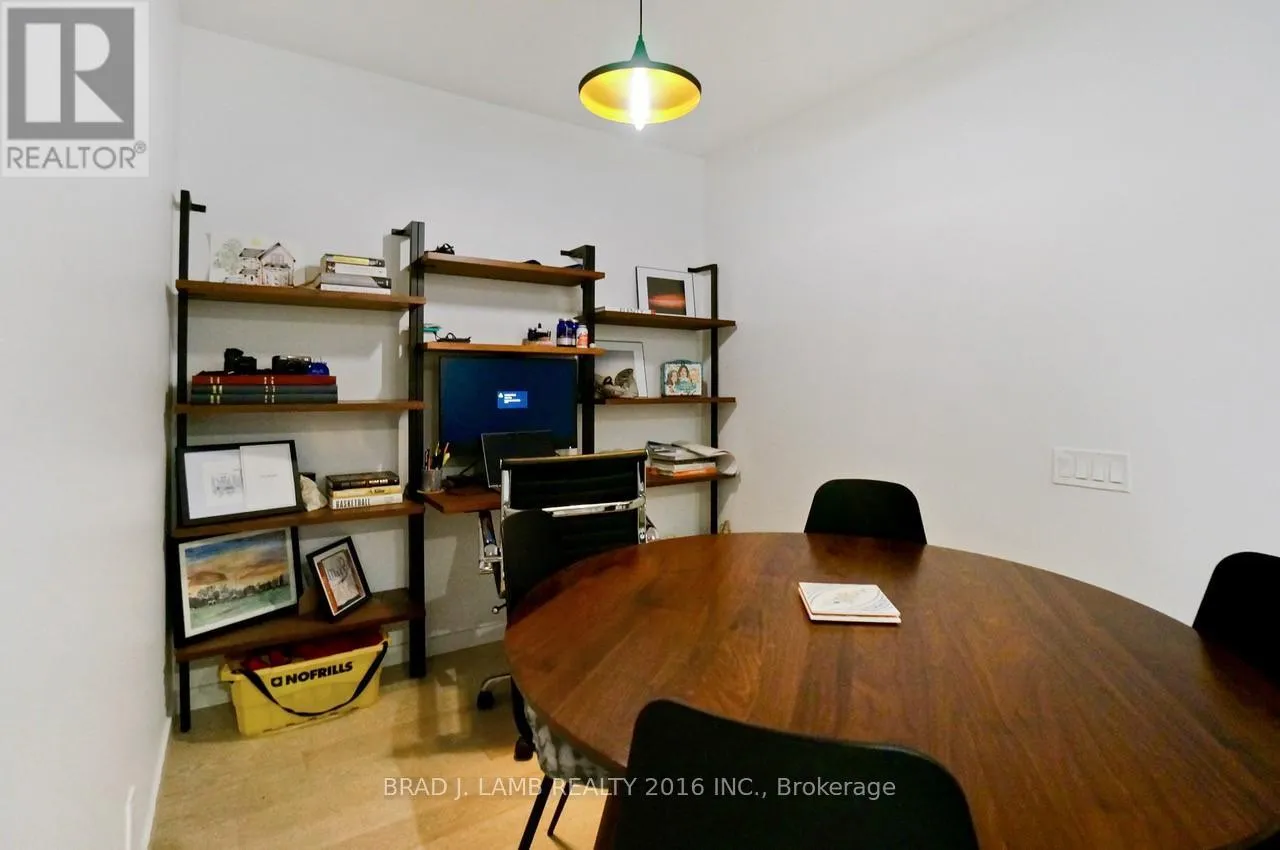 Dundas & Sorauren Step into your own urban paradise in this stunning 1 bedroom + large den + large balcony, where luxury meets contemporary living. Almost 700 sqft interior. Located in the heart of Roncesvalles Village just steps to Sorauren Ave Park and a few blocks from iconic High Park. Enjoy all the charm of Roncy cafes, restos and locally owned shops. 1 bedroom, large den, 1 bathroom, large modern kitchen with extended custom island. Extra dining room area could be 2nd den. Large den with built-in custom desk and lots of storage spaces plus mini-fridge. New full-size washer and dryer. Custom closets cater to your organizational needs with tons of storage space. Prime underground parking spot just steps from the elevator and right beside the exit. Large storage locker included. (id:27476)