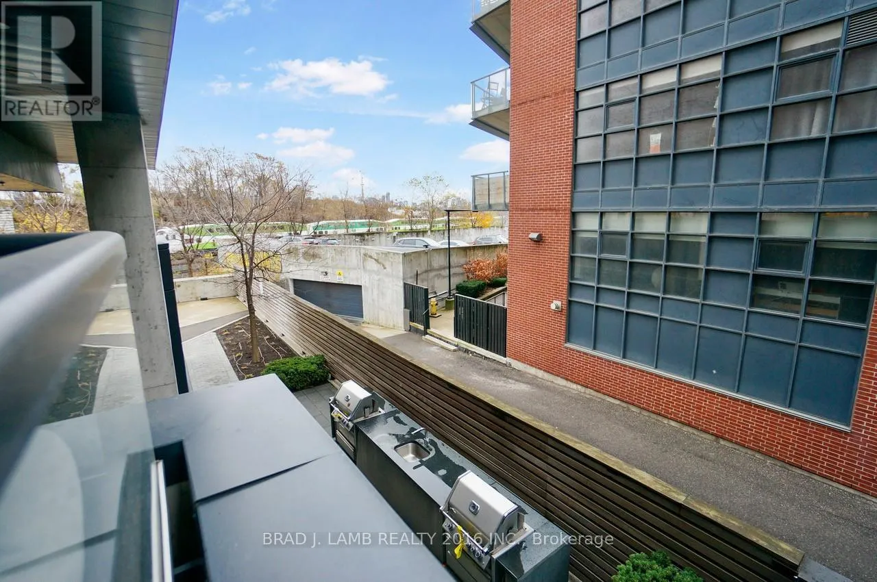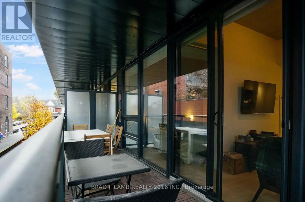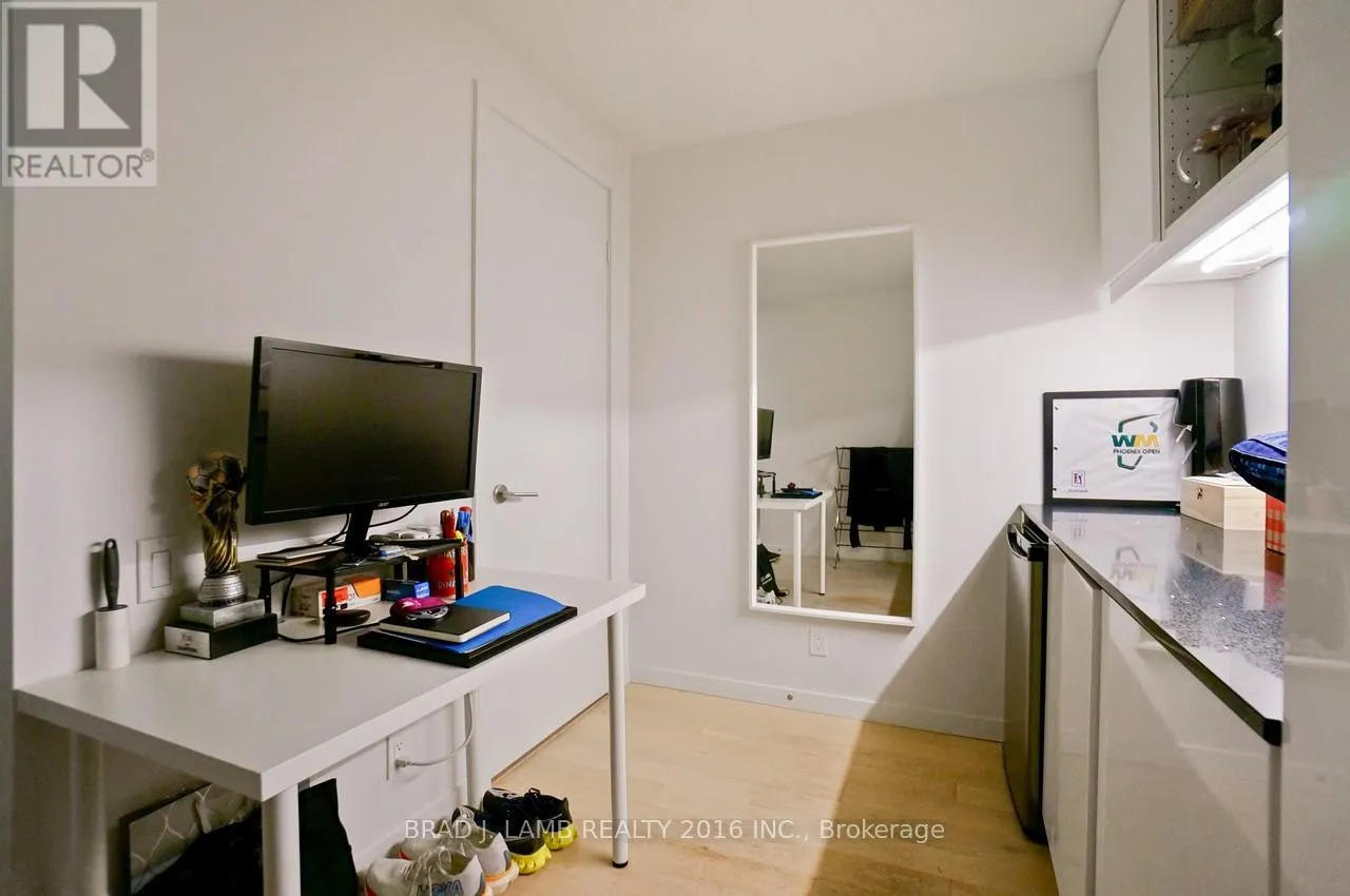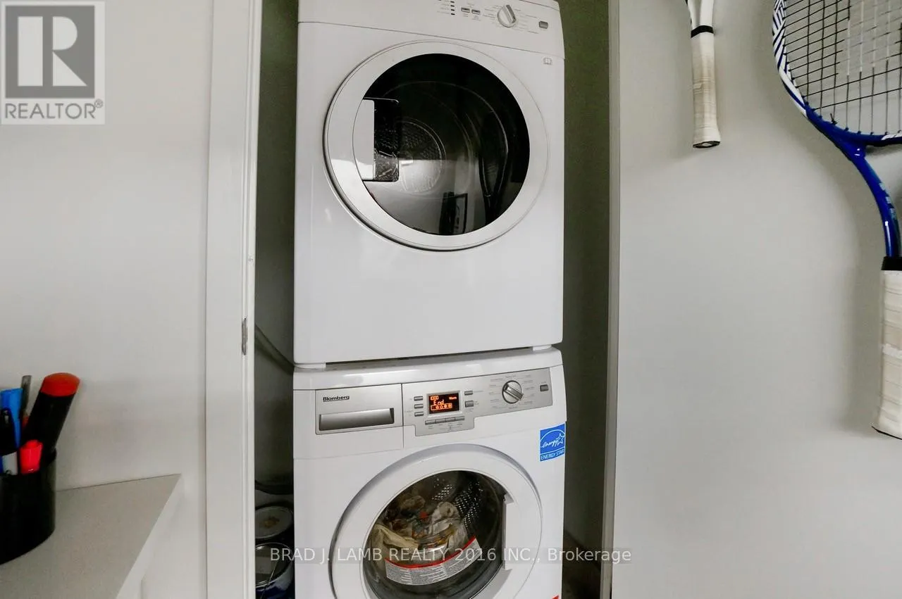 Dundas & Sorauren Step into your own urban paradise in this stunning 1 bedroom + large den + large balcony, where luxury meets contemporary living. Almost 700 sqft interior. Located in the heart of Roncesvalles Village just steps to Sorauren Ave Park and a few blocks from iconic High Park. Enjoy all the charm of Roncy cafes, restos and locally owned shops. 1 bedroom, large den, 1 bathroom, large modern kitchen with extended custom island. Extra dining room area could be 2nd den. Large den with built-in custom desk and lots of storage spaces plus mini-fridge. New full-size washer and dryer. Custom closets cater to your organizational needs with tons of storage space. Prime underground parking spot just steps from the elevator and right beside the exit. Large storage locker included. (id:27476)