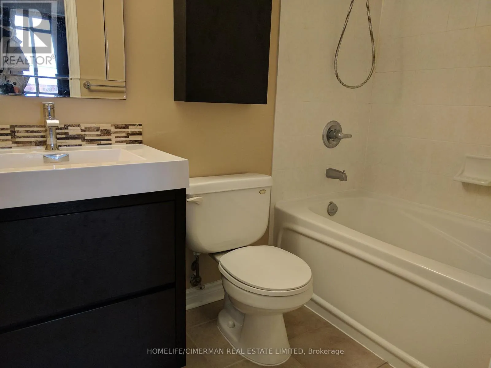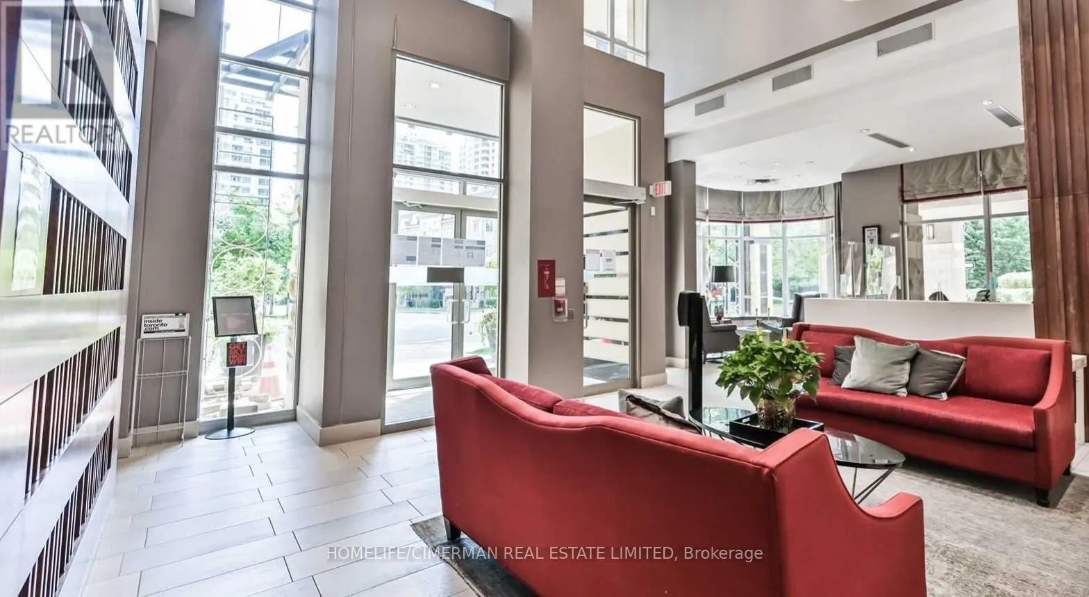 Cross Streets: Bayview And Sheppard. ** Directions: 1 Block East of Bayview. Luxury Unit In High Demand "Rockefeller" Building. This Unit Features 1 Bedroom Plus Den Which Is Separate And Could Be Used As A 2nd Bedroom...As Well There Are 2 Full Bathrooms And An Open Balcony. Includes 5 Appliances hardwood floors in living/dining room. Steps To Subway (TTC), Shopping, Library And All Amenities. Minimum 1 Year Lease. Parking and Locker Included. Shows Well!!! (id:27476)
