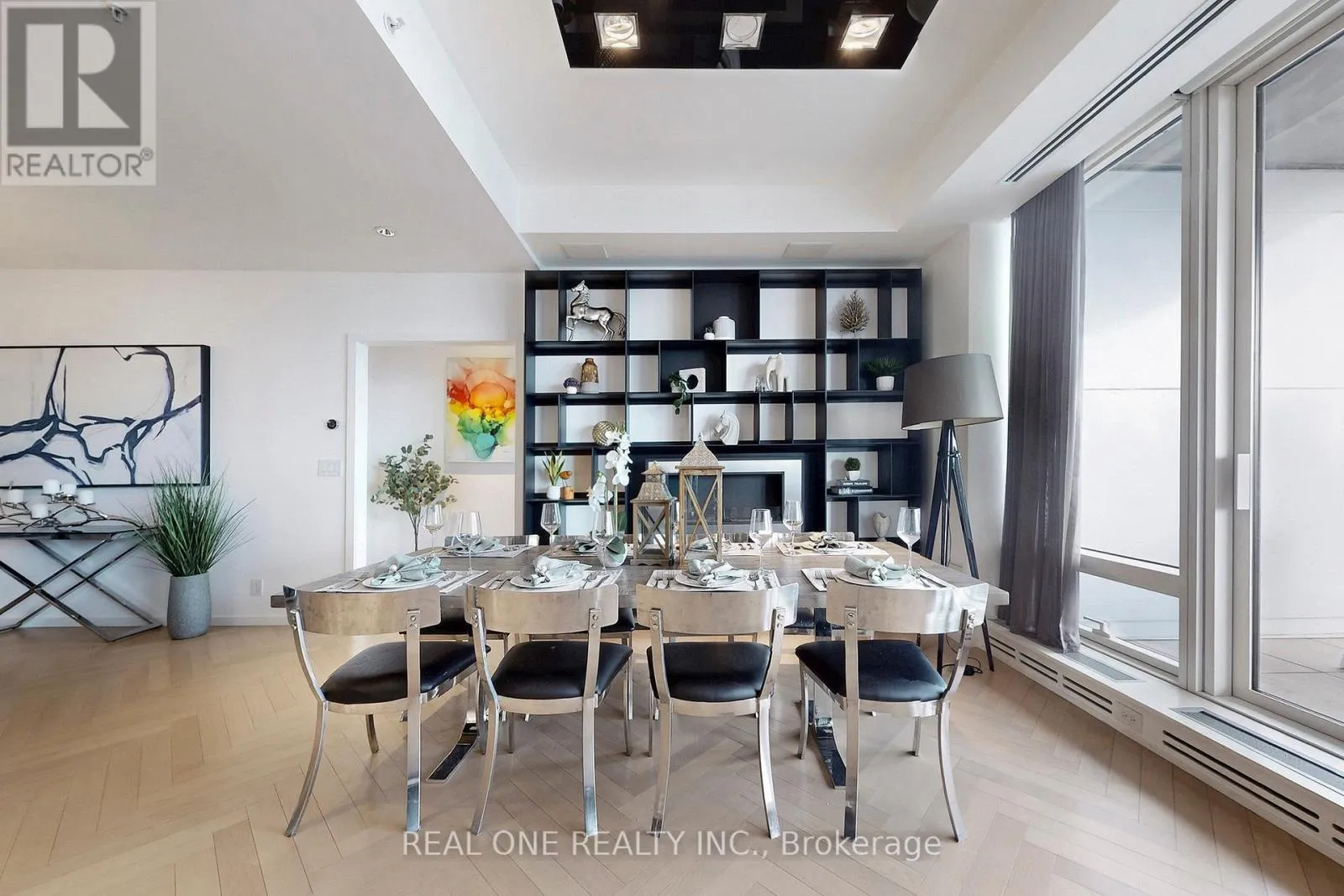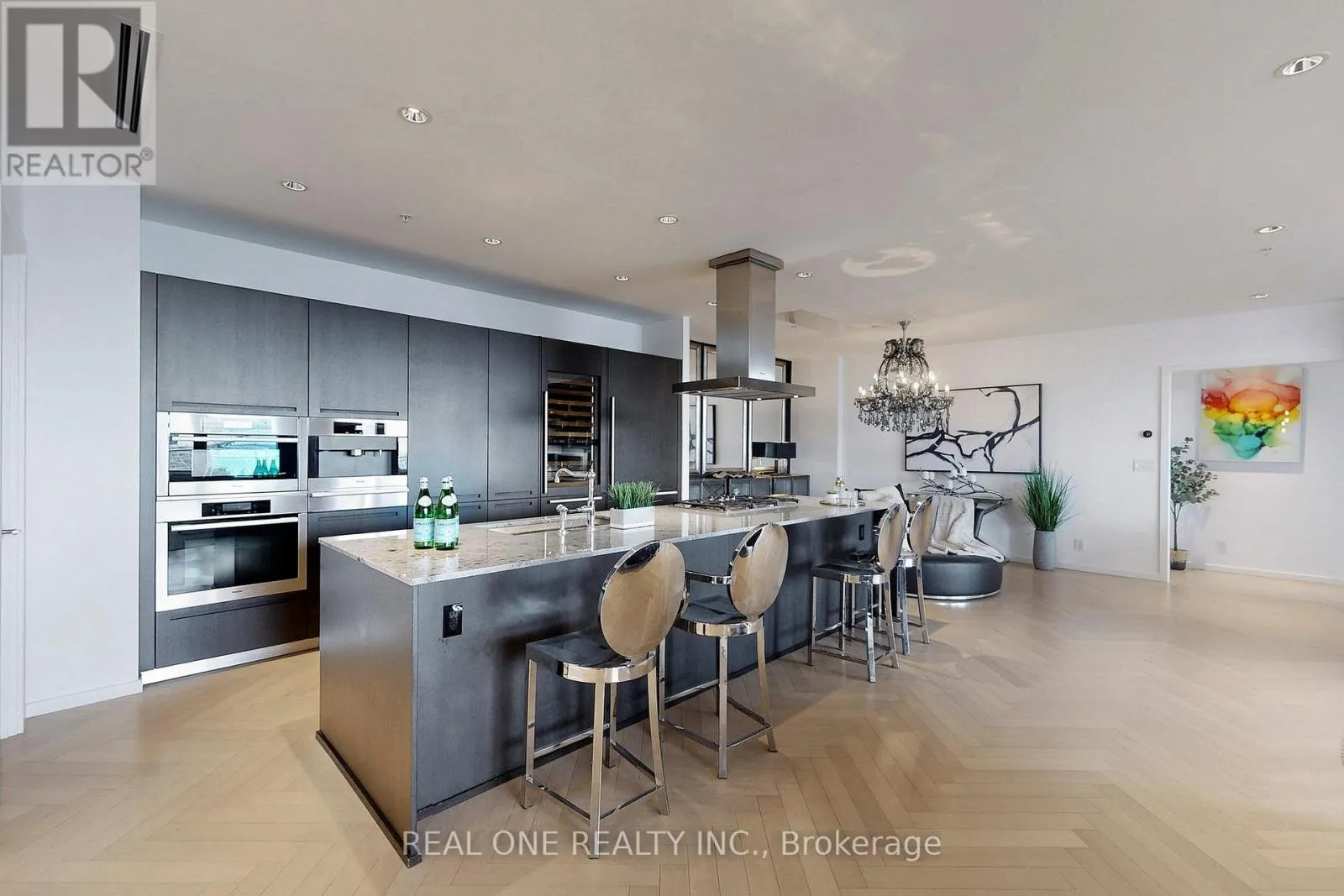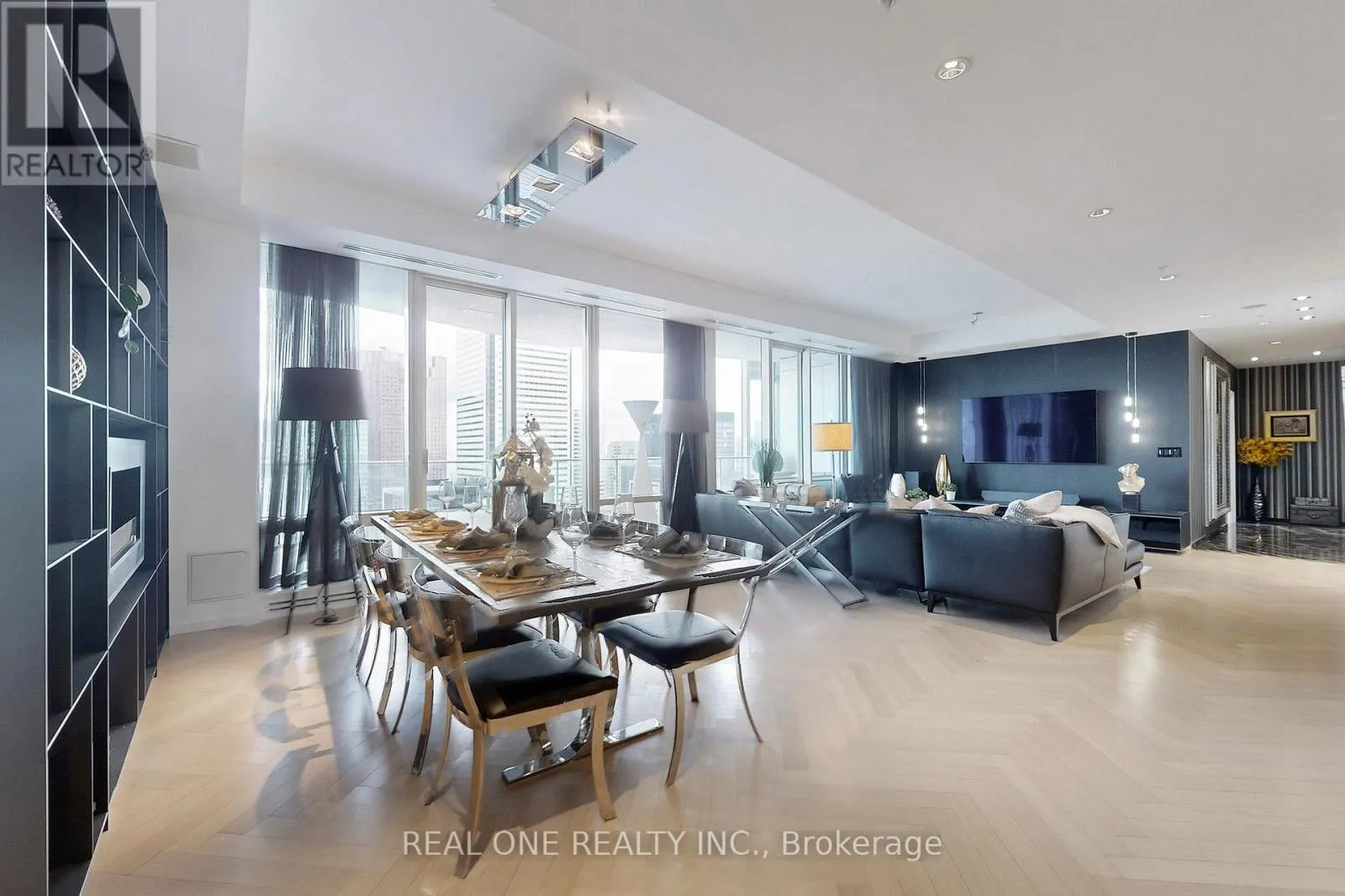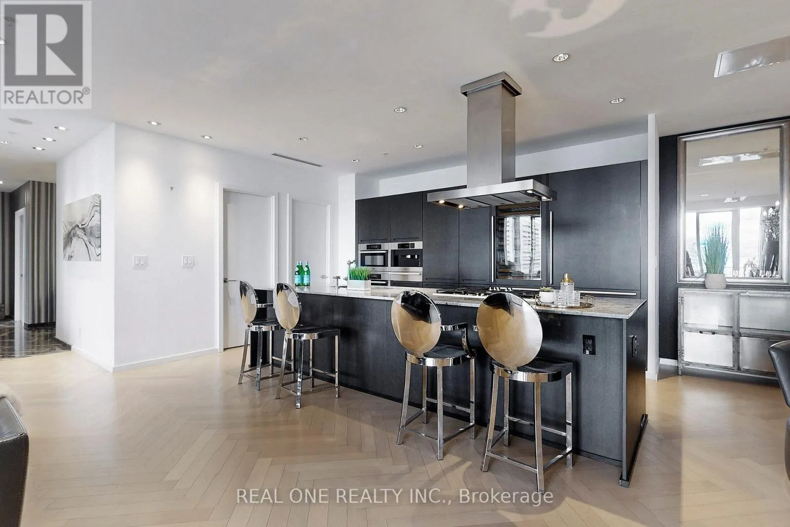 University and Adelaide One of the exclusive Private Estates above the 5-Star Shangri-La Hotel, Toronto. This stunning 2,310 sq. ft. residence offers bright, spacious principal rooms with soaring 10-ft ceilings, herringbone wood floors, and an open-concept layout ideal for entertaining. Enjoy breathtaking, unobstructed southeast views of the Financial Core and Lake Ontario, plus magnificent west-facing vistas from the bedrooms. A rare 300+ sq. ft. balcony with ceiling-mounted heaters provides the ultimate year-round outdoor retreat and sunrise views. The Boffi-designed kitchen features top-of-the-line Miele & Sub-Zero appliances, including a 78-bottle wine fridge, spacious pantry, and large laundry room. The primary suite showcases panoramic views, a custom walk-in closet, and a luxurious 5-pc ensuite with an oversized soaker tub. The second bedroom offers a private 4-pc ensuite and double closets. Includes an enclosed 2-car garage with full valet service. Residents enjoy world-class amenities: 24-hr concierge, valet parking, fitness centre, indoor saltwater pool, hot tub, sauna & steam room. Steps to Toronto's finest dining, theatres, and the PATH. (id:27476)