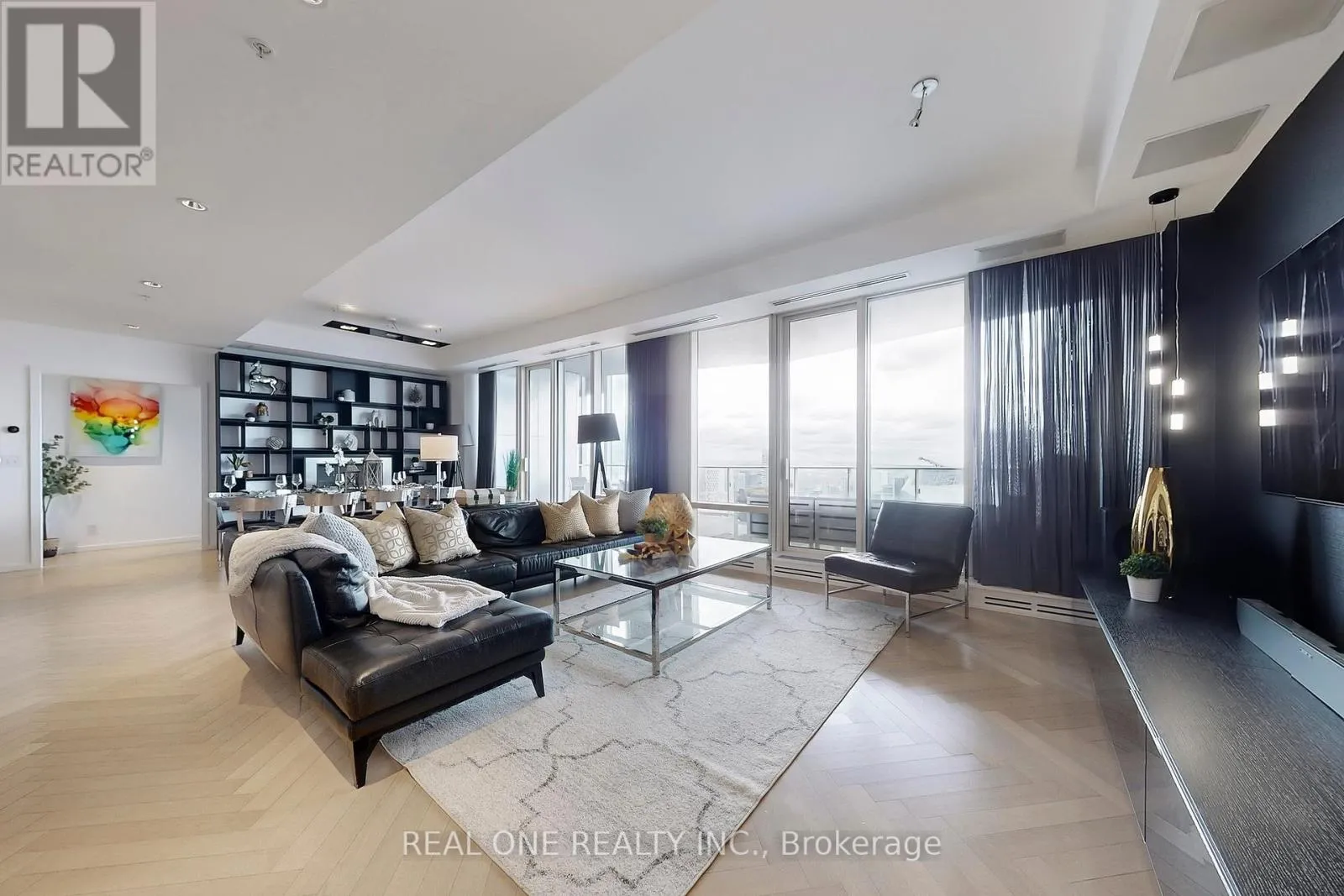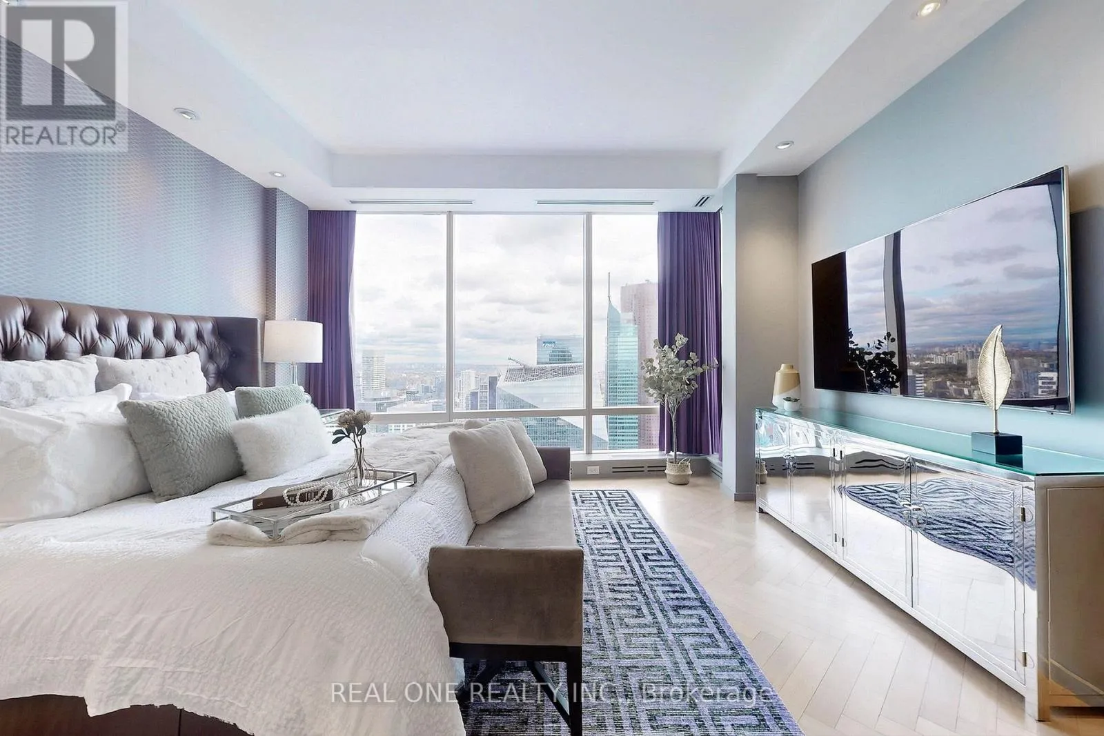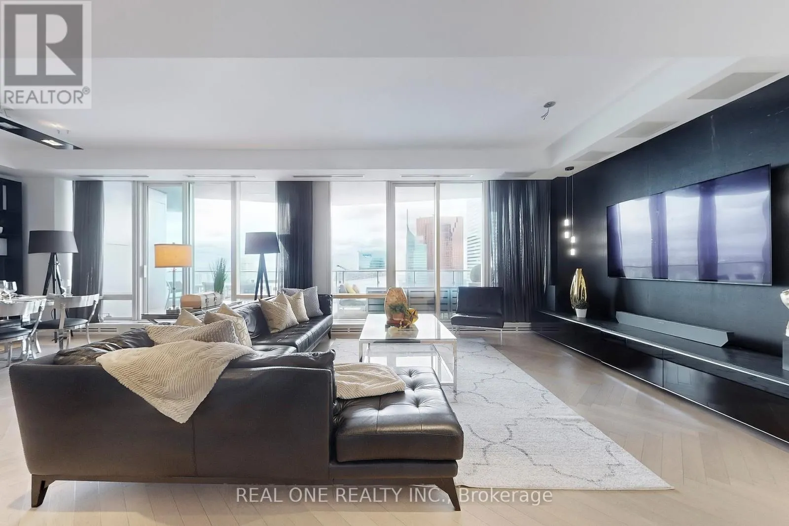 University and Adelaide One of the exclusive Private Estates above the 5-Star Shangri-La Hotel, Toronto. This stunning 2,310 sq. ft. residence offers bright, spacious principal rooms with soaring 10-ft ceilings, herringbone wood floors, and an open-concept layout ideal for entertaining. Enjoy breathtaking, unobstructed southeast views of the Financial Core and Lake Ontario, plus magnificent west-facing vistas from the bedrooms. A rare 300+ sq. ft. balcony with ceiling-mounted heaters provides the ultimate year-round outdoor retreat and sunrise views. The Boffi-designed kitchen features top-of-the-line Miele & Sub-Zero appliances, including a 78-bottle wine fridge, spacious pantry, and large laundry room. The primary suite showcases panoramic views, a custom walk-in closet, and a luxurious 5-pc ensuite with an oversized soaker tub. The second bedroom offers a private 4-pc ensuite and double closets. Includes an enclosed 2-car garage with full valet service. Residents enjoy world-class amenities: 24-hr concierge, valet parking, fitness centre, indoor saltwater pool, hot tub, sauna & steam room. Steps to Toronto's finest dining, theatres, and the PATH. (id:27476)