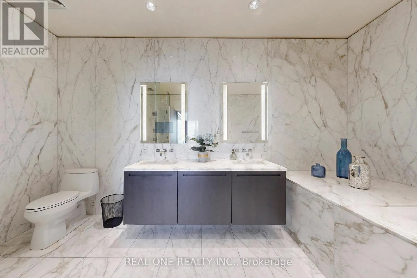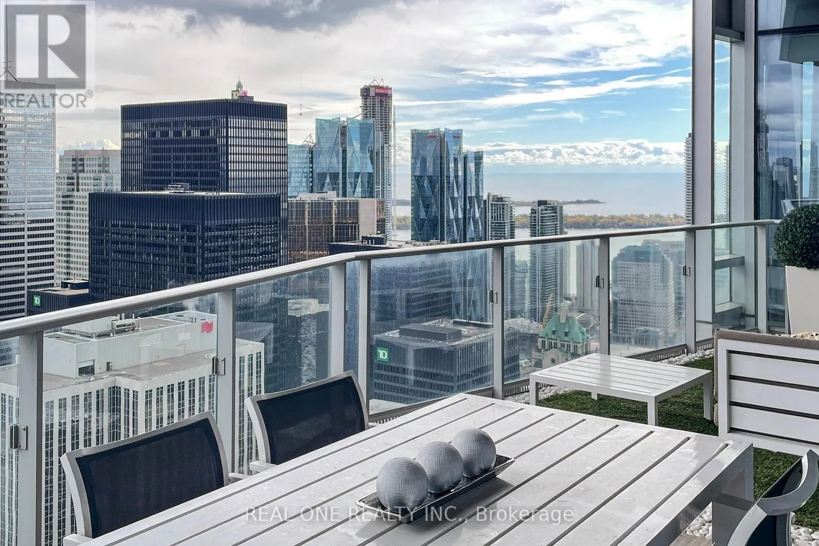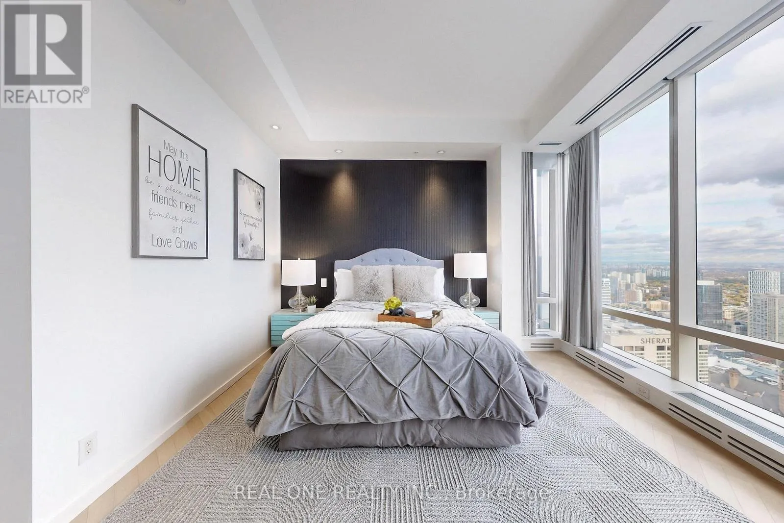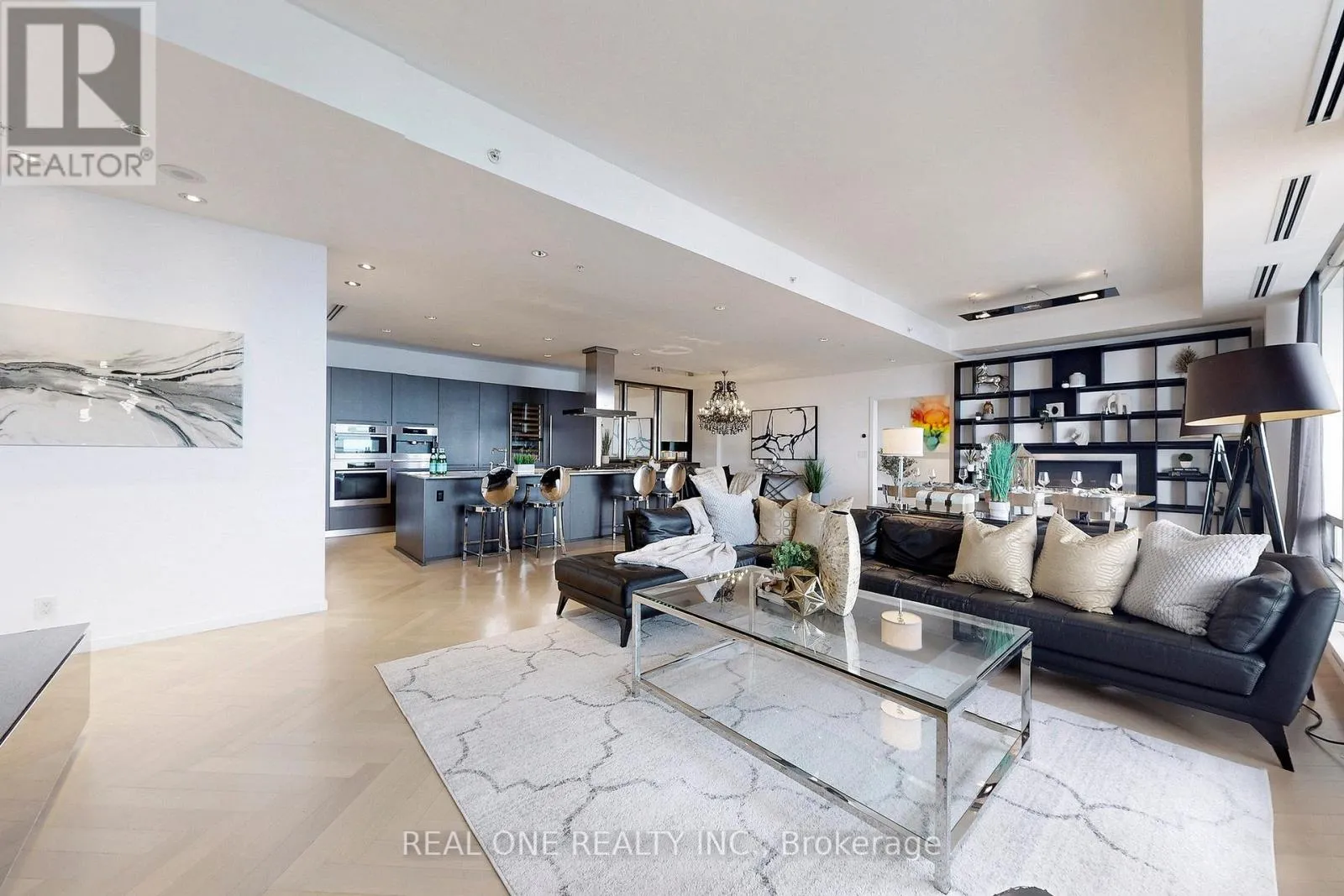 University and Adelaide One of the exclusive Private Estates above the 5-Star Shangri-La Hotel, Toronto. This stunning 2,310 sq. ft. residence offers bright, spacious principal rooms with soaring 10-ft ceilings, herringbone wood floors, and an open-concept layout ideal for entertaining. Enjoy breathtaking, unobstructed southeast views of the Financial Core and Lake Ontario, plus magnificent west-facing vistas from the bedrooms. A rare 300+ sq. ft. balcony with ceiling-mounted heaters provides the ultimate year-round outdoor retreat and sunrise views. The Boffi-designed kitchen features top-of-the-line Miele & Sub-Zero appliances, including a 78-bottle wine fridge, spacious pantry, and large laundry room. The primary suite showcases panoramic views, a custom walk-in closet, and a luxurious 5-pc ensuite with an oversized soaker tub. The second bedroom offers a private 4-pc ensuite and double closets. Includes an enclosed 2-car garage with full valet service. Residents enjoy world-class amenities: 24-hr concierge, valet parking, fitness centre, indoor saltwater pool, hot tub, sauna & steam room. Steps to Toronto's finest dining, theatres, and the PATH. (id:27476)