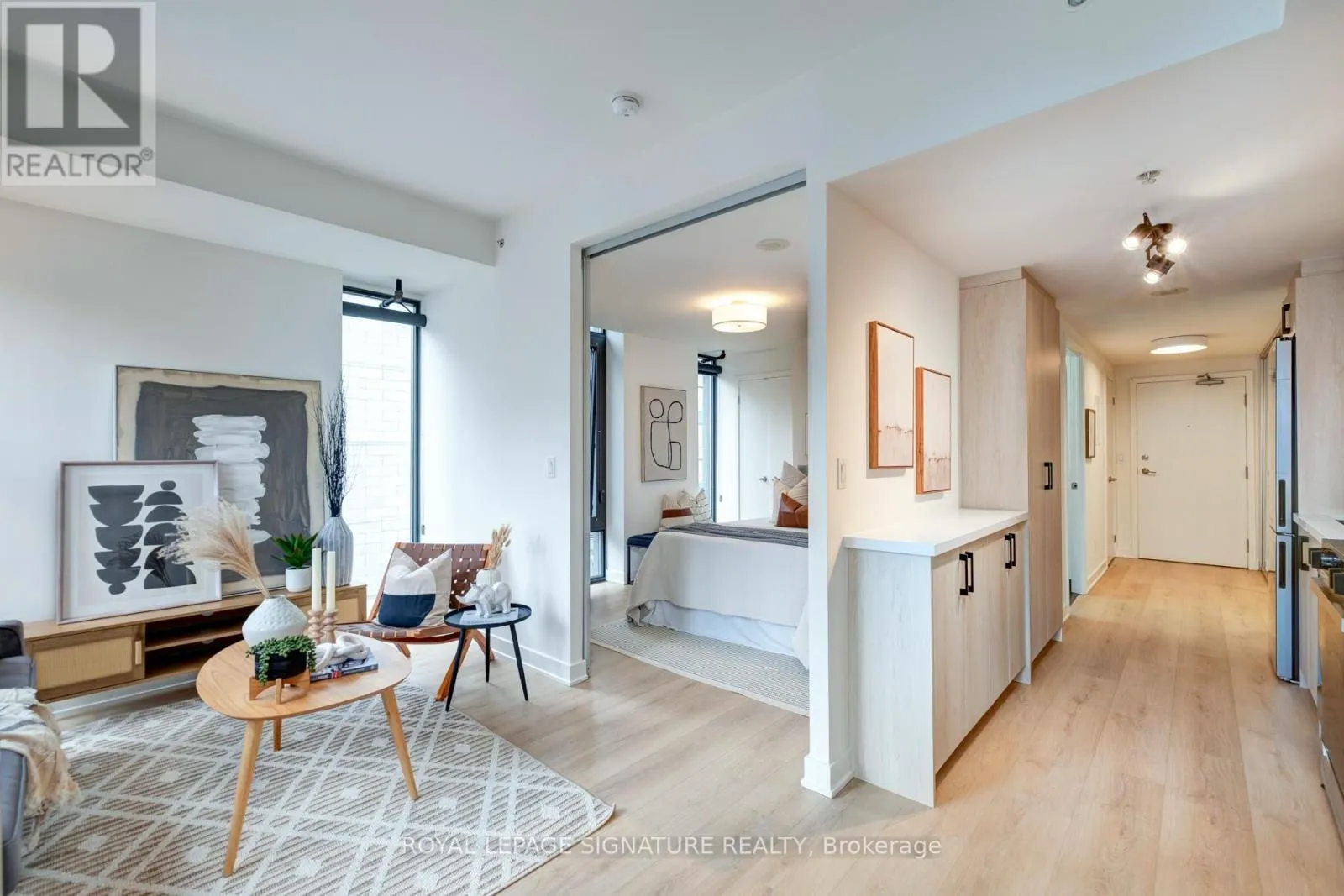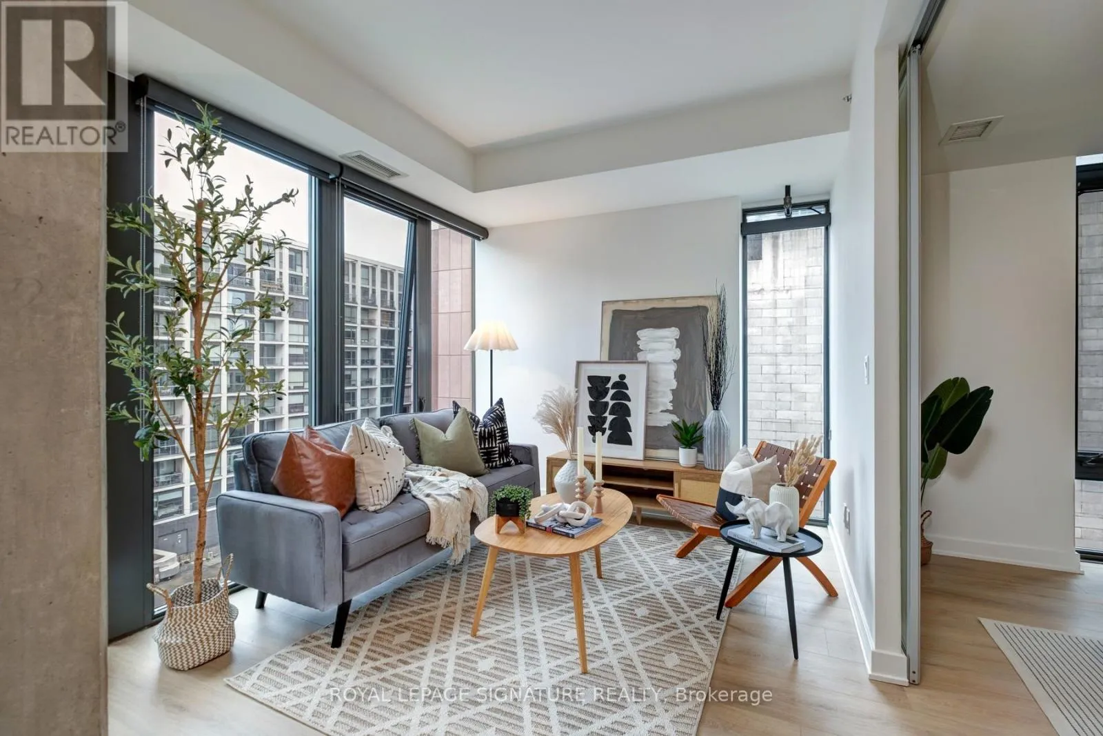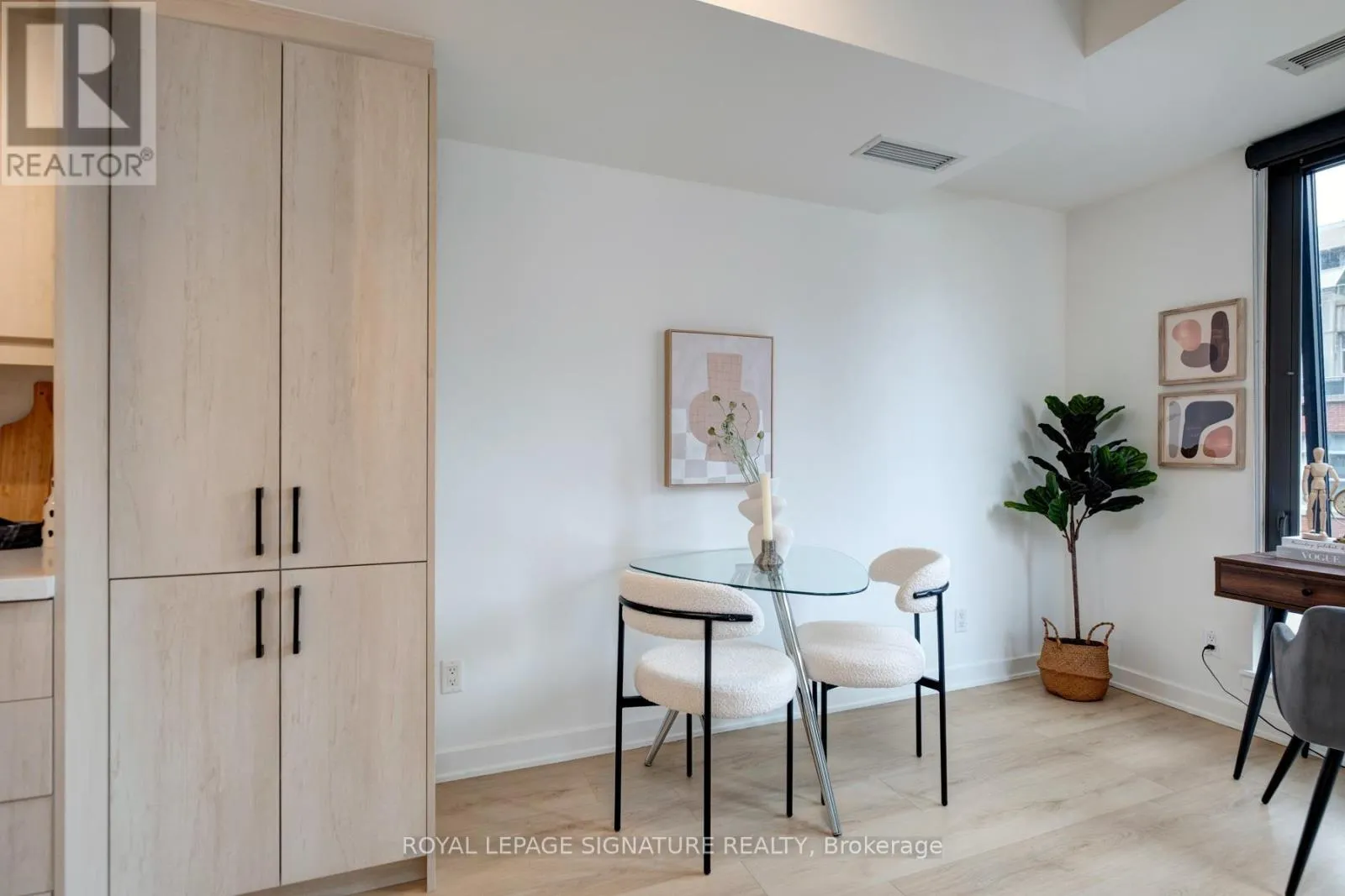 Camden St & Spadina Ave Move-in ready perfection at 32 Camden St Suite 704! This fully refreshed 1+1 bedroom, 1 bathroom corner suite truly checks every box. The spacious bedroom features windows and a closet, while the versatile den easily doubles as a formal dining area, home office - or both. Be the first to enjoy the brand new kitchen, complete with stainless steel appliances, built-in pantry, and a stylish coffee bar with extended counter space - ideal for cooking or entertaining. The suite also features new wide-plank floors, fresh paint throughout, and south-facing exposure with a CN Tower view, plus extra windows on both the South and West sides for incredible natural light. This condo also includes a large, owned storage locker. Located on one of Toronto's most coveted, tucked-away streets, you're just steps to The Ace Hotel (Evangeline rooftop!), Waterworks Food Hall, the shops/restaurants/nightlife on King St W, Impact Kitchen, and the TTC. Stylish, functional, and completely turnkey - this one truly stands out. (id:27476)