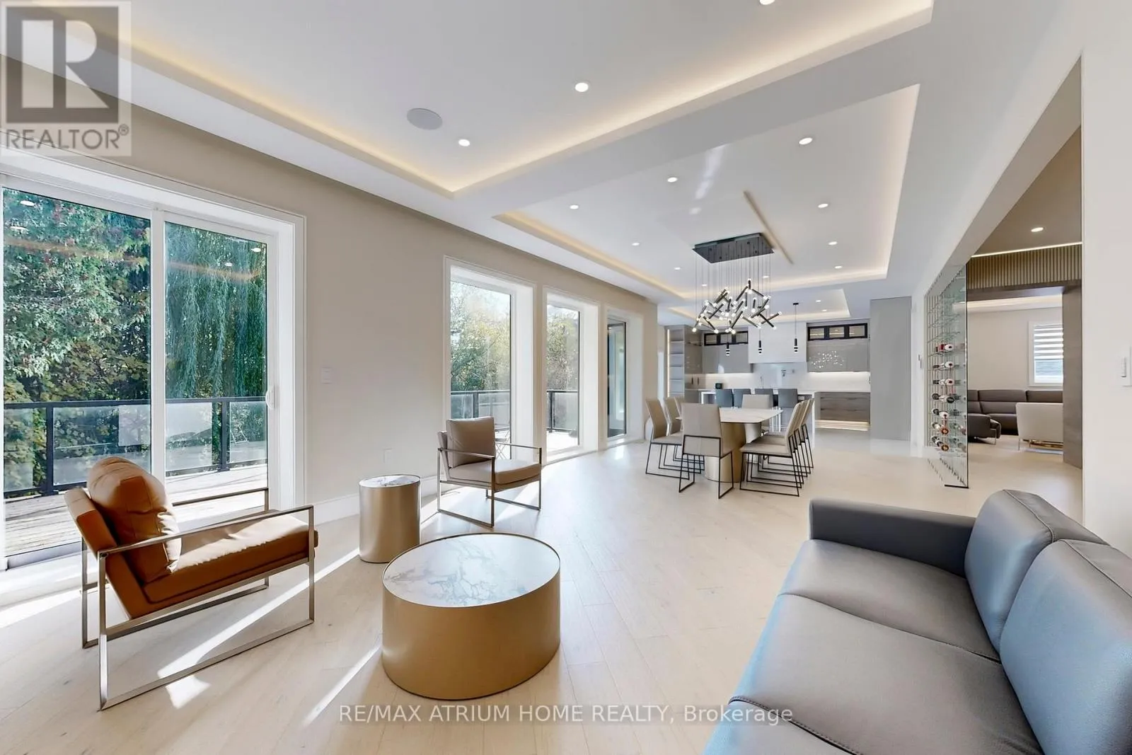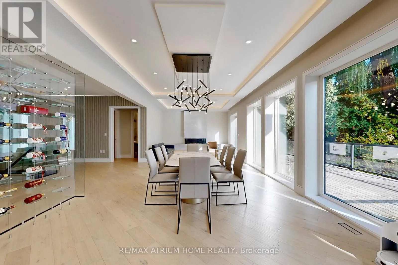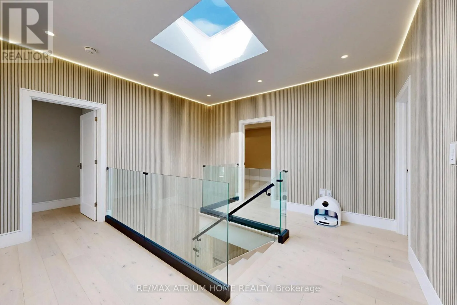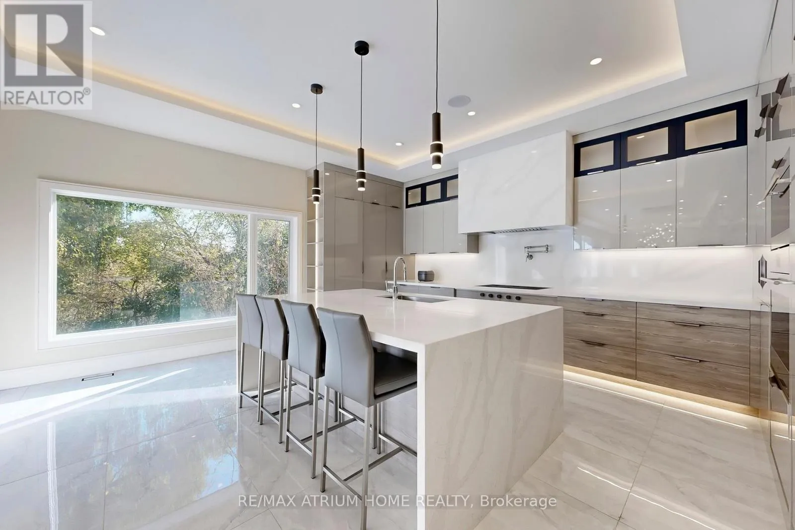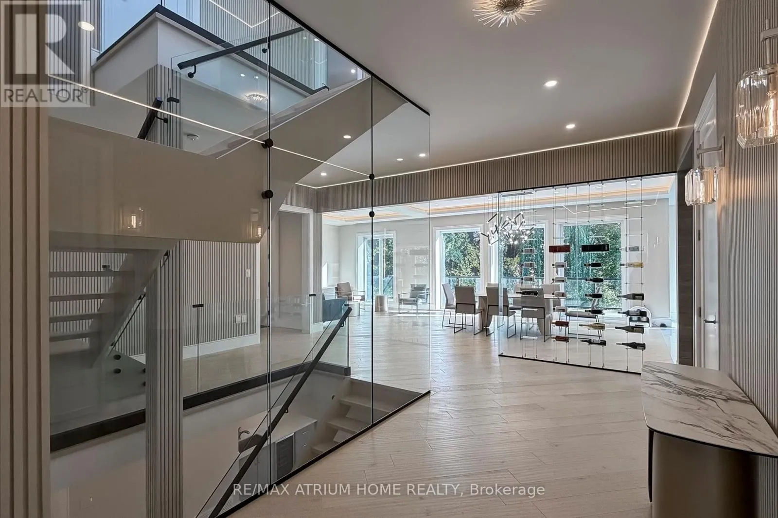 Bayview/Finch Welcome to 111 Banstock Drive - a modern, custom-rebuilt residence on a rare 60-ft premium ravine lot. Offering nearly 6,000 sq. ft. of refined living space, this 4+2 bedroom, 6-bath home features a fully finished walk-out basement and an impressive layout designed for both luxury and comfort.The main level boasts soaring 10-ft ceilings (with 8-ft doors), while the upper level features 9-ft ceilings, creating an open and expansive atmosphere throughout. Enjoy a modern open-concept living and dining area with floor-to-ceiling windows that showcase stunning ravine views and flood the home with natural light. A walkout to the deck extends your living space outdoors, perfect for relaxing or entertaining.The chef-inspired kitchen includes a striking quartz island with bar and breakfast seating, premium large-format porcelain tiles, hardwood flooring, and a sleek floating wine display. An open floating staircase with a skylight connects all levels of the home, enhancing the airy architectural design. Additional features include LED pot lights, a built-in sound system, and smart-home security hardware, all programmable through a central SmartHub. A private home office with custom built-ins and its own open terrace provides the ideal workspace. The upper level offers four spacious bedrooms, each with its own ensuite bathroom. The double-door principal suite features a spa-style ensuite with an oversized shower, floating vanity, and luxury finishes throughout. A rare second principal bedroom adds even greater flexibility for multi-generational living.Each bathroom is thoughtfully designed with distinctive porcelain finishes, accent wall details, and quartz shower benches, delivering a high-end hotel-spa feel throughout the home.This prime location offers unmatched convenience - steps to top-ranked schools, plazas, shopping centres, parks, transit, and just minutes to major highways, making everyday living easy and accessible. Close to all amenities and much more. (id:27476)