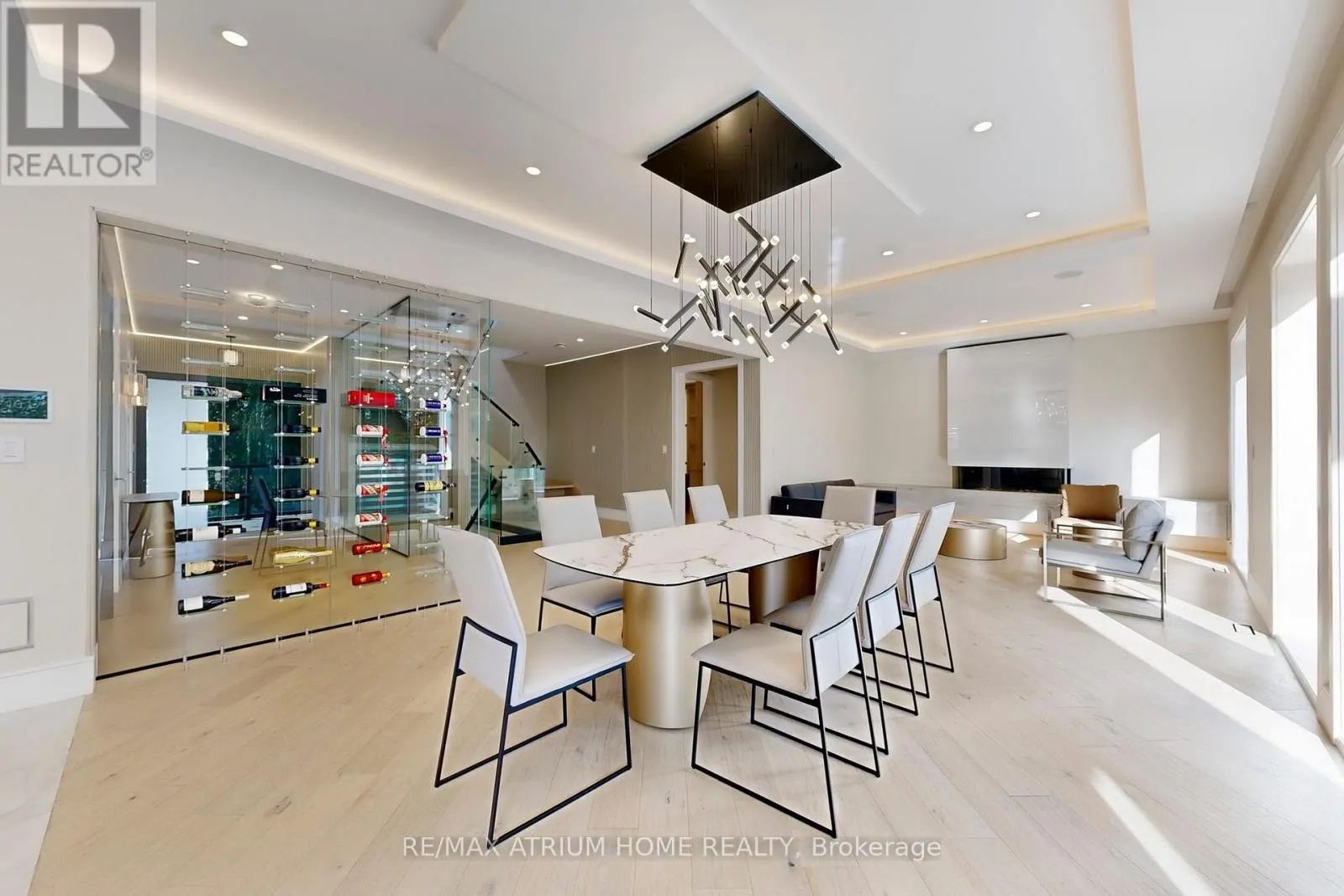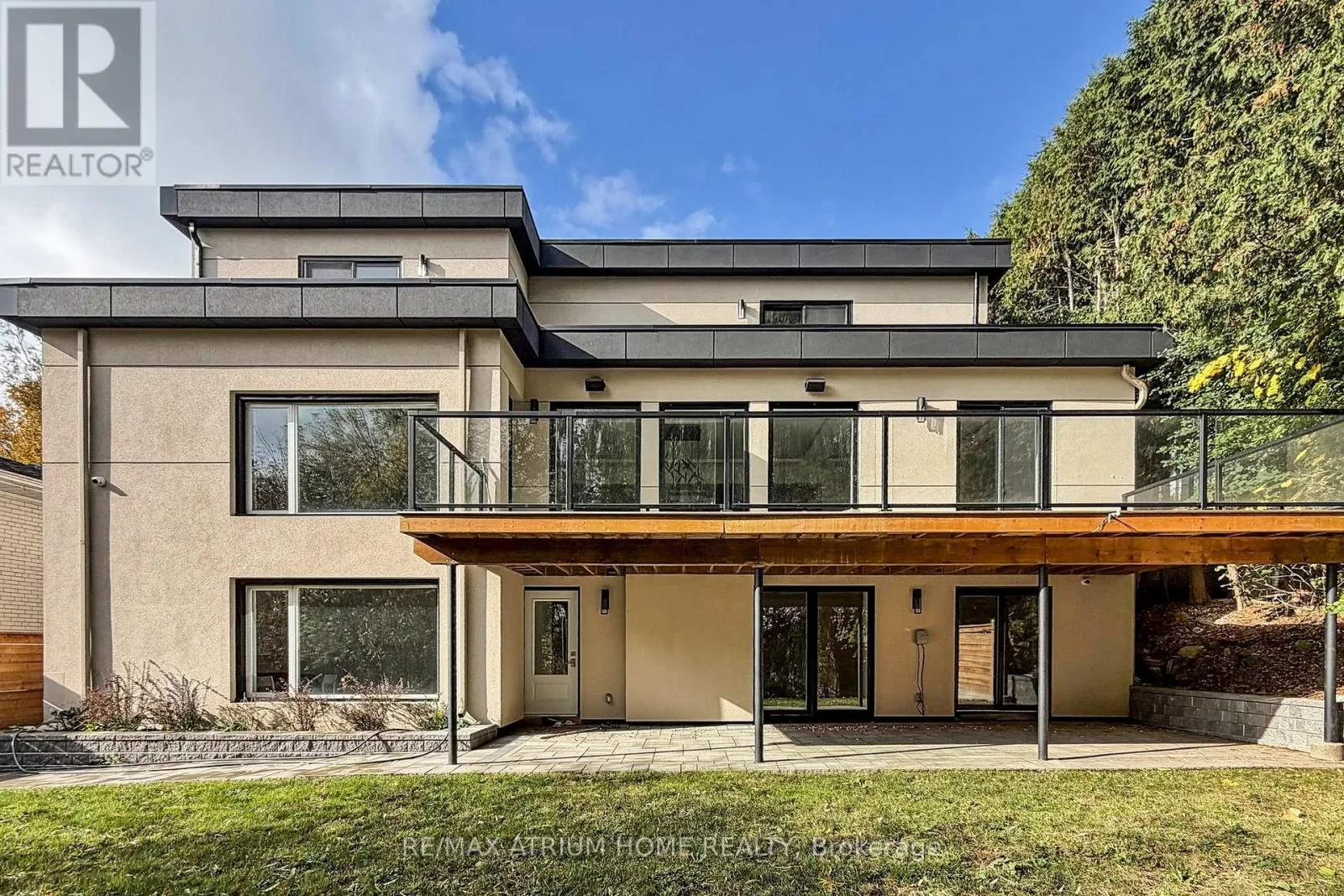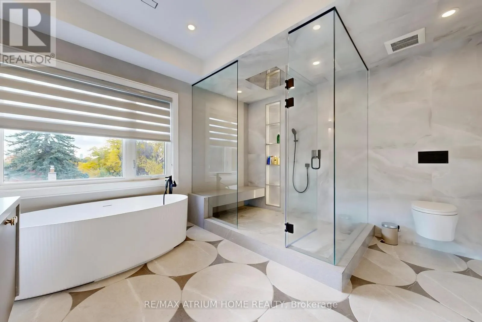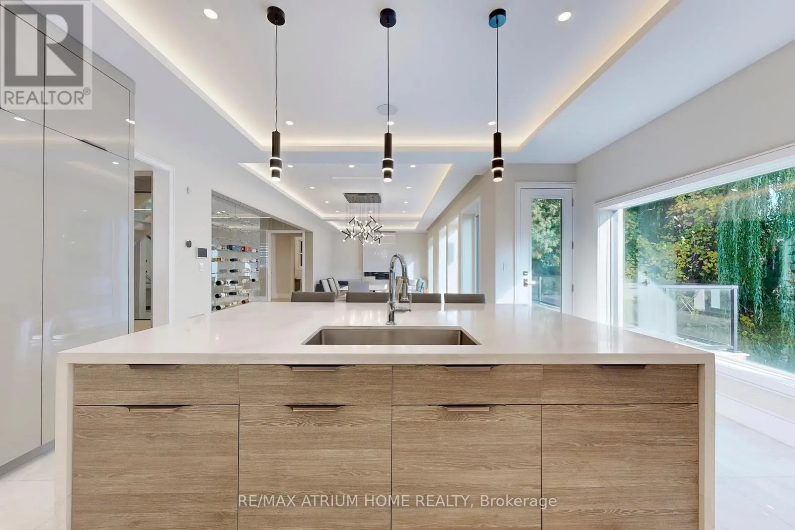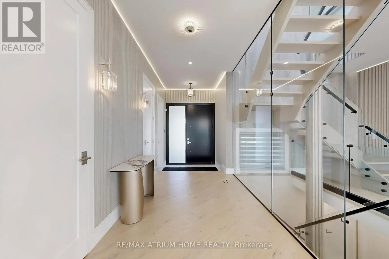 Bayview/Finch Welcome to 111 Banstock Drive - a modern, custom-rebuilt residence on a rare 60-ft premium ravine lot. Offering nearly 6,000 sq. ft. of refined living space, this 4+2 bedroom, 6-bath home features a fully finished walk-out basement and an impressive layout designed for both luxury and comfort.The main level boasts soaring 10-ft ceilings (with 8-ft doors), while the upper level features 9-ft ceilings, creating an open and expansive atmosphere throughout. Enjoy a modern open-concept living and dining area with floor-to-ceiling windows that showcase stunning ravine views and flood the home with natural light. A walkout to the deck extends your living space outdoors, perfect for relaxing or entertaining.The chef-inspired kitchen includes a striking quartz island with bar and breakfast seating, premium large-format porcelain tiles, hardwood flooring, and a sleek floating wine display. An open floating staircase with a skylight connects all levels of the home, enhancing the airy architectural design. Additional features include LED pot lights, a built-in sound system, and smart-home security hardware, all programmable through a central SmartHub. A private home office with custom built-ins and its own open terrace provides the ideal workspace. The upper level offers four spacious bedrooms, each with its own ensuite bathroom. The double-door principal suite features a spa-style ensuite with an oversized shower, floating vanity, and luxury finishes throughout. A rare second principal bedroom adds even greater flexibility for multi-generational living.Each bathroom is thoughtfully designed with distinctive porcelain finishes, accent wall details, and quartz shower benches, delivering a high-end hotel-spa feel throughout the home.This prime location offers unmatched convenience - steps to top-ranked schools, plazas, shopping centres, parks, transit, and just minutes to major highways, making everyday living easy and accessible. Close to all amenities and much more. (id:27476)