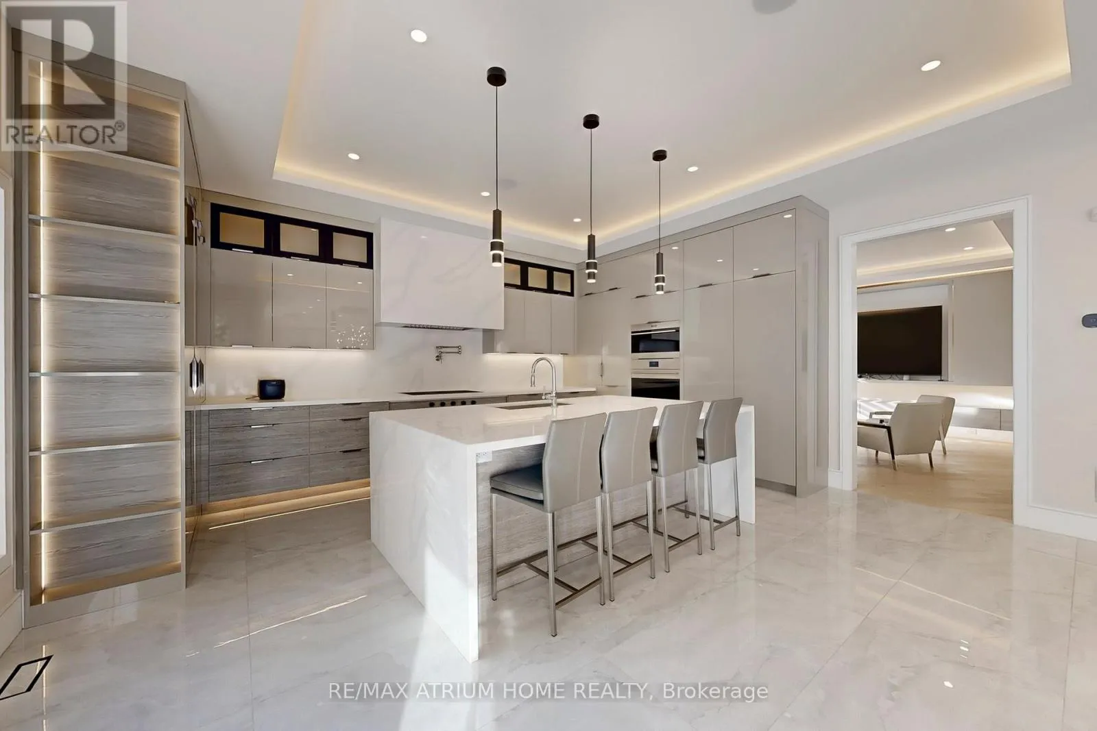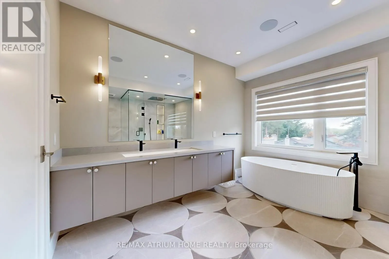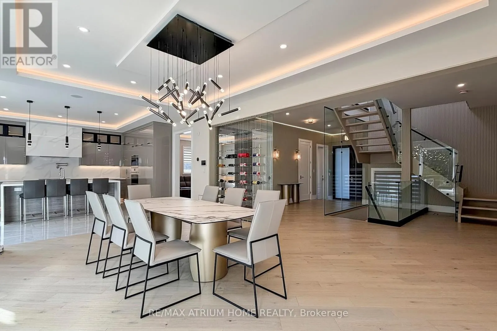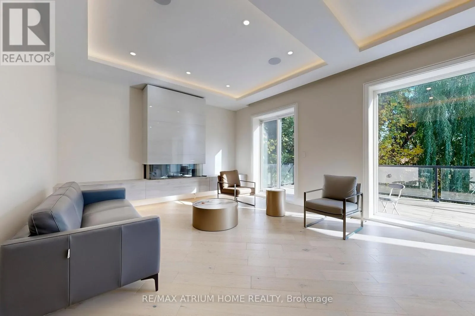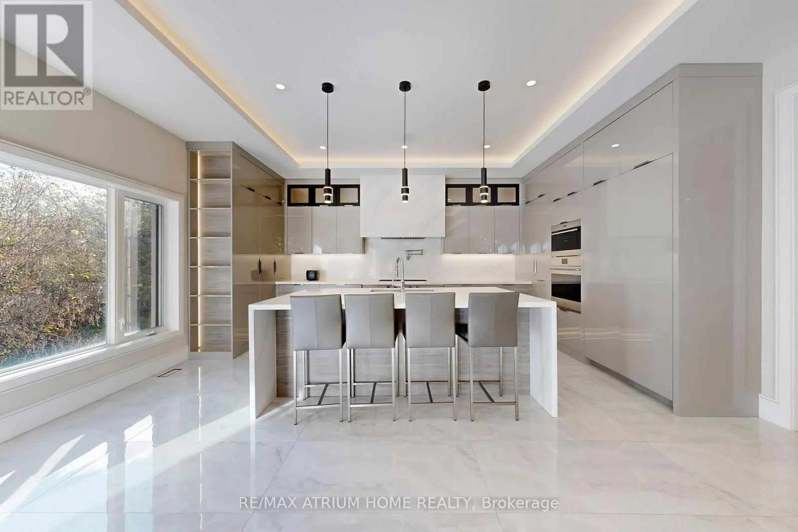 Bayview/Finch Welcome to 111 Banstock Drive - a modern, custom-rebuilt residence on a rare 60-ft premium ravine lot. Offering nearly 6,000 sq. ft. of refined living space, this 4+2 bedroom, 6-bath home features a fully finished walk-out basement and an impressive layout designed for both luxury and comfort.The main level boasts soaring 10-ft ceilings (with 8-ft doors), while the upper level features 9-ft ceilings, creating an open and expansive atmosphere throughout. Enjoy a modern open-concept living and dining area with floor-to-ceiling windows that showcase stunning ravine views and flood the home with natural light. A walkout to the deck extends your living space outdoors, perfect for relaxing or entertaining.The chef-inspired kitchen includes a striking quartz island with bar and breakfast seating, premium large-format porcelain tiles, hardwood flooring, and a sleek floating wine display. An open floating staircase with a skylight connects all levels of the home, enhancing the airy architectural design. Additional features include LED pot lights, a built-in sound system, and smart-home security hardware, all programmable through a central SmartHub. A private home office with custom built-ins and its own open terrace provides the ideal workspace. The upper level offers four spacious bedrooms, each with its own ensuite bathroom. The double-door principal suite features a spa-style ensuite with an oversized shower, floating vanity, and luxury finishes throughout. A rare second principal bedroom adds even greater flexibility for multi-generational living.Each bathroom is thoughtfully designed with distinctive porcelain finishes, accent wall details, and quartz shower benches, delivering a high-end hotel-spa feel throughout the home.This prime location offers unmatched convenience - steps to top-ranked schools, plazas, shopping centres, parks, transit, and just minutes to major highways, making everyday living easy and accessible. Close to all amenities and much more. (id:27476)