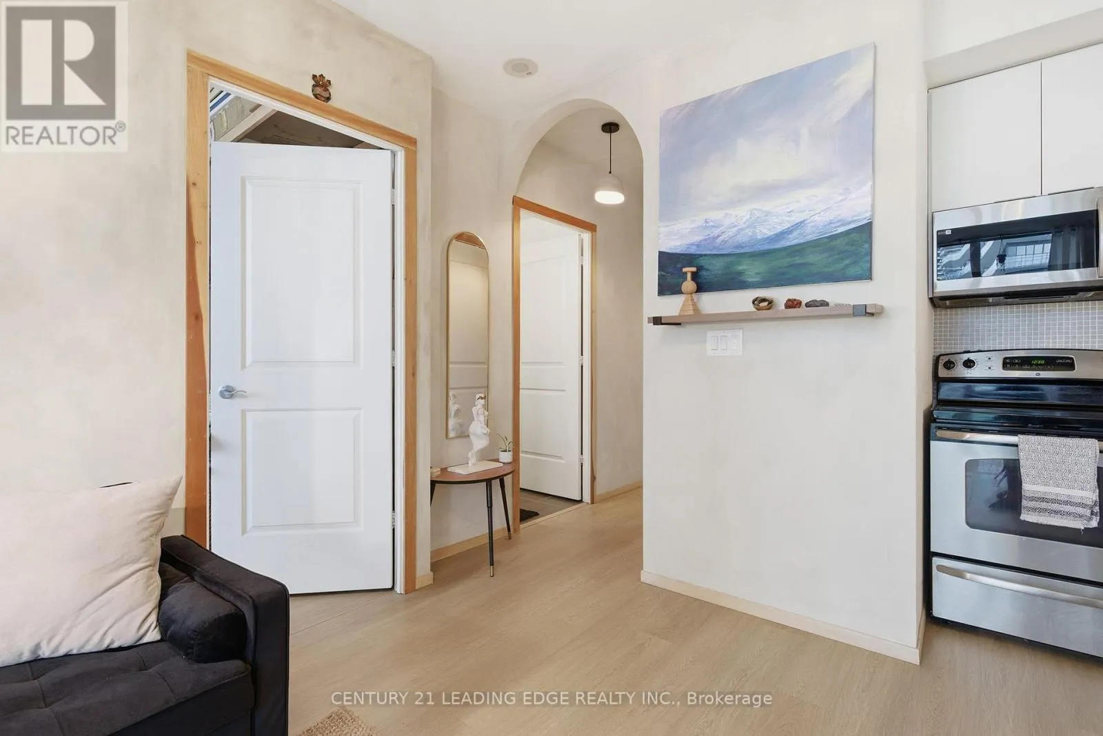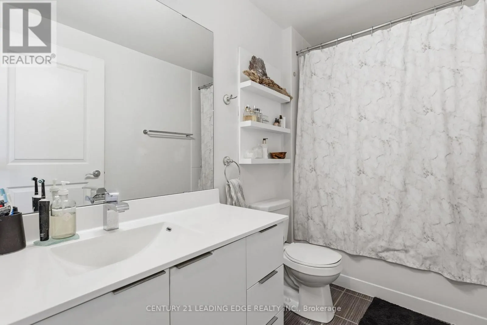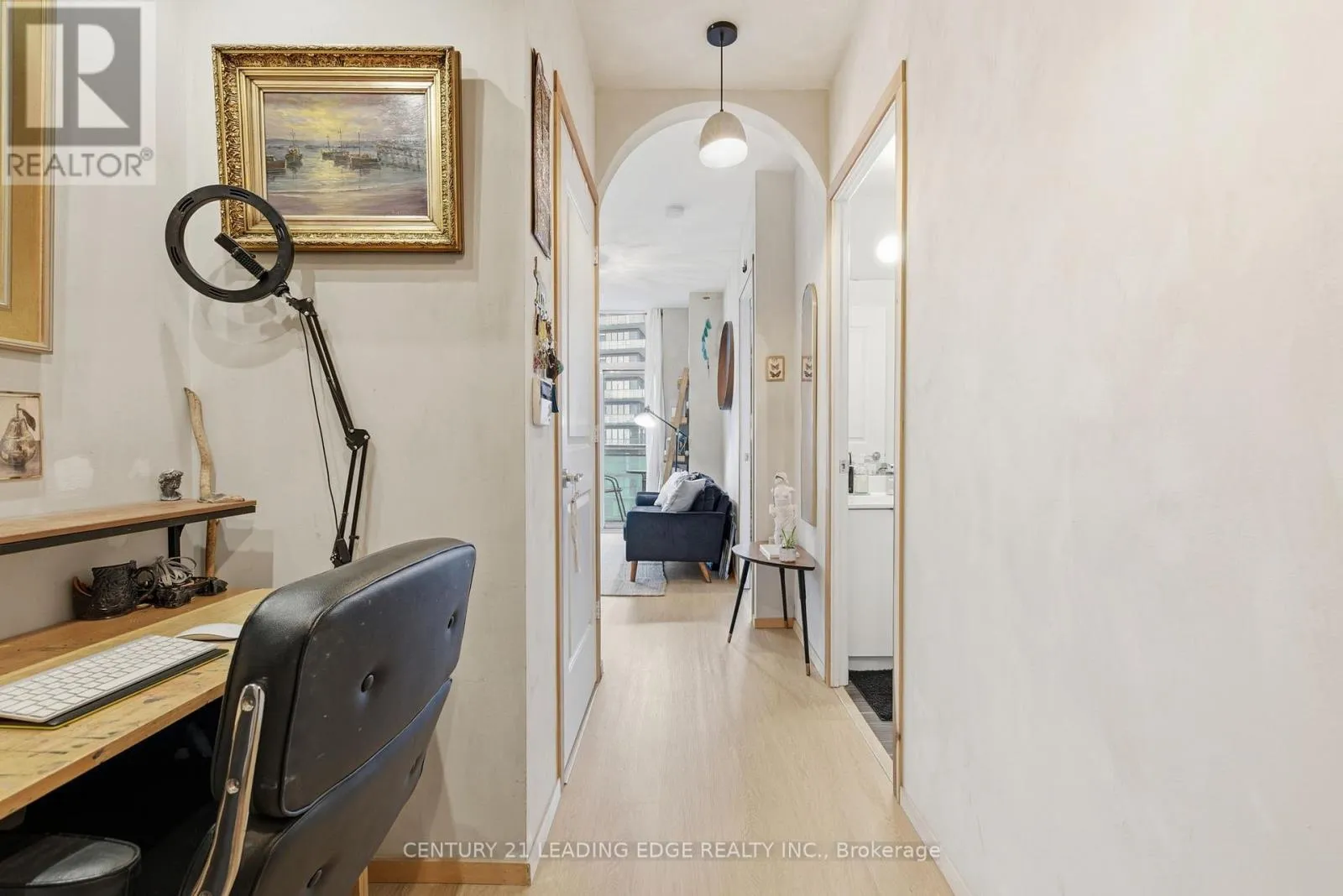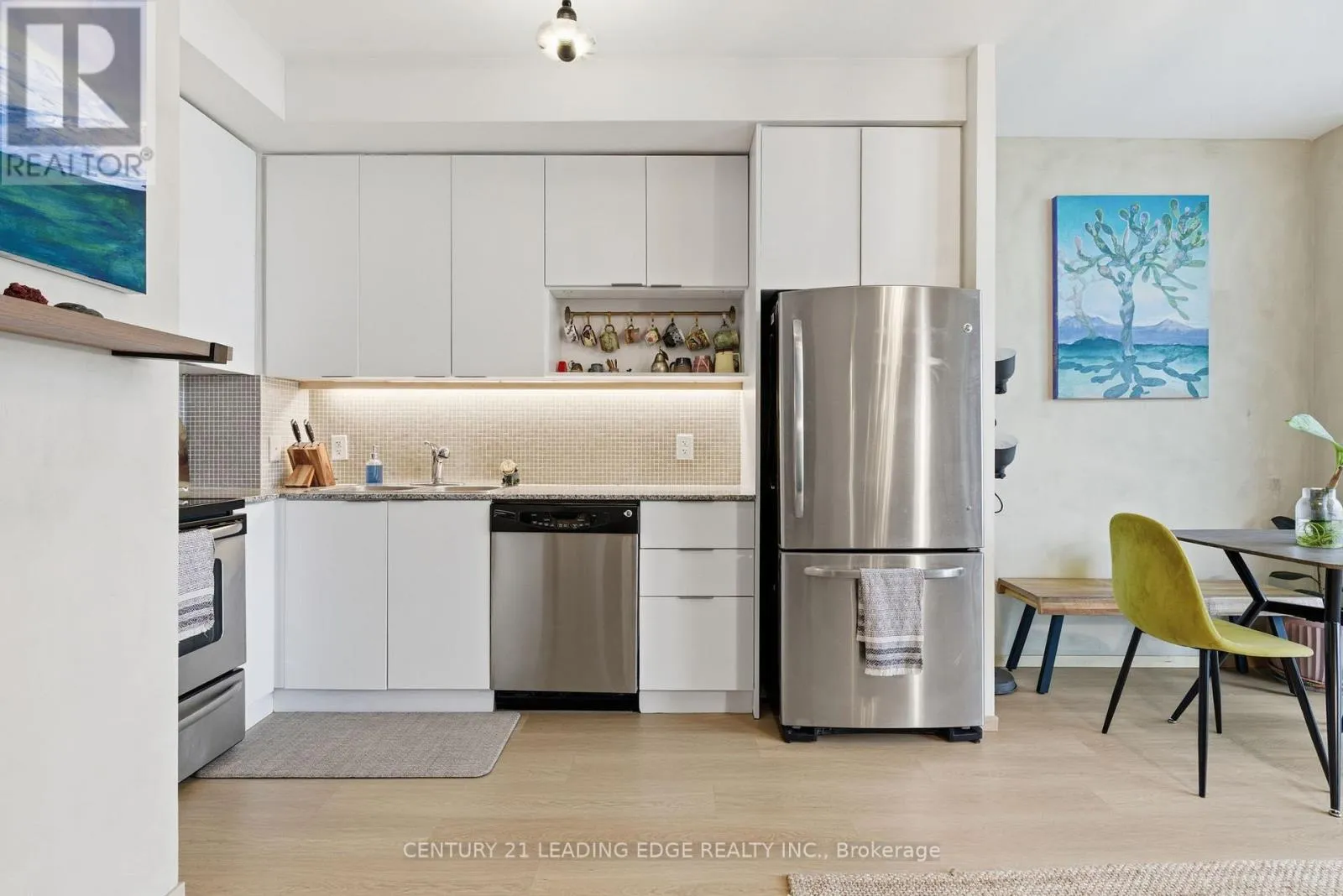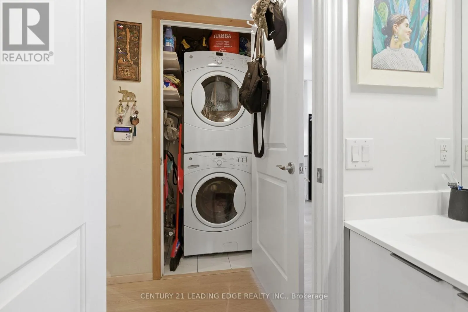 Lake Shore Blvd W/ Brookers Ln Experience the best of waterfront living in Toronto's highly desirable Nautilus building, nestled within the charming Mimico lakefront neighborhood. This generously sized 1-bedroom suite boasts an open-concept layout with soaring ceilings and expansive floor-to-ceiling windows, offering a bright and airy atmosphere. Enjoy breathtaking southwest views-perfect for sunsets-plus two walkouts leading to a large private terrace with stunning sights of Lake Ontario and the Martin Goodman Trail. The unit is equipped with abundant storage space, a kitchen featuring granite countertops, a stylish backsplash, and five included appliances. Additional highlights include ensuite laundry, mirrored closets, and sleek laminate flooring throughout. (id:27476)